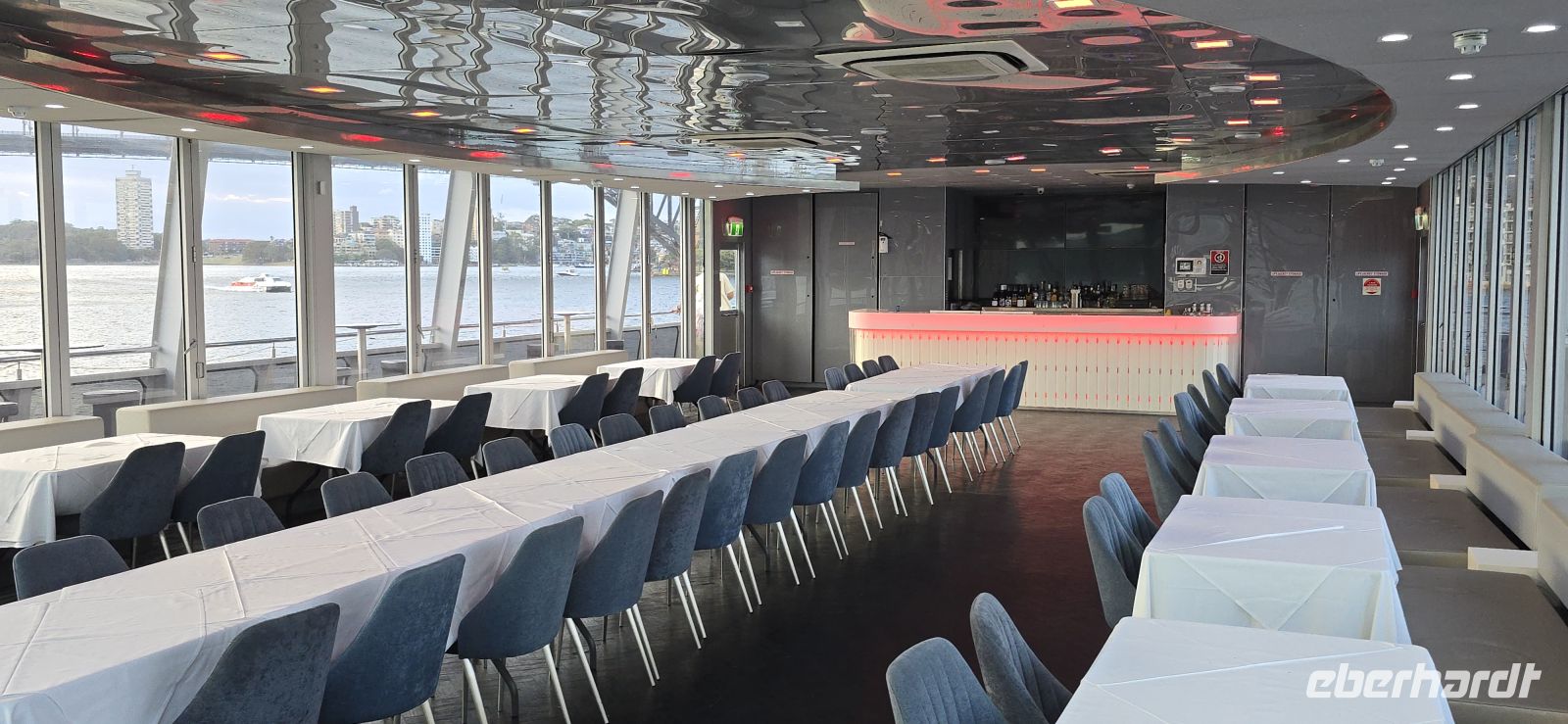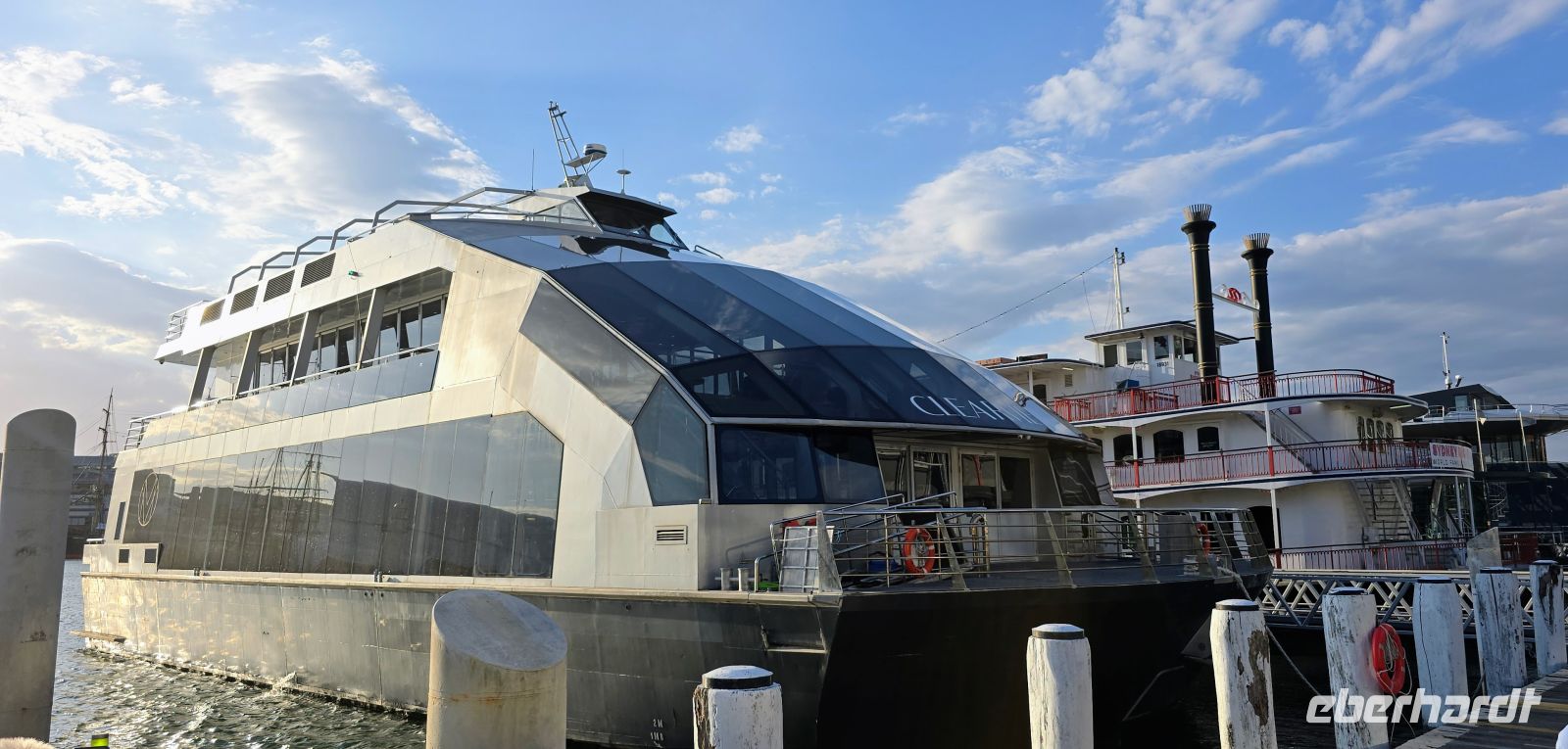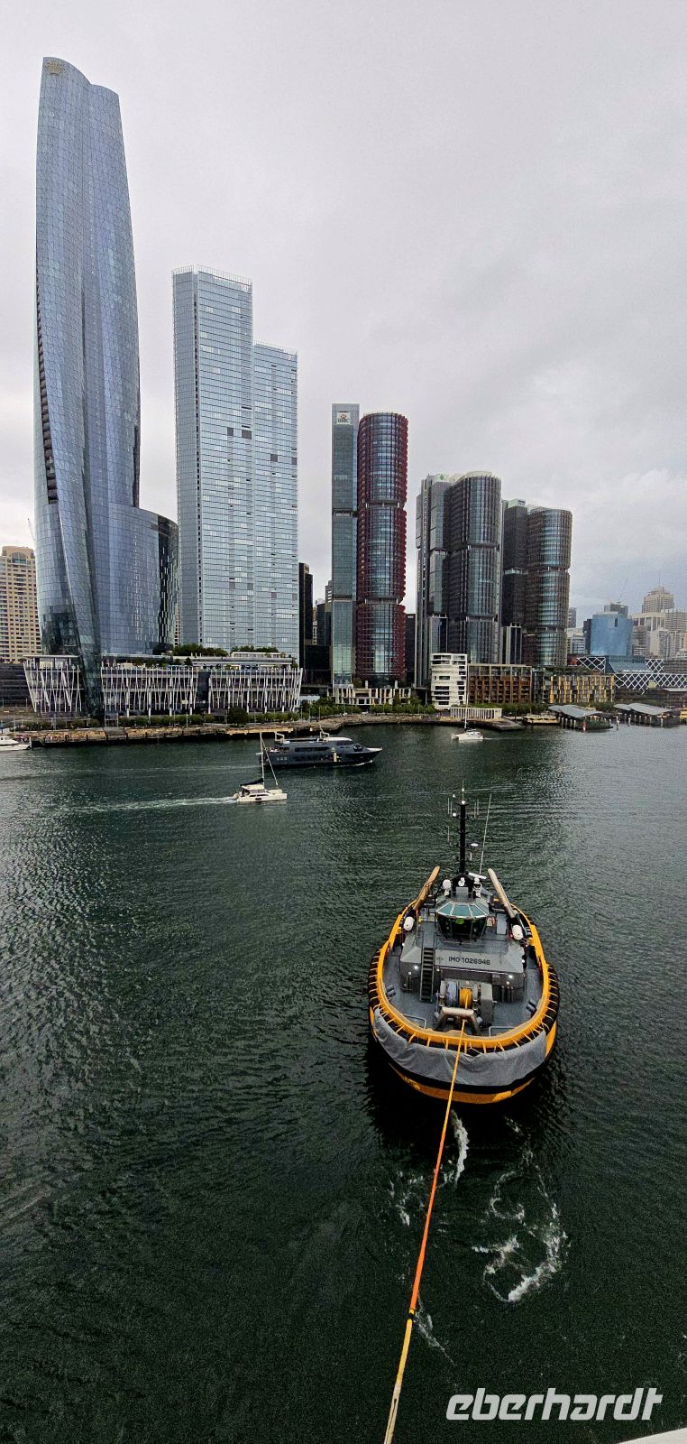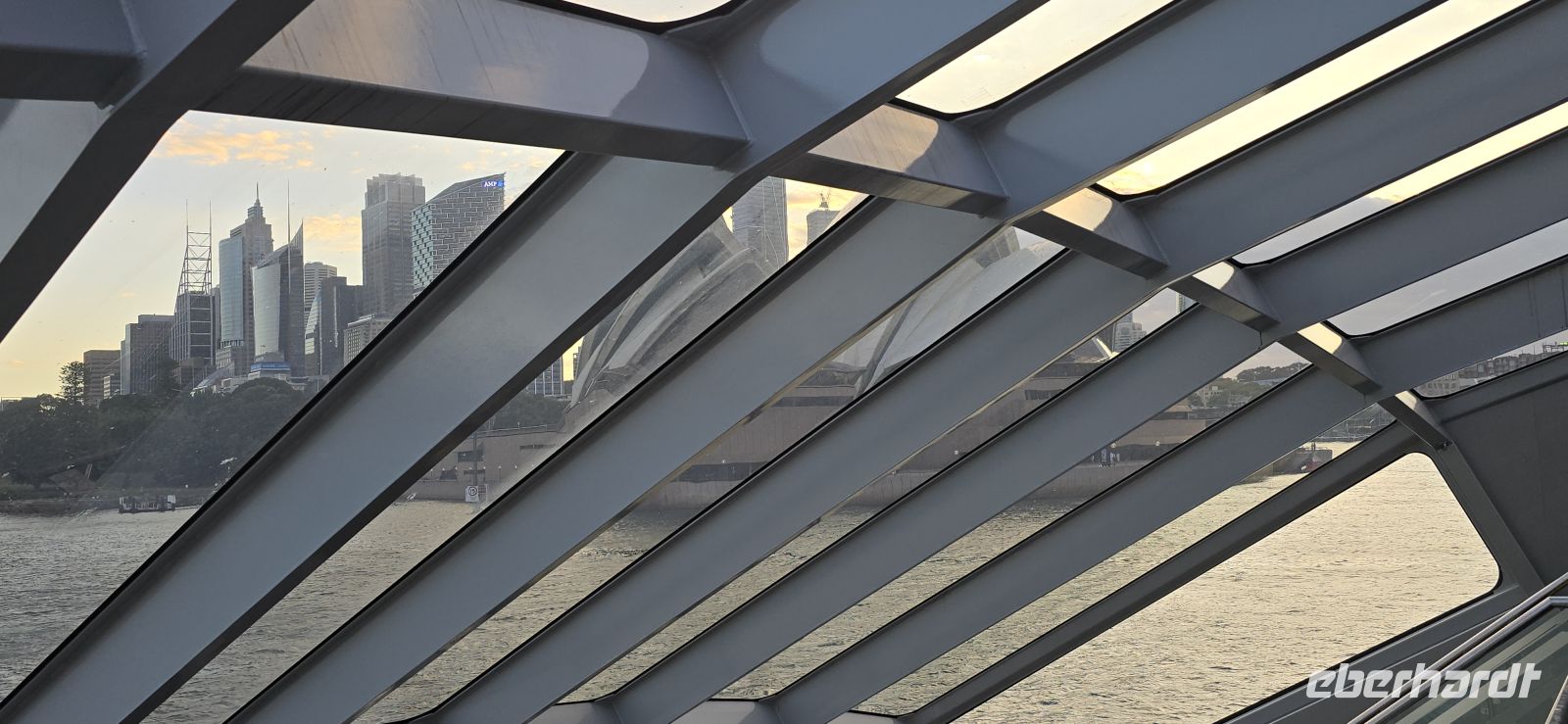 Der Check-in selbst läuft erstaunlich flott. Kaum an Bord, gibt es den ersten Snack, und fast schon unheimlich schnell sind die Kabinen bezugsfertig. Die Koffer folgen kurz darauf – besser kann ein Start kaum laufen. Zeit für den ersten Drink, diesmal mit Regenschutz, und natürlich für jede Menge Fotos. Der Blick auf Darling Harbour und die Skyline ist einfach zu schön, um ihn nur einmal festzuhalten.