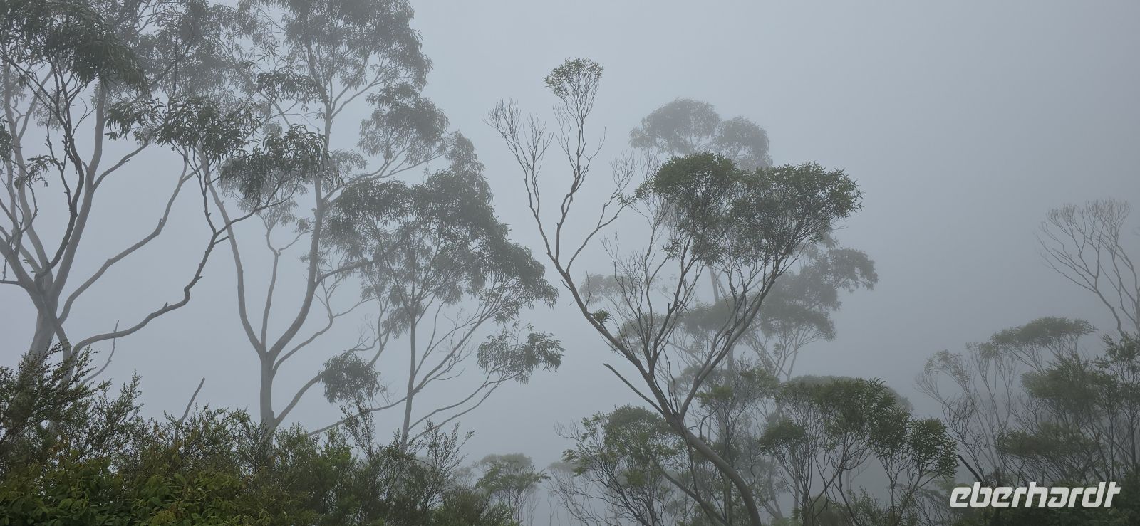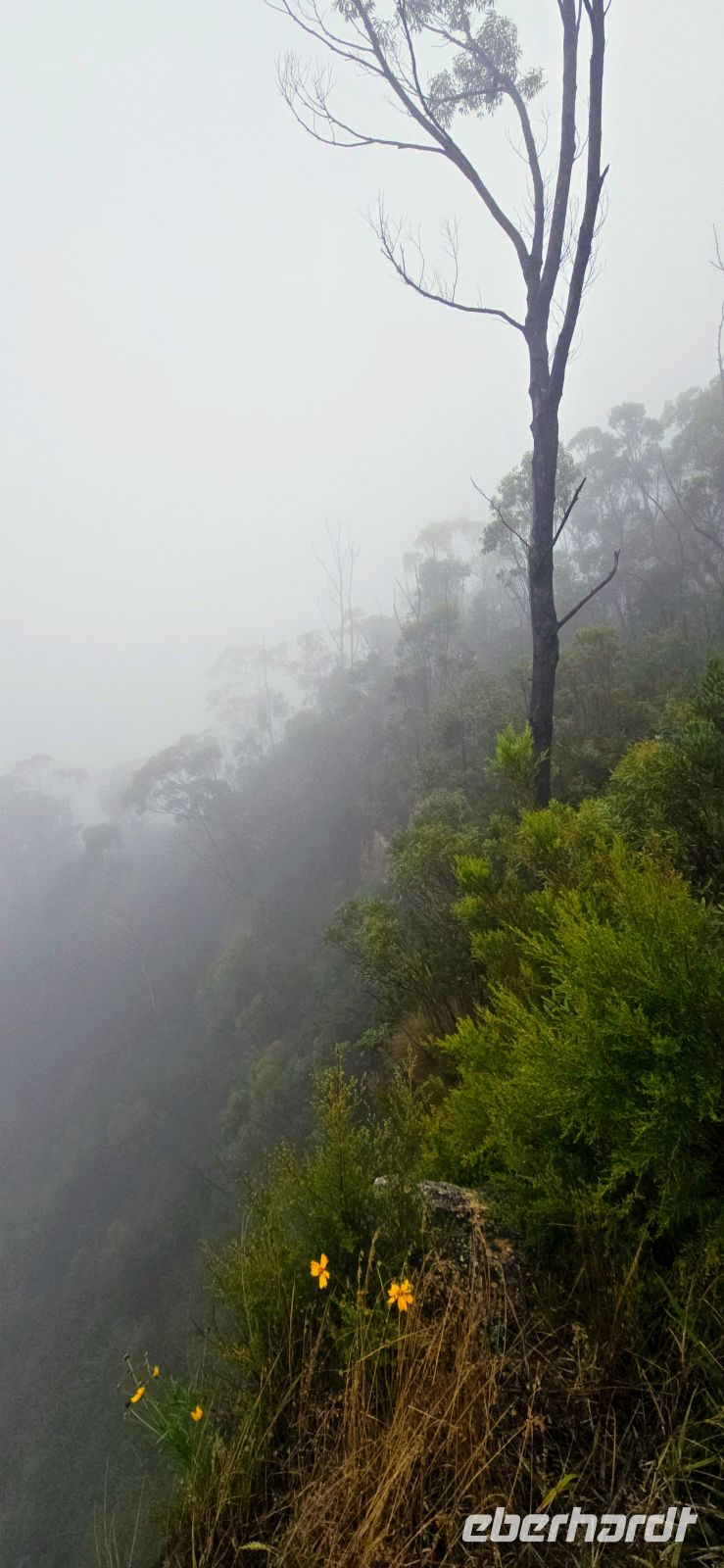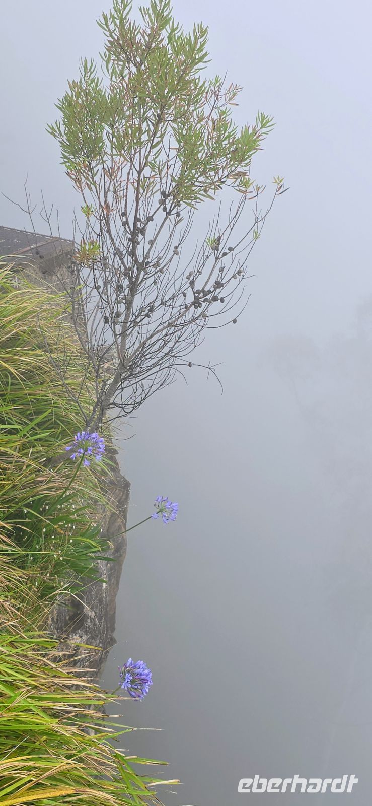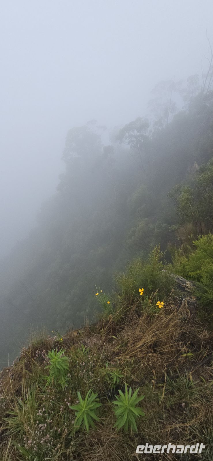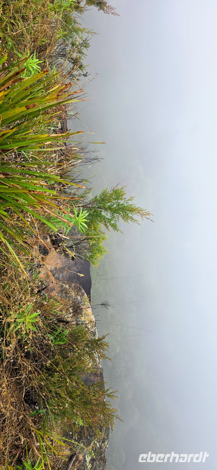 Am George Philips Outlook warten wir eigentlich auf spektakuläre Tiefblicke in die Schluchten. Stattdessen: weiße Nebelwatte, so weit das Auge reicht. Überraschend anders als erwartet – aber auf seine Weise faszinierend. Die Landschaft zeigt heute ihre geheimnisvolle Seite und erinnert fast an ein Naturmärchen.