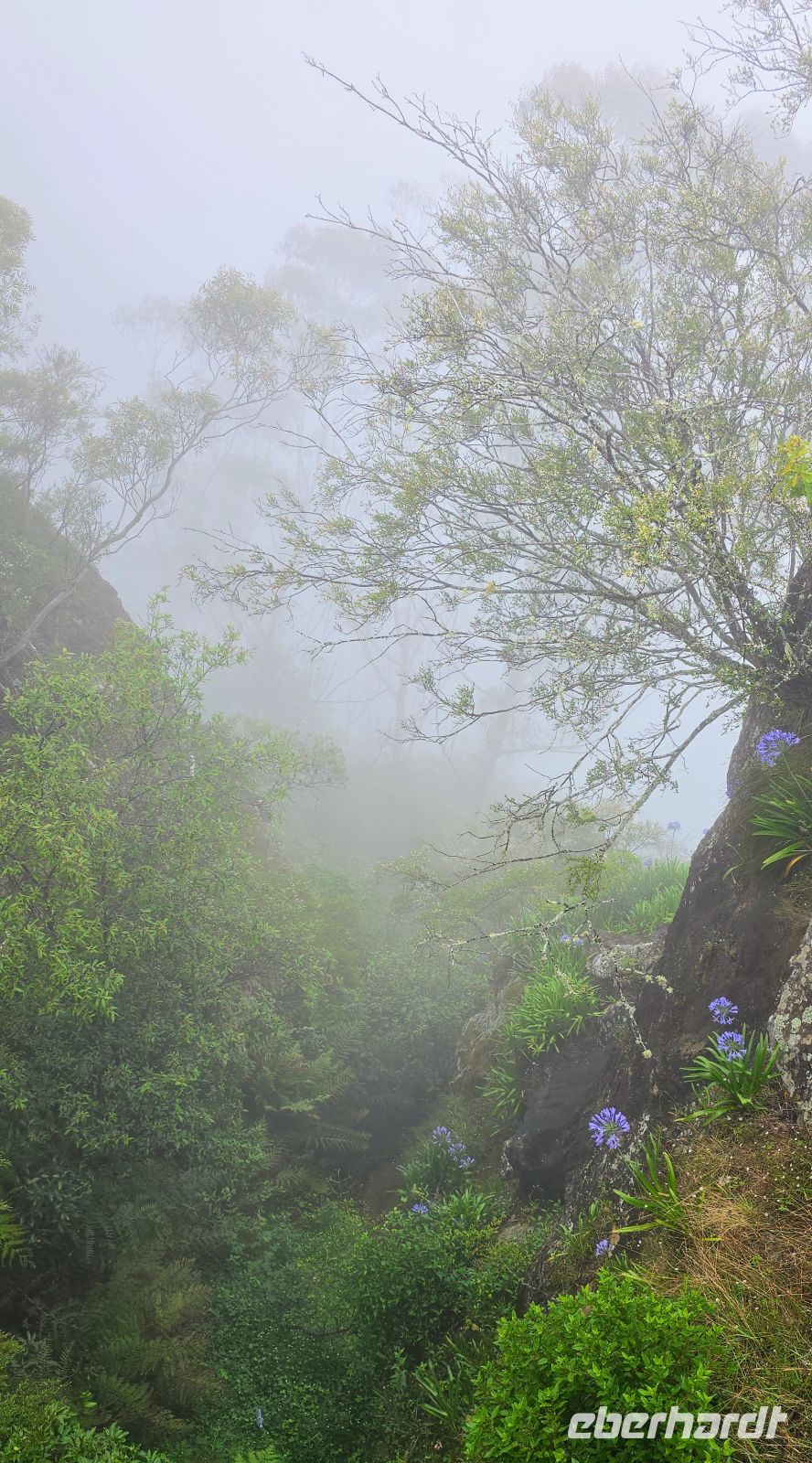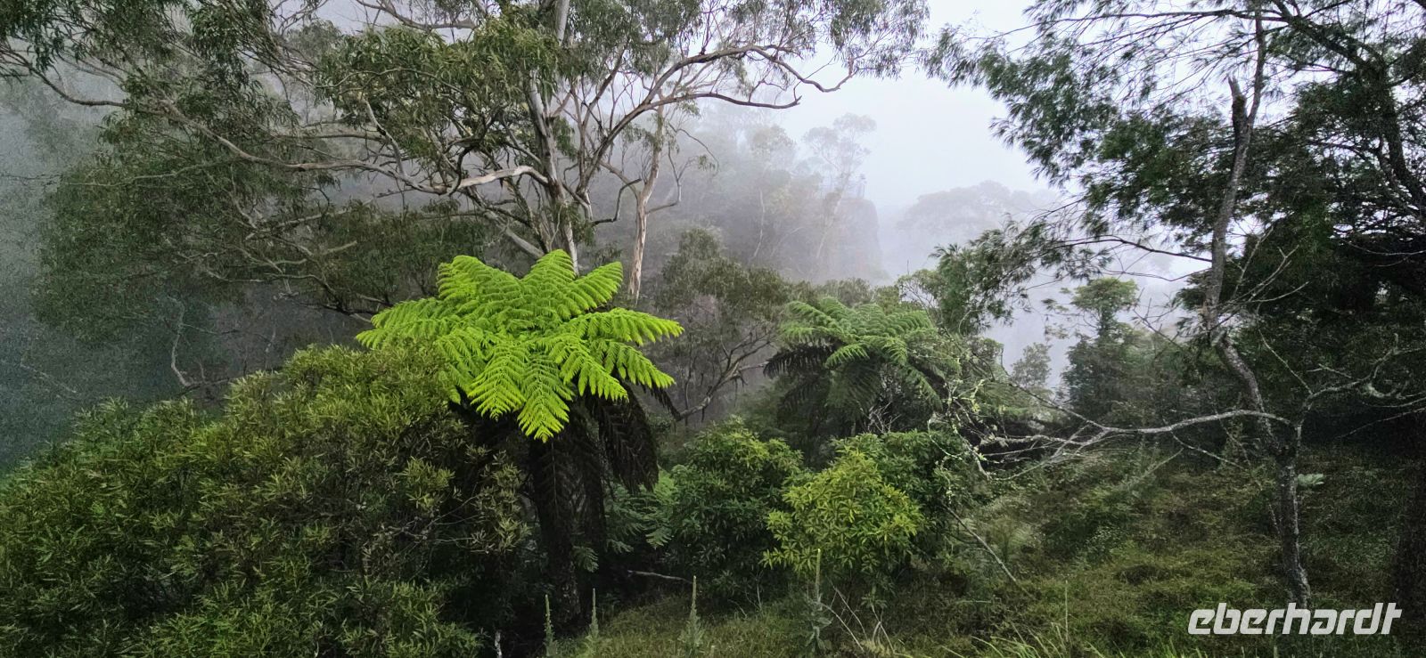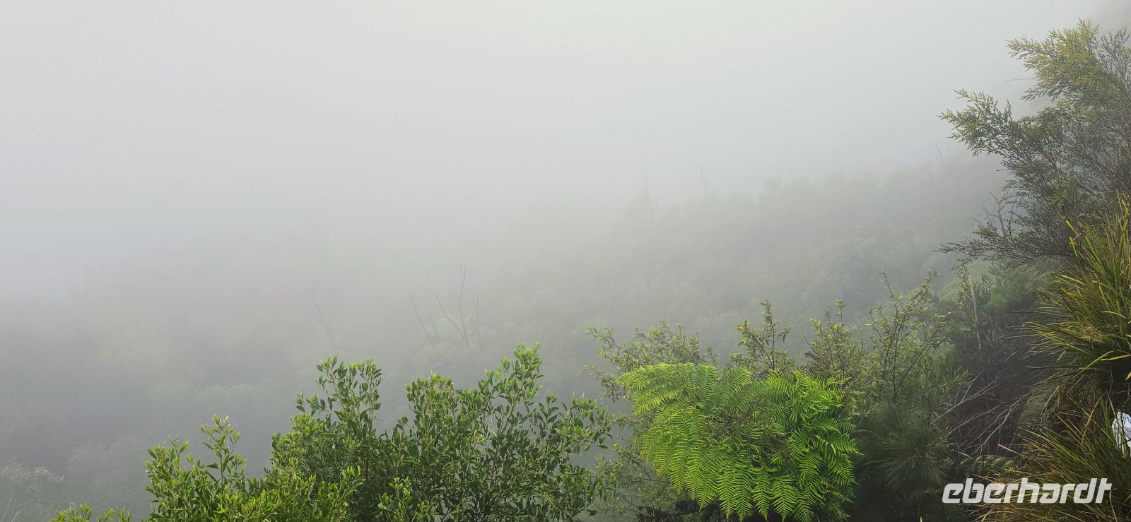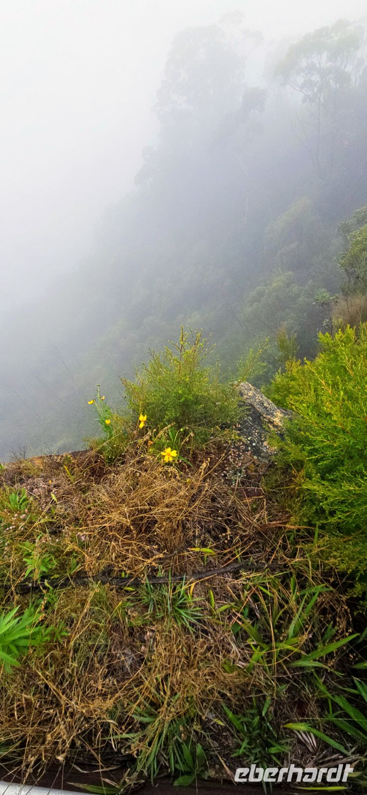 Am George Philips Outlook warten wir eigentlich auf spektakuläre Tiefblicke in die Schluchten. Stattdessen: weiße Nebelwatte, so weit das Auge reicht. Überraschend anders als erwartet – aber auf seine Weise faszinierend. Die Landschaft zeigt heute ihre geheimnisvolle Seite und erinnert fast an ein Naturmärchen.
