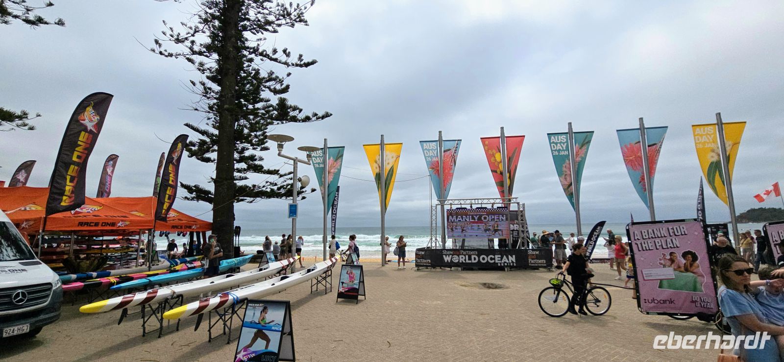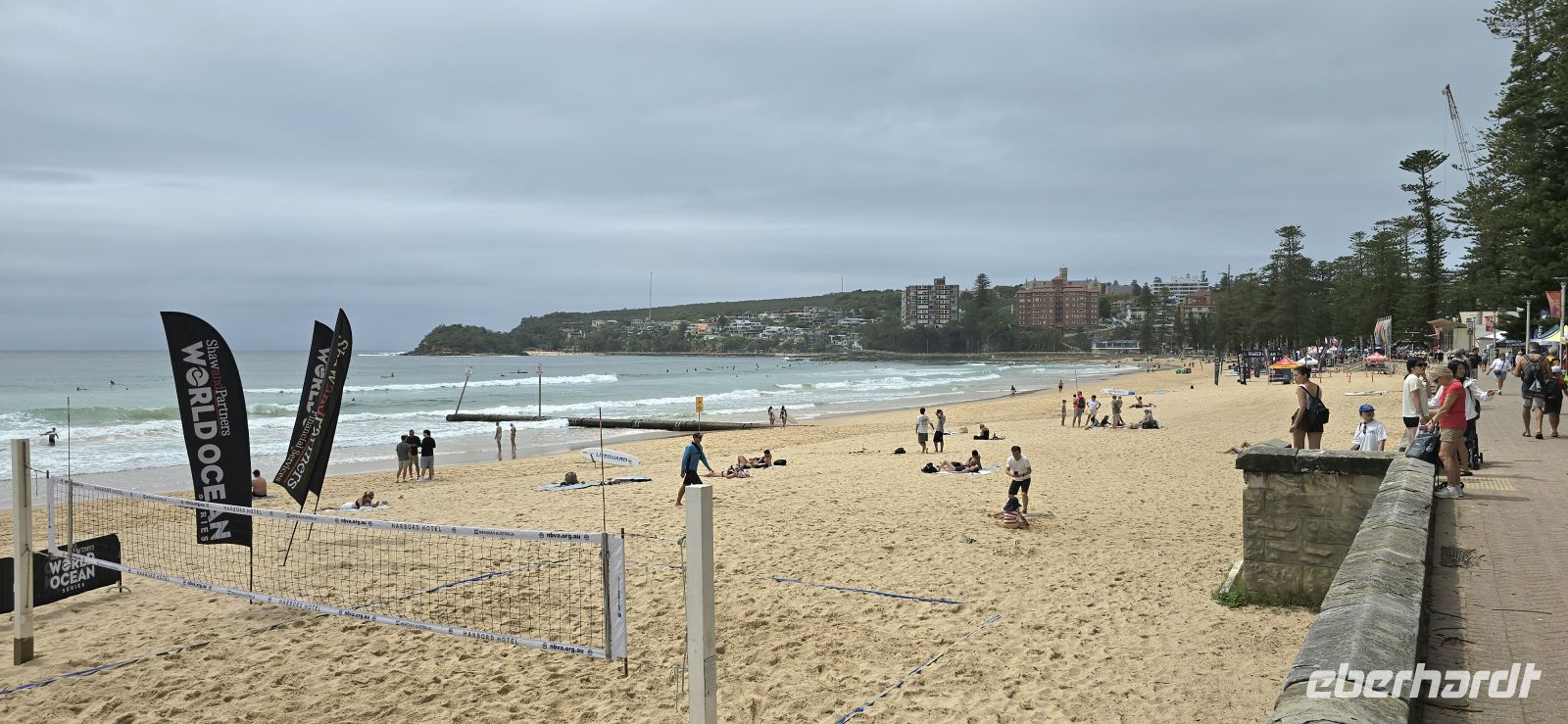 In Manly angekommen, werden wir standesgemäß mit Eisproben empfangen. Bei sommerlichen Temperaturen eindeutig die richtige Willkommensgeste. Danach bummeln wir durch die lebhafte Fußgängerzone bis hinunter zum Strand. Das Meer zeigt sich heute von seiner kraftvollen Seite, Baden ist verboten – aber die Surfer lassen sich davon nicht beeindrucken und liefern eine kleine Show direkt vor unseren Augen.