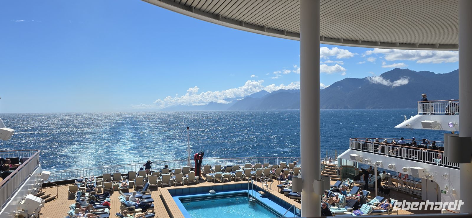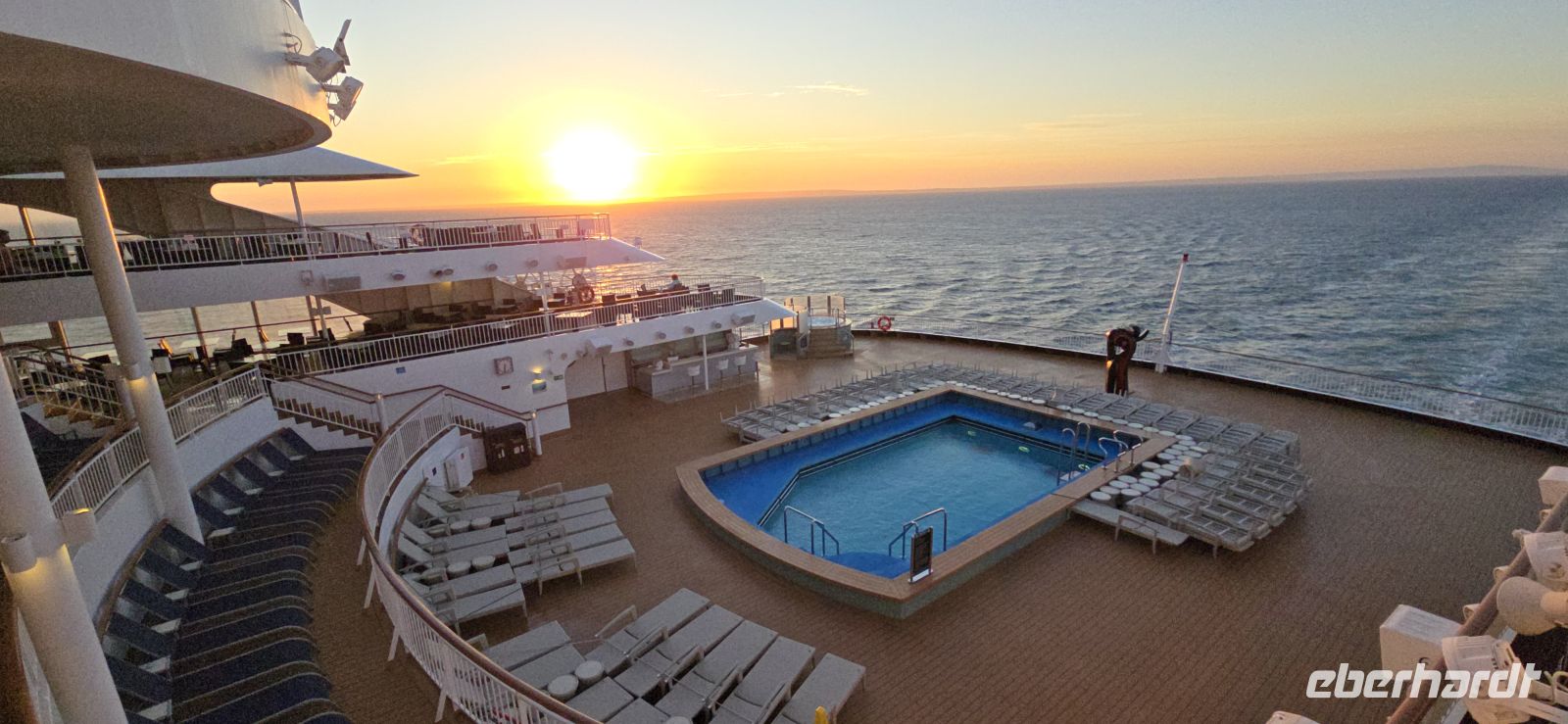 Ab Mittag klart der Himmel auf, als hätte jemand den Wetterschalter umgelegt. Die Pools werden gefüllt, die Sonnenliegen an Deck gebracht – und plötzlich ist Hochbetrieb angesagt. Grillduft liegt in der Luft, Burger brutzeln, und die Sonne meint es fast zu gut. Sonnenbrand inklusive, bei einigen sogar schon nach „nur fünf Minuten“.