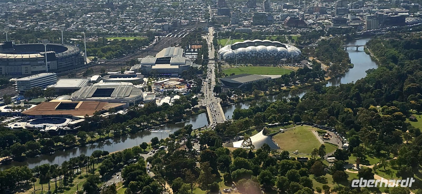 Gestärkt starten wir zur Stadtrundfahrt und lernen Melbourne aus ganz unterschiedlichen Blickwinkeln kennen. Durch die Innenstadt geht es über den Yarra River bis hinauf zum Skydeck, der höchsten Aussichtsplattform der Stadt. Der Blick ist schlichtweg großartig: Stadtviertel, Ozean, unser Schiff – alles auf einen Schlag. Perfekt für Fotos… und theoretisch auch für einen Drink. Praktisch leider noch etwas zu früh, denn wir sind vor der offiziellen Öffnungszeit da. Dafür gibt es exklusives Sightseeing: Von oben beobachten wir das bunte Treiben rund um die Australian Open an der Rod Laver Arena – Sportevent inklusive.