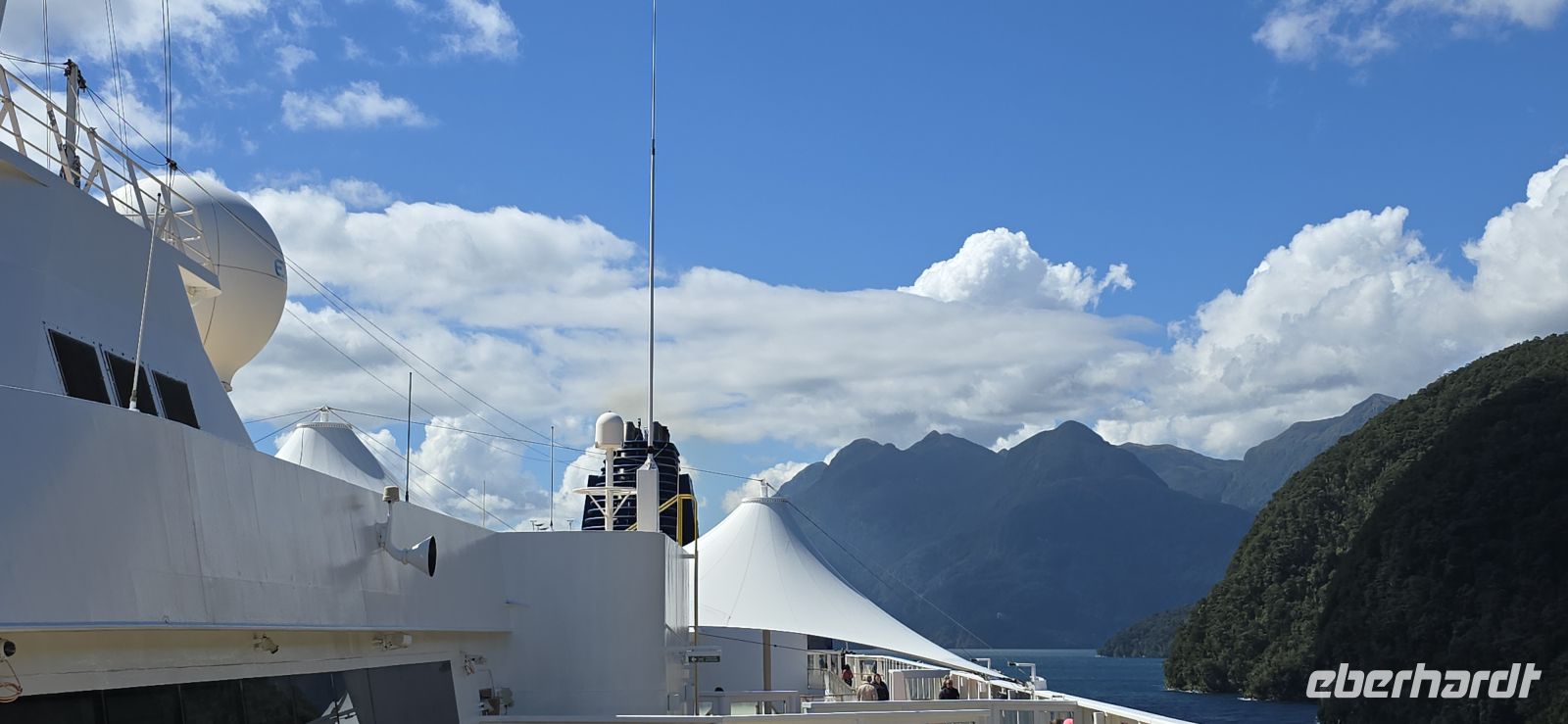 Der Fjord öffnet sich erneut, jetzt sind wir im Doubtful Sound. Wasserfälle stürzen von den Felswänden direkt ins Meer, als hätten sie nur auf uns gewartet. Und kaum hat man sich sattgesehen, folgt schon der nächste Höhepunkt: Dusky Sound. Sonne, Eis in der Hand oder ein Drink am Geländer – Fjordgenuss auf höchstem Niveau.