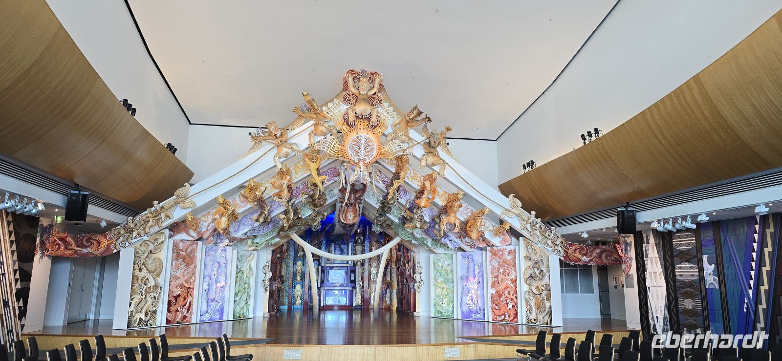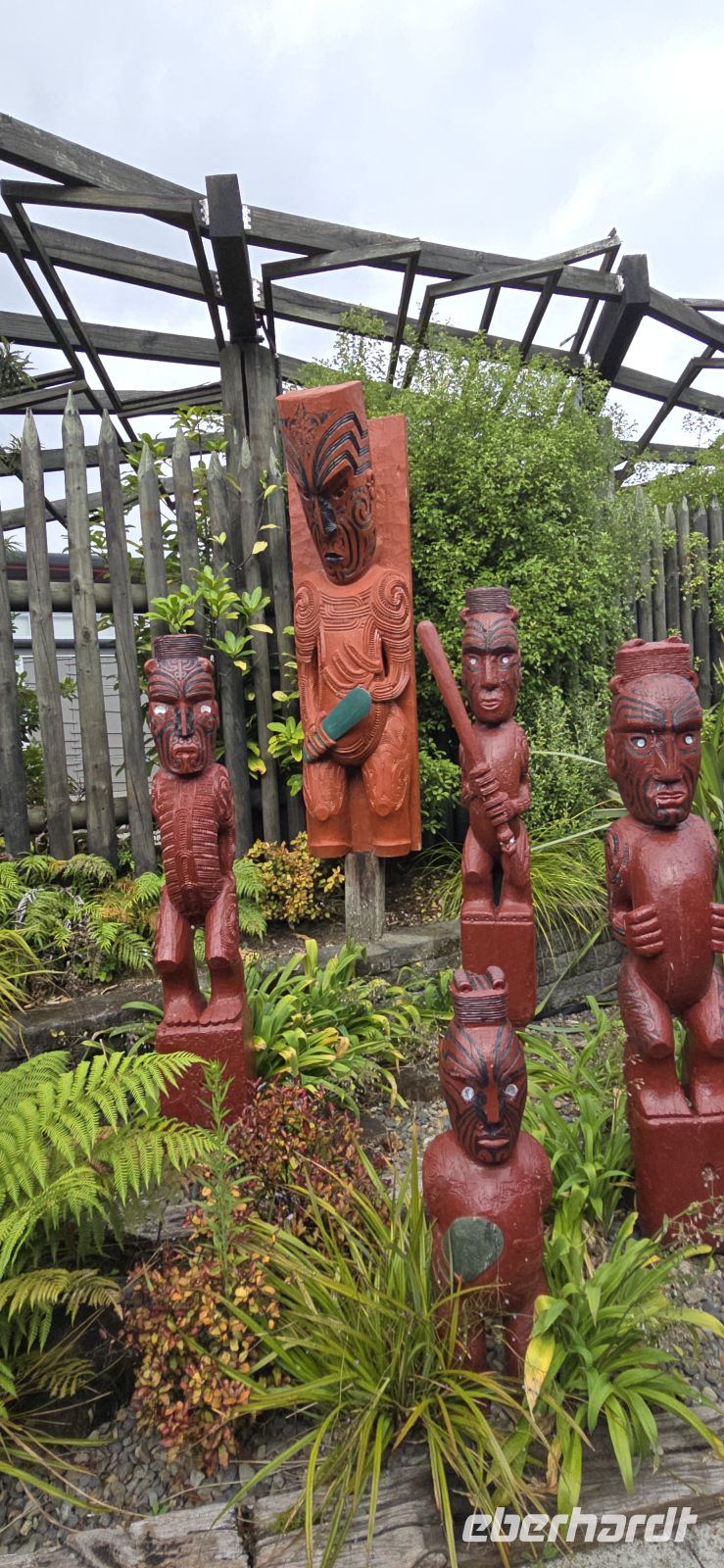 Unsere Rundfahrt führt uns durch die Stadt und weiter hinaus zu den Einfamilienhäusern entlang der Hawke’s Bay, an deren Ufer auch die Spirit friedlich vor sich hinliegt. Im Museum tauchen wir in die Māori-Kultur ein – und besonders erfreulich: Unser Driver-Guide spricht heute klar, deutlich und in vollständigen Sätzen. Die Erleichterung im Bus ist spürbar. So erfahren wir Spannendes über Napier, seine Geschichte und sogar darüber, dass sich hier einst deutsche Siedler niedergelassen haben. Man ist eben überall.