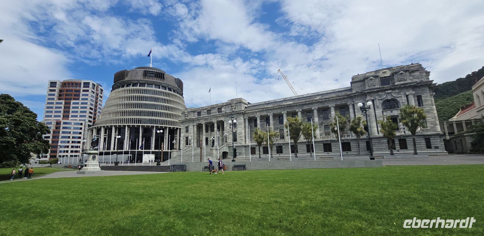 Im Regierungsviertel legen wir Fotostopps ein: Regierungssitz, Botschaften aus aller Welt, darunter auch exotischere Vertreter wie die Fidschi-Inseln. Internationale Atmosphäre inklusive.