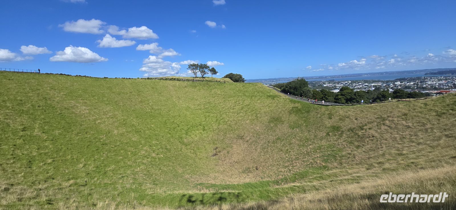 Auckland zeigt sich sofort von seiner Schokoladenseite: Skyline mit Skytower, die imposante Harbour Bridge, viel Grün, elegante Viertel – alles wirkt entspannt und gleichzeitig mondän. Unser erster Halt führt uns auf den Mount Eden, einen erloschenen Vulkan und ganz klar einen der schönsten Aussichtspunkte der Stadt. 360-Grad-Rundblick, Postkartenpanorama und gefühlt tausend Fotos später sind sich alle einig: besser kann ein Auftakt kaum sein.