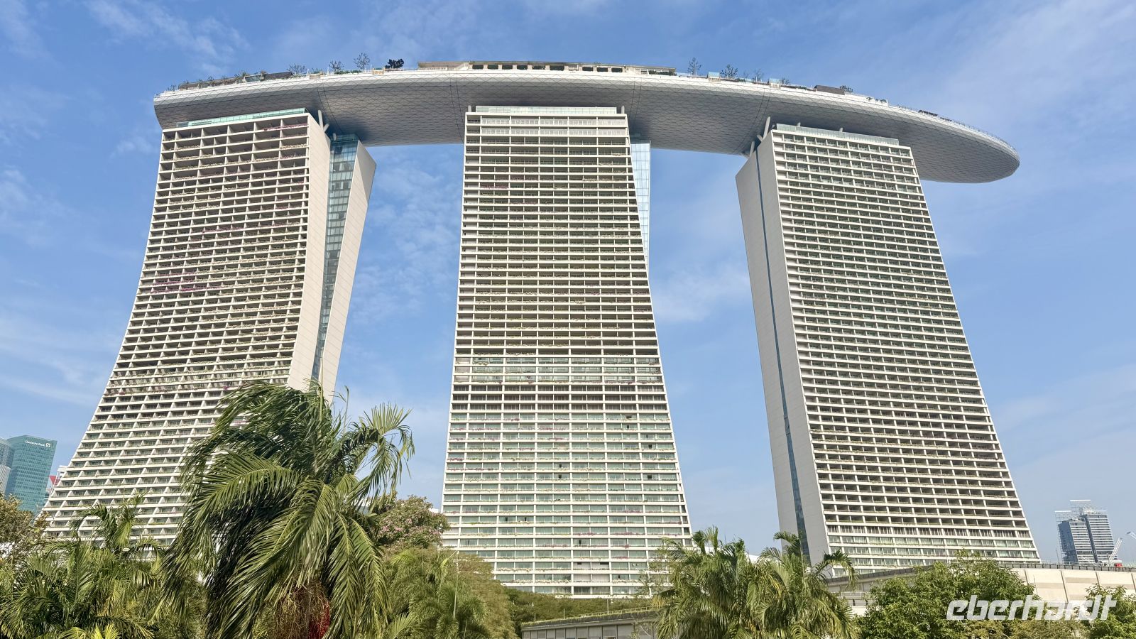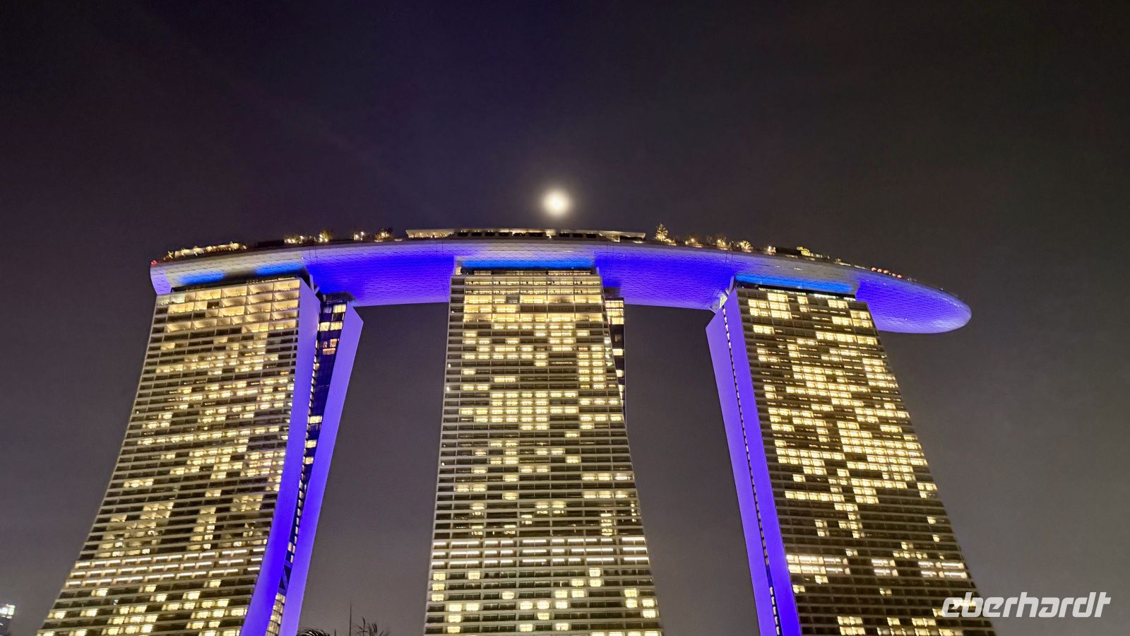 Im Anschluss fuhren wir zur Aussichtsplattform des Marina Bay Sands Hotels. Das spektakuläre Hotel besteht aus drei Türmen, die in etwa 200 Metern Höhe durch eine riesige Plattform – den sogenannten SkyPark – miteinander verbunden sind. Von dort oben hat man einen fantastischen Blick über die Marina Bay, die Skyline von Singapur und die umliegenden Stadtteile. Besonders bekannt ist auch der Infinity Pool auf dem Dach, der allerdings nur Hotelgästen zugänglich ist.