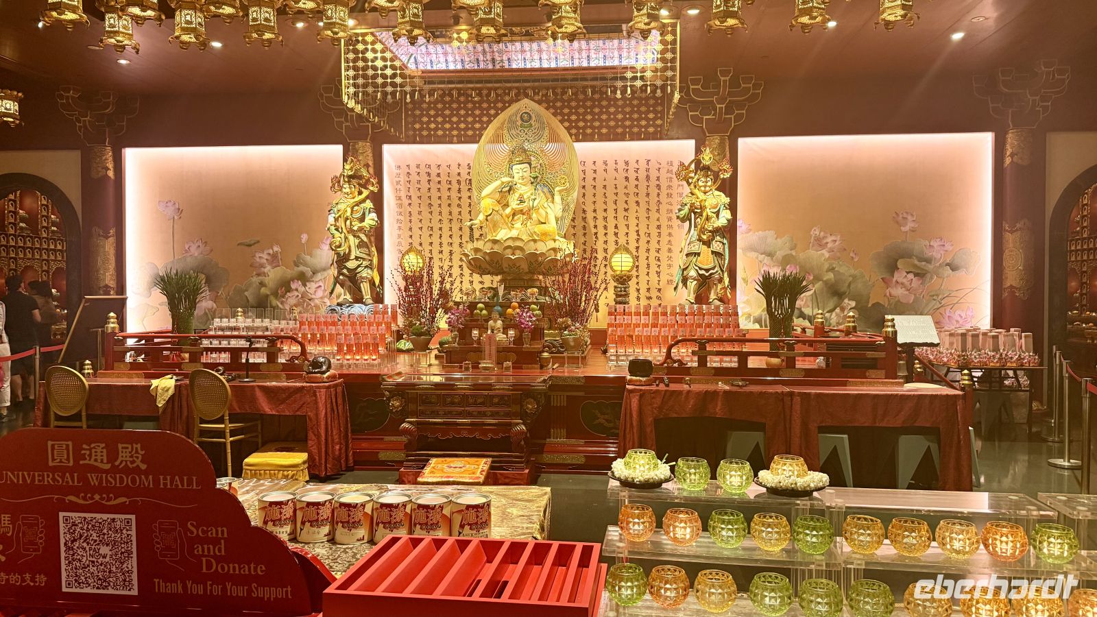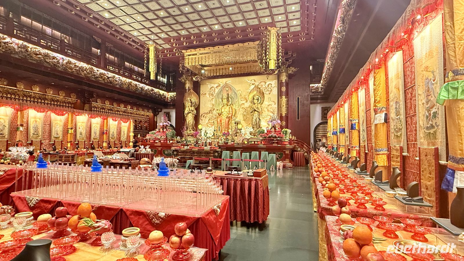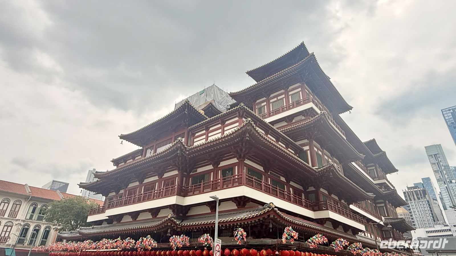 Am Mittag startete unsere Stadtrundfahrt. Zuerst schauten wir uns Chinatown an. Dieses historische Viertel entstand im 19. Jahrhundert, als viele chinesische Einwanderer nach Singapur kamen. Heute findet man hier eine spannende Mischung aus traditionellen Tempeln, Märkten, bunten Shophouses und modernen Cafés. Besonders bekannt ist der Buddha Tooth Relic Tempel, der angeblich einen Zahn Buddhas beherbergt. Dort machten wir auch gleich unsere Mittagspause.