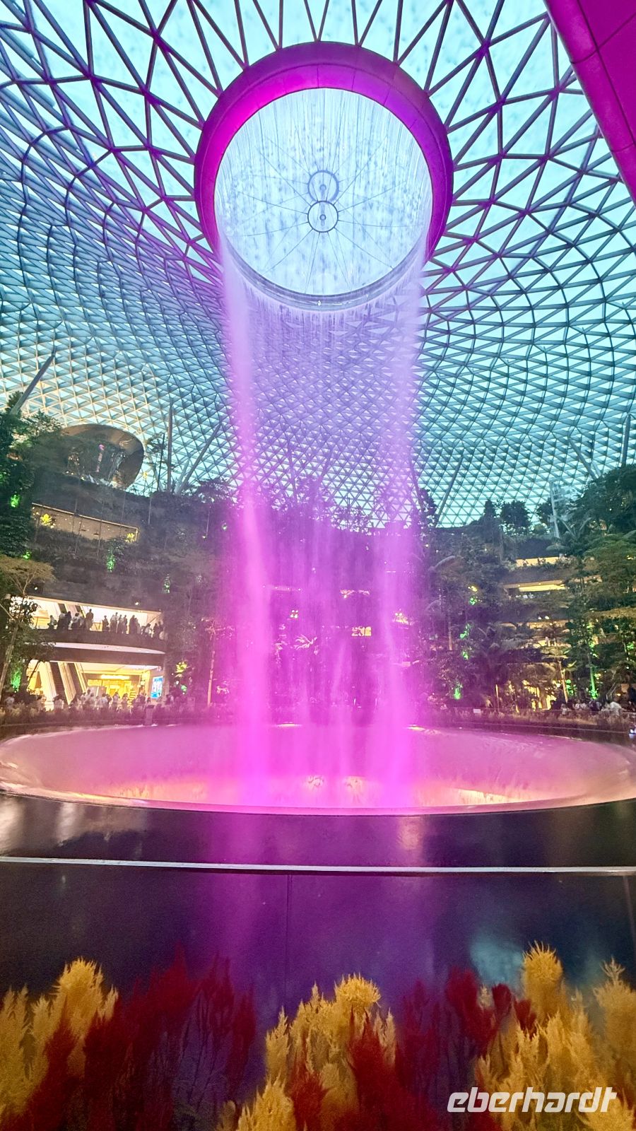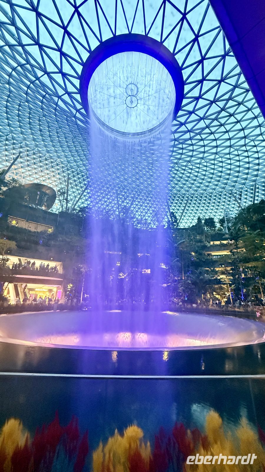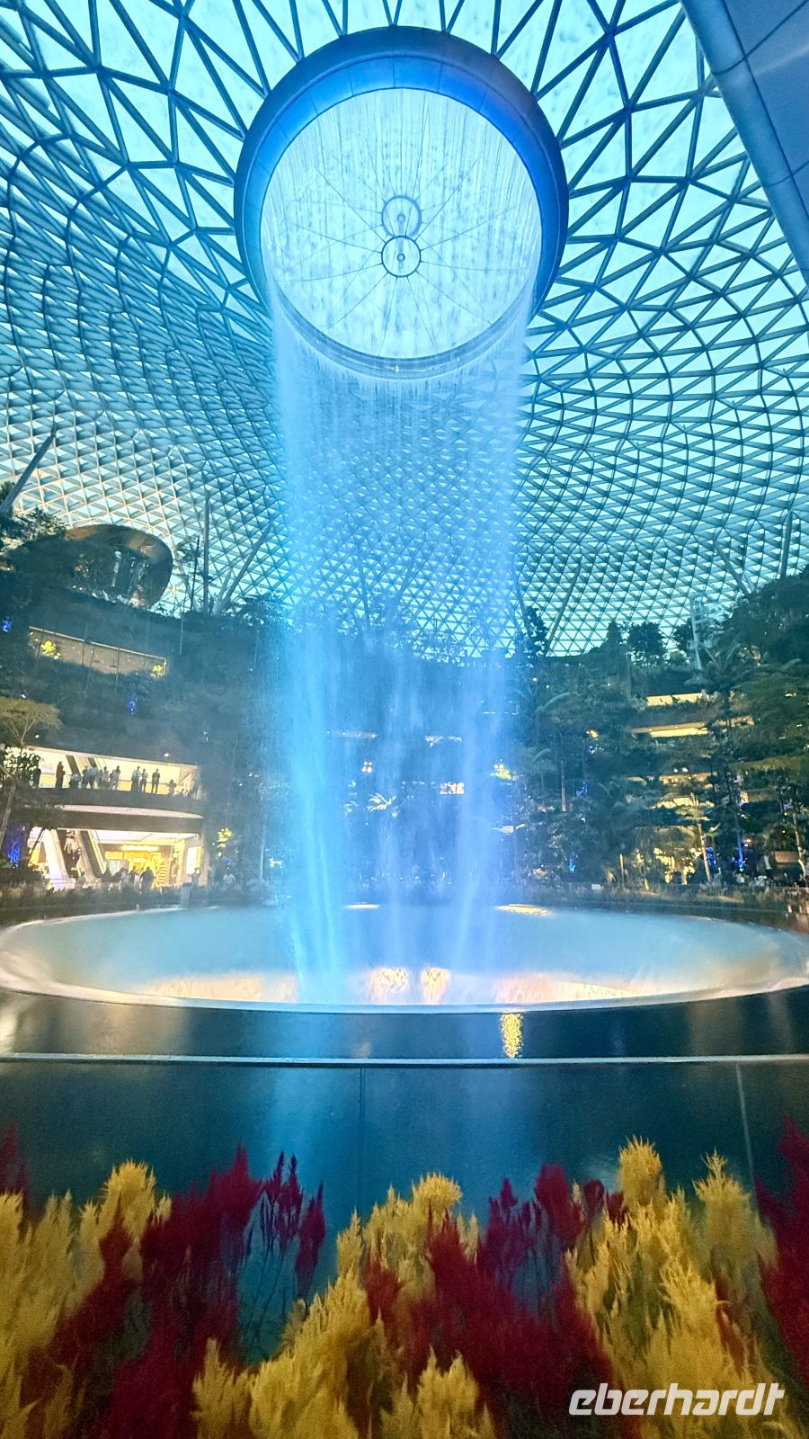 Danach ging es zum Flughafen, wo wir uns noch den Jewel Changi Airport anschauten. Dieses beeindruckende Gebäude ist mehr als nur ein Terminal: Es ist ein riesiges Einkaufs- und Erlebniszentrum mit Gärten, Restaurants und dem berühmten „Rain Vortex“, dem größten Indoor-Wasserfall der Welt mit rund 40 Metern Höhe.