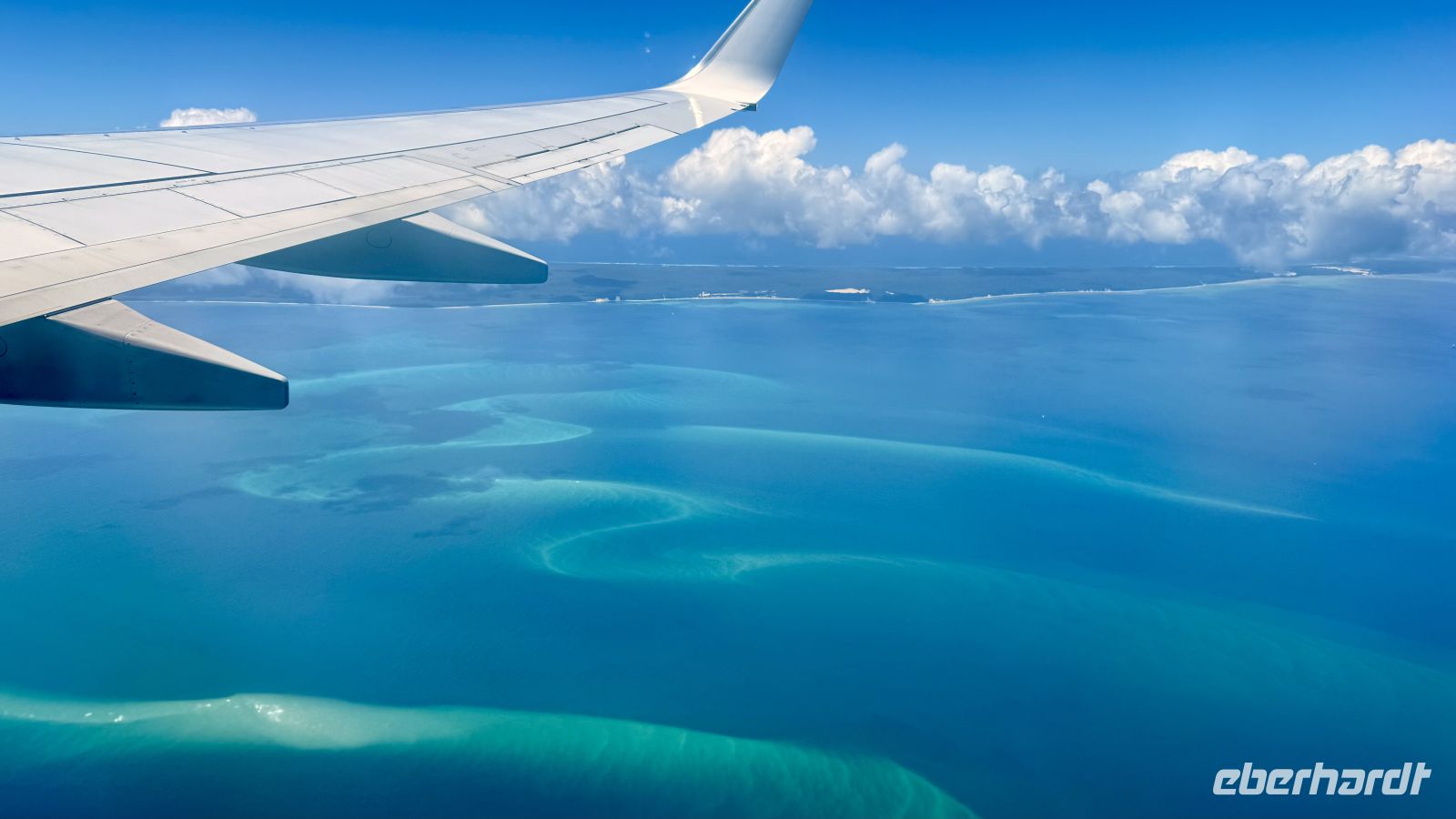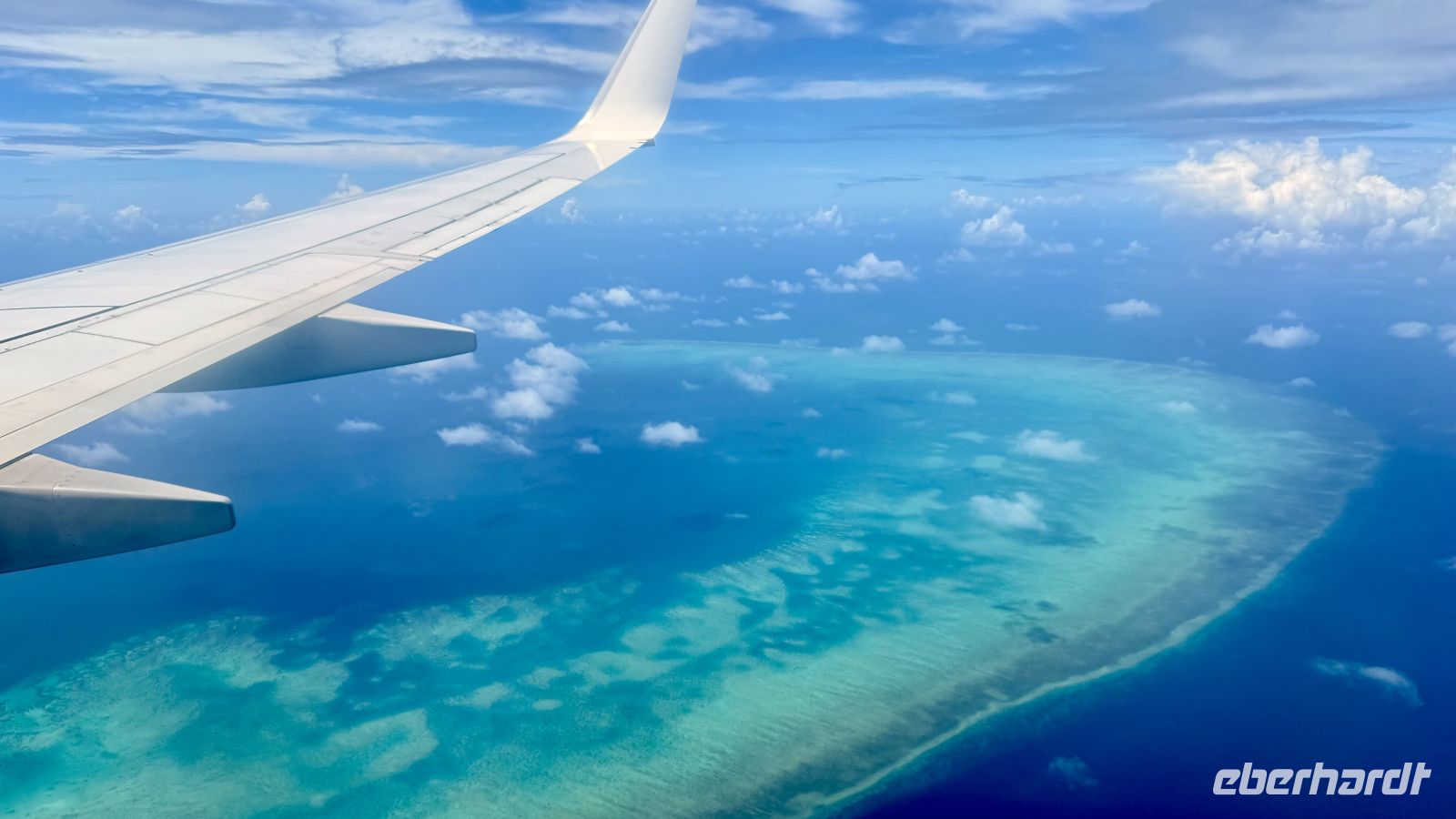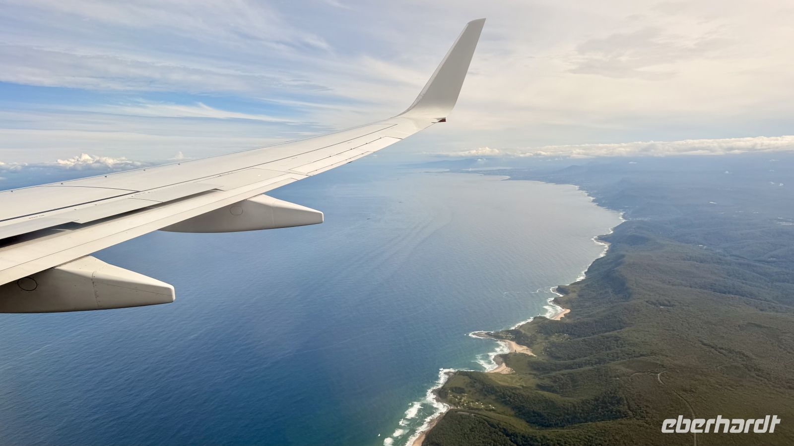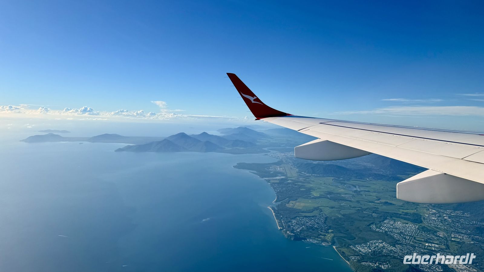Bereits während des Fluges konnten wir beeindruckende Landschaften sehen – endlose Küstenlinien, dichte Regenwälder und das tiefblaue Meer des Korallenmeers.