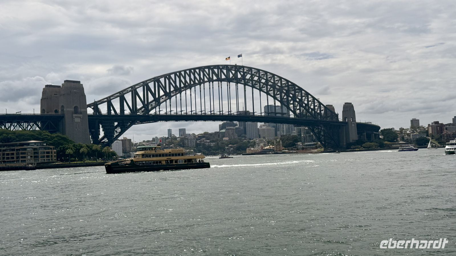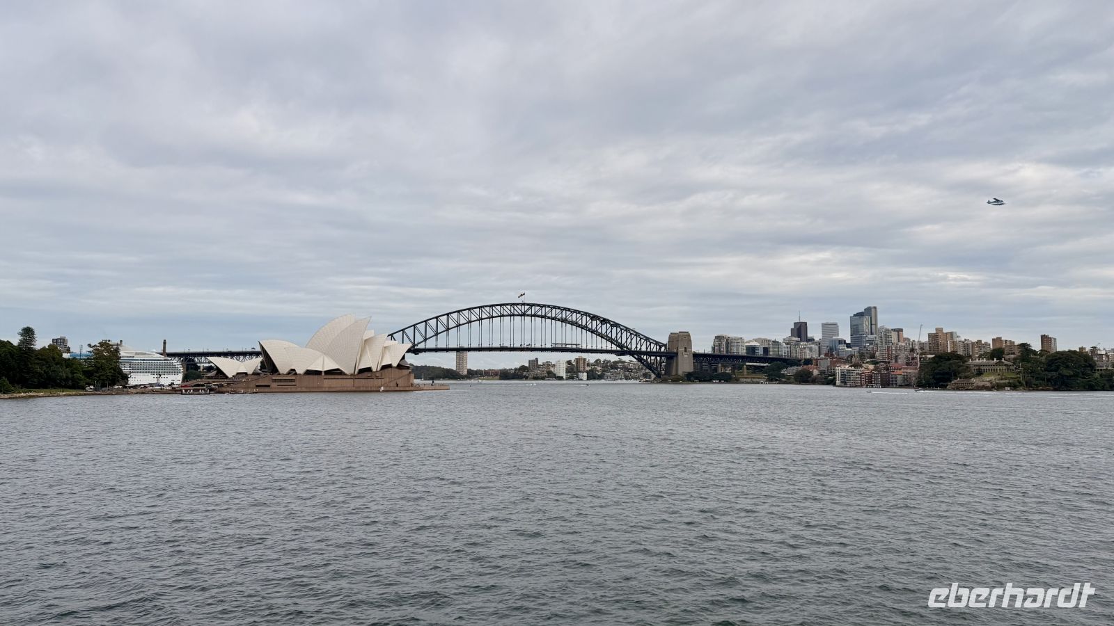 Unsere Mittagspause legten wir anschließend am Circular Quay ein. Dieser Hafenbereich ist das zentrale Fähr- und Verkehrsdrehkreuz von Sydney und zugleich einer der schönsten Plätze der Stadt. Von hier aus hat man einen fantastischen Blick auf die Sydney Harbour Bridge und das berühmte Opernhaus. Außerdem starten hier viele Fähren zu den verschiedenen Stadtteilen rund um den Hafen.