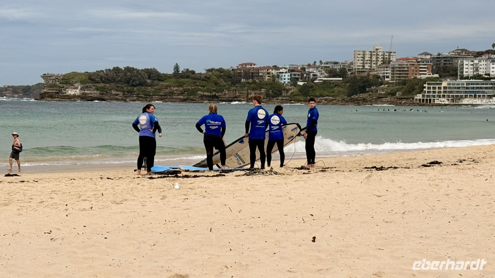 Weiter ging es anschließend zum berühmten Bondi Beach, einem der bekanntesten Strände Australiens. Der rund einen Kilometer lange Sandstrand ist besonders bei Surfern sehr beliebt, da hier oft ideale Wellen herrschen. Gleichzeitig ist Bondi Beach auch ein beliebter Treffpunkt für Einheimische und Besucher – mit Cafés, Restaurants, Spazierwegen und einer lebendigen Strandkultur. Dort hatten wir etwas Zeit, um das typische australische Strandfeeling aufzusaugen, die Surfer zu beobachten oder einfach gemütlich am Strand entlangzuschlendern.