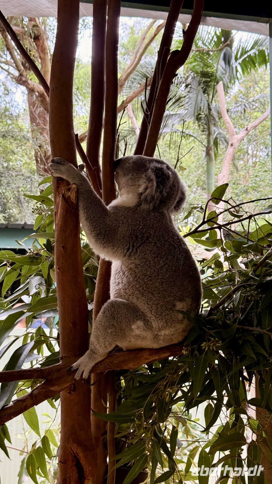 Einige Gäste hatten außerdem die einmalige Gelegenheit, ein Foto mit einem Koala zu machen und ihn sogar vorsichtig auf dem Arm zu halten. Koalas gehören zu den bekanntesten Tieren Australiens und leben hauptsächlich in Eukalyptusbäumen, von deren Blättern sie sich fast ausschließlich ernähren. Sie schlafen bis zu 20 Stunden am Tag und sind daher besonders gemütliche Bewohner des australischen Busches.