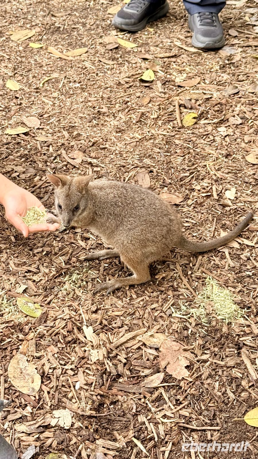 Bevor wir nach Sydney zurückfuhren, besuchten wir den Featherdale Wildlife Park, ein bekanntes Schutzgebiet für australische Wildtiere in Doonside, etwa 45 Minuten von Sydney entfernt. Dort wurden wir freudig von Kängurus, Koalas, Emus, Wombats und vielen weiteren Tieren empfangen. Einige Gäste konnten sogar die Kängurus füttern – ein einmaliges Erlebnis, um Australiens Tierwelt aus nächster Nähe kennenzulernen.