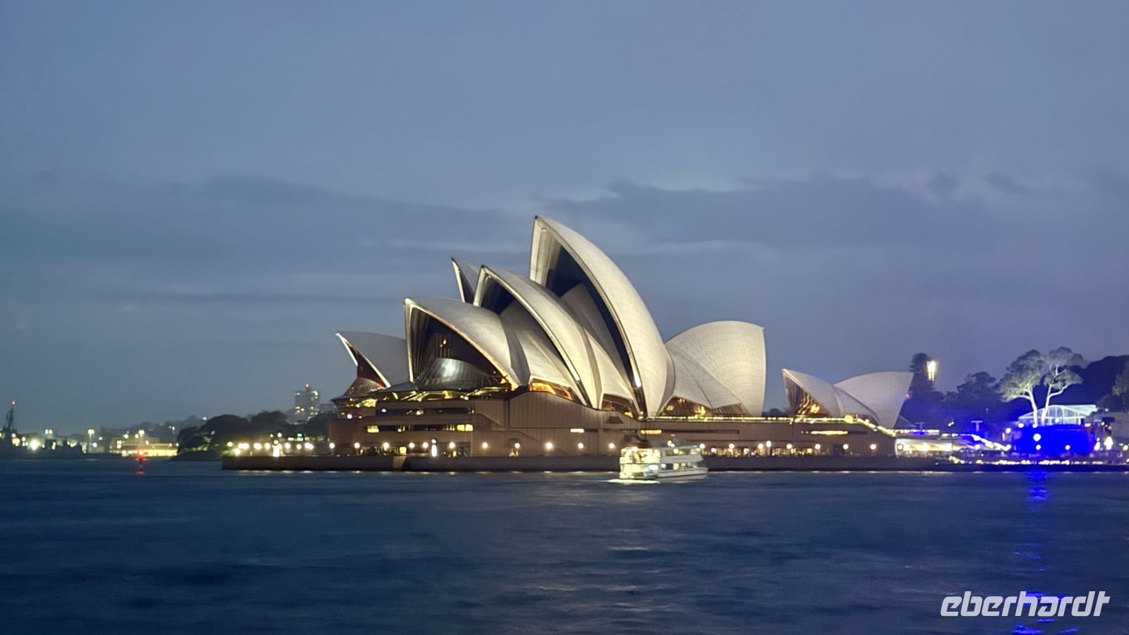 Während der Busfahrt nutzte ich die Zeit, um alle wichtigen Informationen für die bevorstehende Einschiffung zu geben. Am späten Nachmittag erreichten wir wieder Sydney. Unser Abendessen nahmen wir im Darling Pavilion ein. Einige Gäste nutzten den Abend zudem, um eine Aufführung von Madame Butterfly in der Sydney Opera zu besuchen – ein würdiger kultureller Abschluss eines erlebnisreichen Tages.
