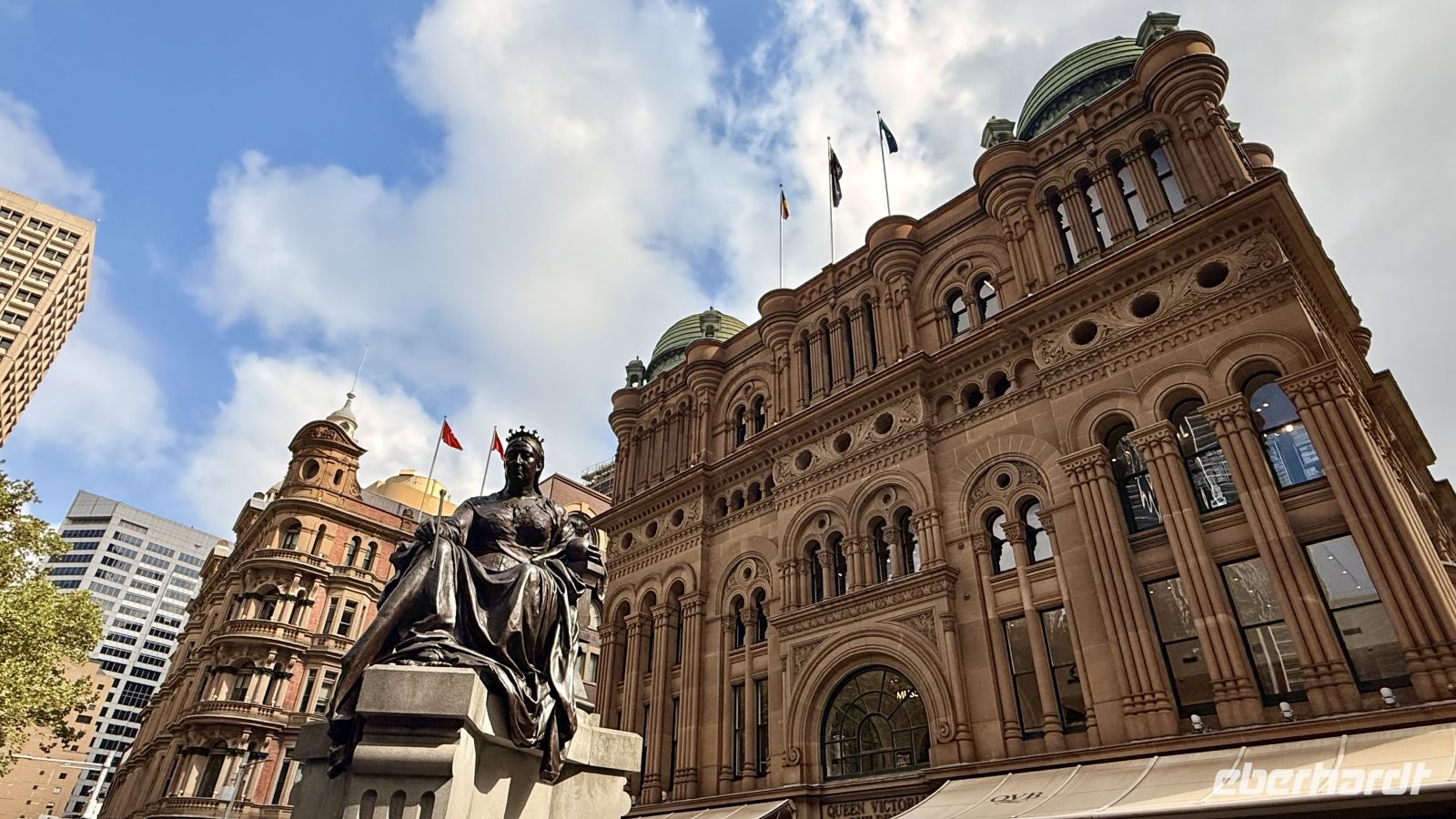 Der Sydney Tower, auch bekannt als Centrepoint Tower, ist mit 309 Metern das höchste Gebäude Sydneys und bietet eine 360-Grad-Aussicht über die Stadt, den Hafen und die Blue Mountains. Wir besuchten auch noch das Queen Victoria Building (QVB), ein prachtvolles viktorianisches Kaufhaus aus dem Jahr 1898, bekannt für seine beeindruckende Architektur, Mosaikböden, Glasdachkuppeln und luxuriösen Boutiquen.