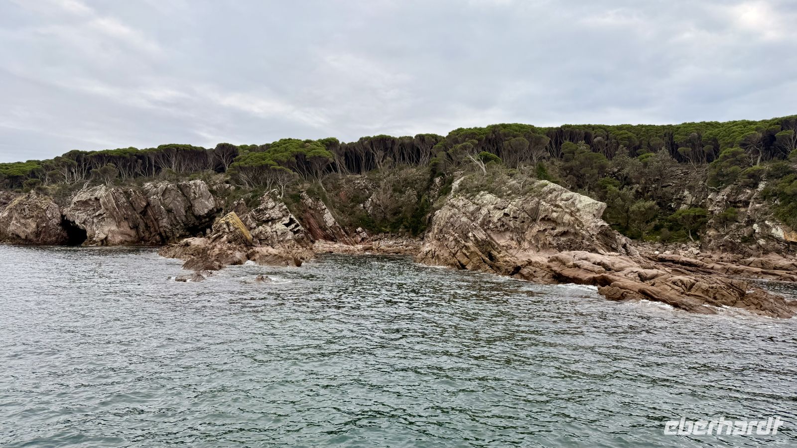 Die Natur zeigte sich heute von ihrer rauen Schönheit: Fisheries Beach, historische Leuchttürme und die kleinen Buchten waren ein herrlicher Anblick. Die Wassertemperatur lag bei etwa 15–16 Grad, und wir konnten uns vorstellen, wie die majestätischen Humpback-Wale im September und Oktober hier ihre Jungen durch die Bucht begleiten.