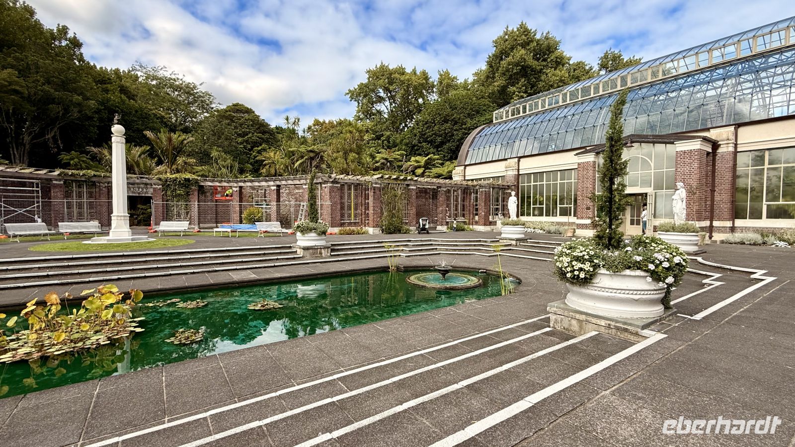 Anschließend besuchten wir die Wintergärten (Auckland Domain Wintergardens). Diese bestehen aus zwei beeindruckenden Gewächshäusern im viktorianischen Stil – eines mit tropischen Pflanzen und eines mit gemäßigten Gewächsen. Sie liegen im ältesten Park der Stadt, dem Auckland Domain, der auf einem erloschenen Vulkan errichtet wurde.