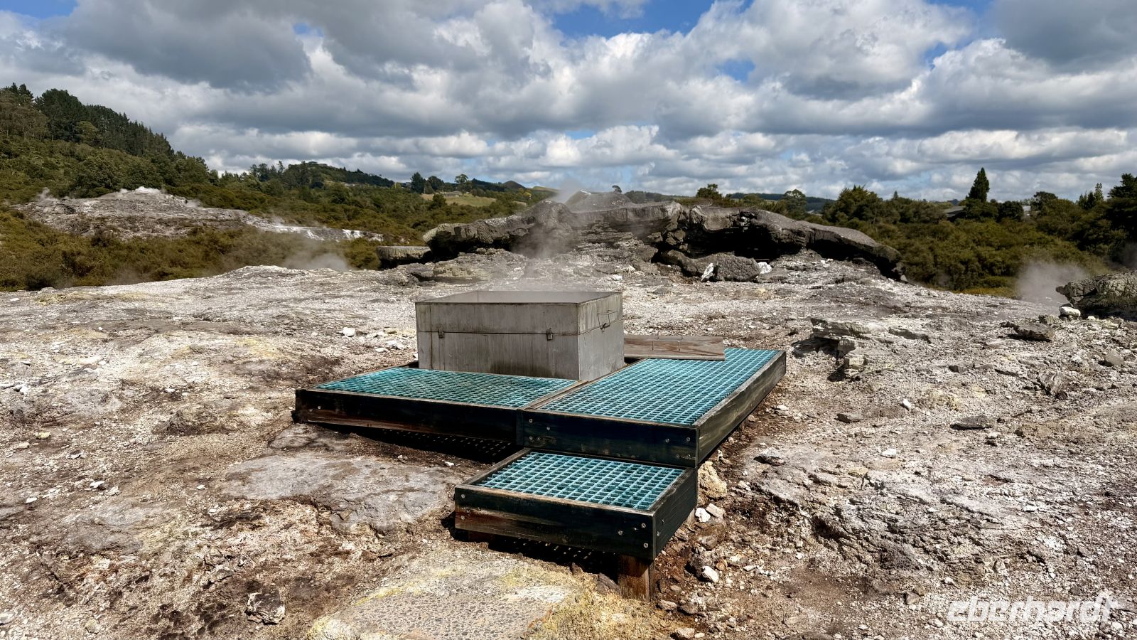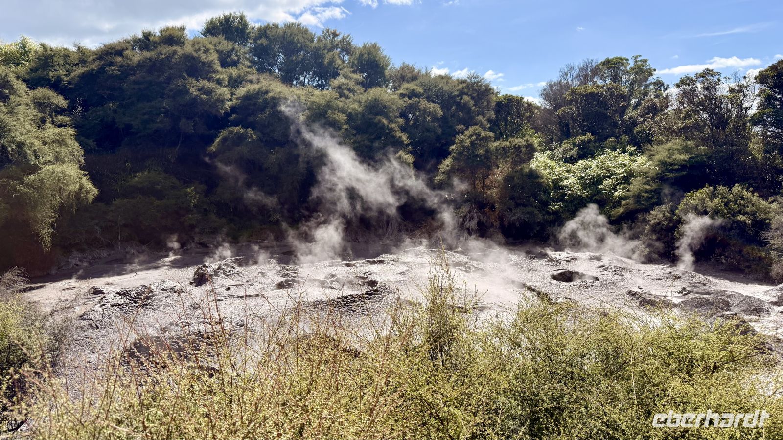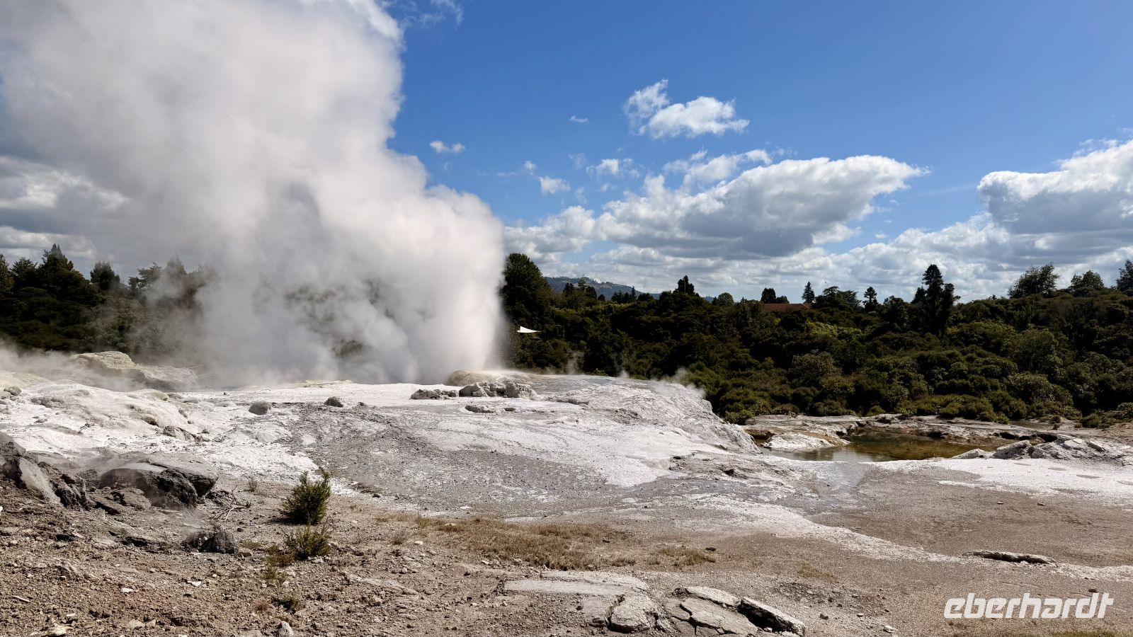 Ein besonderes Highlight war der Besuch im Kiwi Center, wo wir tatsächlich drei Kiwi-Vögel sehen konnten – einer davon erst ein Jahr alt. Insgesamt gibt es heute nur noch etwa 6.800 Tiere, weshalb sie stark geschützt werden. Natürlich durften auch die geothermischen Besonderheiten Rotoruas nicht fehlen: Wir sahen blubbernde Schlammlöcher und beeindruckende Geysire, die regelmäßig heiße Wasserfontänen in die Luft schießen – ein faszinierendes Naturschauspiel. Zum Abschluss genossen wir ein traditionelles Hangi, ein Māori-Essen, das in einem Erdofen gegart wird. Fleisch und Gemüse werden dabei langsam unter der Erde gegart, was den Speisen ein ganz besonderes Aroma verleiht. Viele Gäste nutzten anschließend noch die Gelegenheit, im Souvenirshop zu stöbern, bevor unser erlebnisreicher Ausflug endete und wir zurück zum Hafen fuhren.