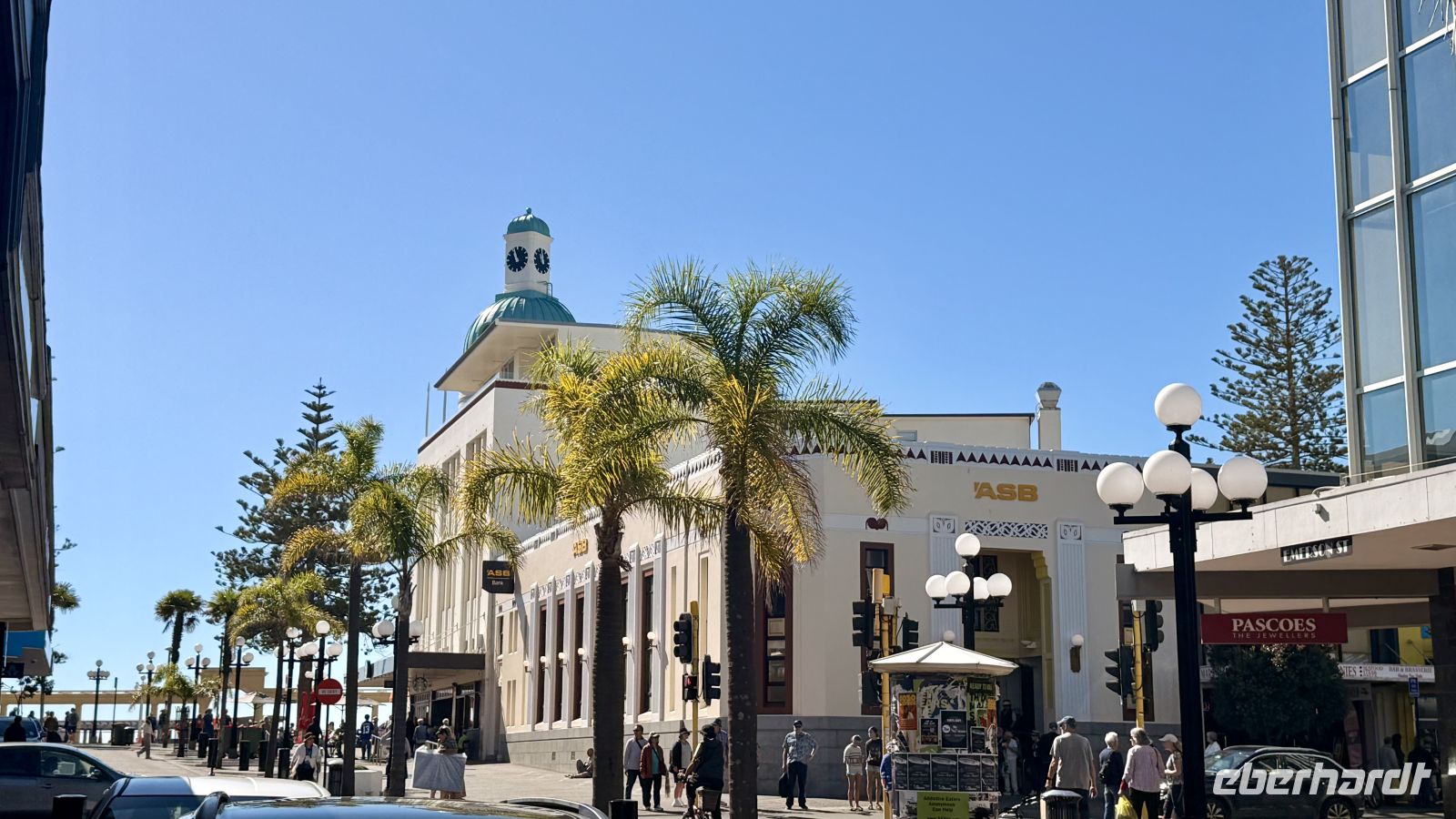 Heute erreichten wir Napier, eine Küstenstadt auf der Nordinsel Neuseelands mit rund 65.000 Einwohnern. Die Stadt wurde Mitte des 19. Jahrhunderts gegründet und ist heute vor allem für ihren einzigartigen Art-Déco-Stil bekannt. Napier zählt zudem zu den wichtigsten Hafenstädten des Landes – es ist der viertgrößte Hafen Neuseelands, von dem vor allem Wolle und Fleisch exportiert werden.