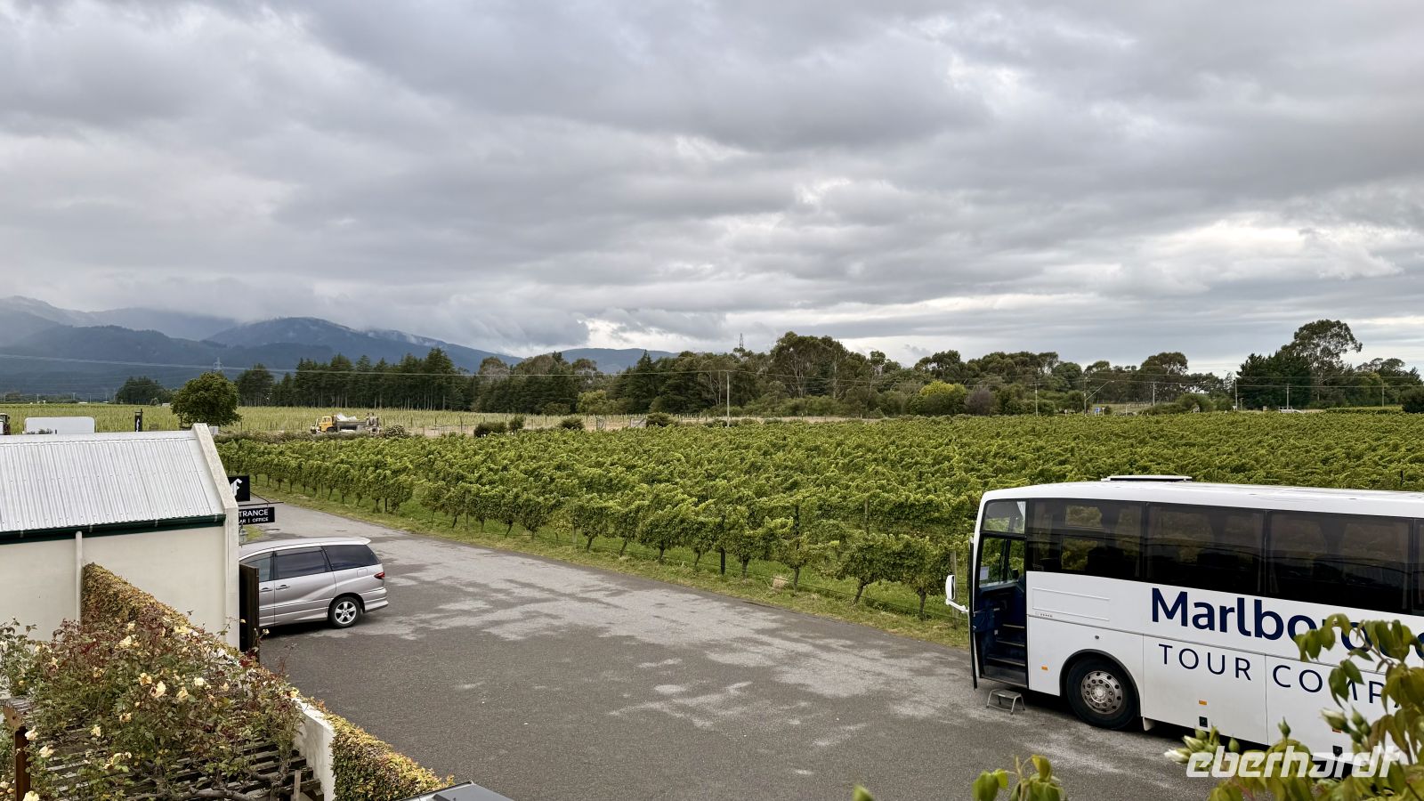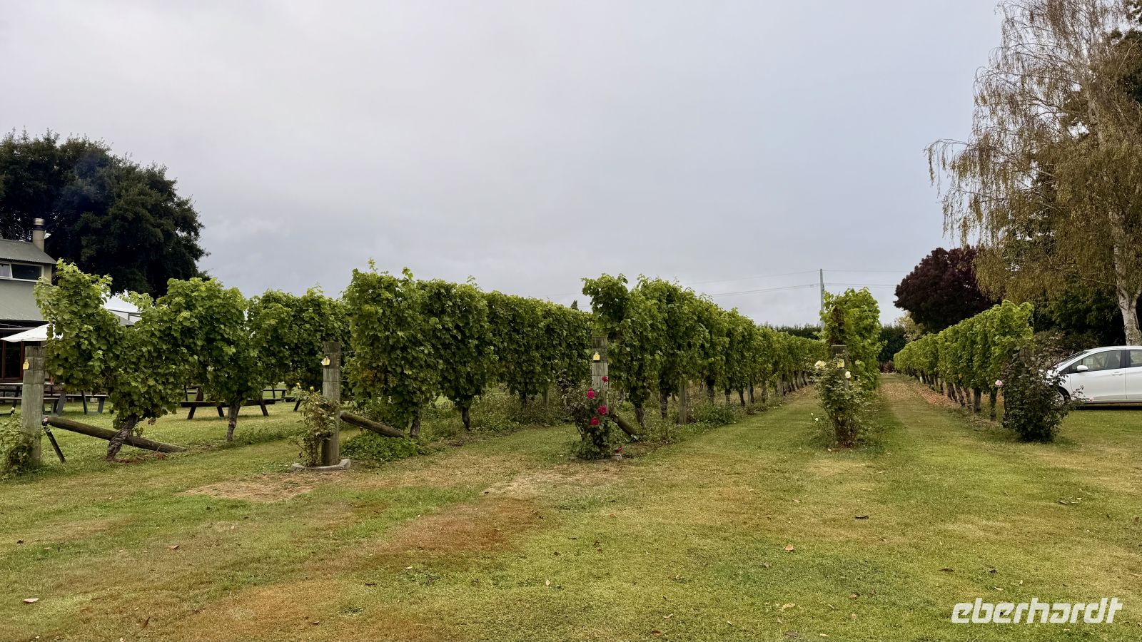 Danach ging es weiter zu Forrest Wines, gegründet von einem Ärzteehepaar. Das Weingut umfasst etwa 80 Hektar und ist bekannt für seine Experimentierfreude mit verschiedenen Rebsorten – insgesamt werden hier 21 verschiedene Sorten angebaut. Die drei Bäume auf dem Gelände stehen symbolisch für die drei Kinder der Familie. In Marlborough dominiert mit etwa 70 % Anteil der Pinot Noir unter den Rotweinen. Die Weine von Forrest zeichnen sich oft durch einen etwas geringeren Alkoholgehalt aus. Wir probierten hier Sauvignon Blanc, Rosé, Albariño und Pinot Noir.