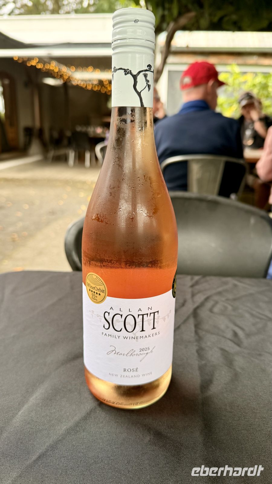Anschließend startete unsere Weinverkostung: Unser erstes Weingut war Allan Scott Wines, eines der ältesten familiengeführten Weingüter der Region. Bereits 1973 wurden hier die ersten Reben gepflanzt. Marlborough ist besonders für seinen Sauvignon Blanc bekannt. Wir verkosteten zunächst einen Sekt, gefolgt von einem Sauvignon Blanc, einem Rosé und zum Abschluss einen Pinot Noir.
