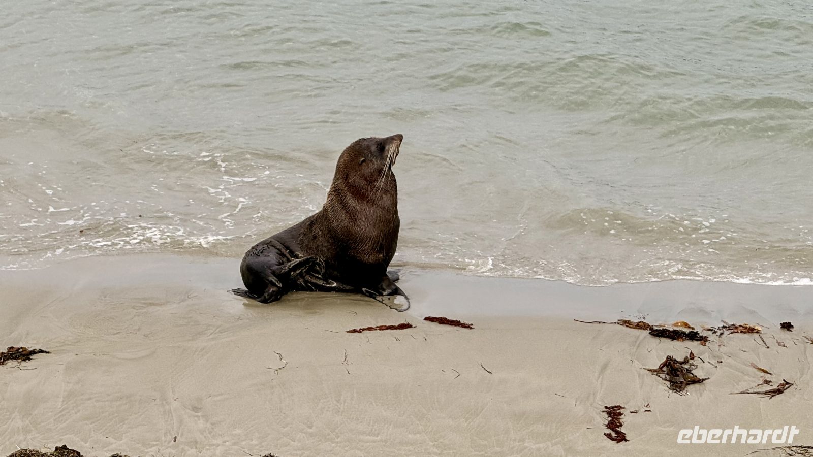 Ein kleiner Spaziergang führte uns anschließend hinunter zum Strand, wo wir von Seerobben begrüßt wurden, die sich ausruhten.
