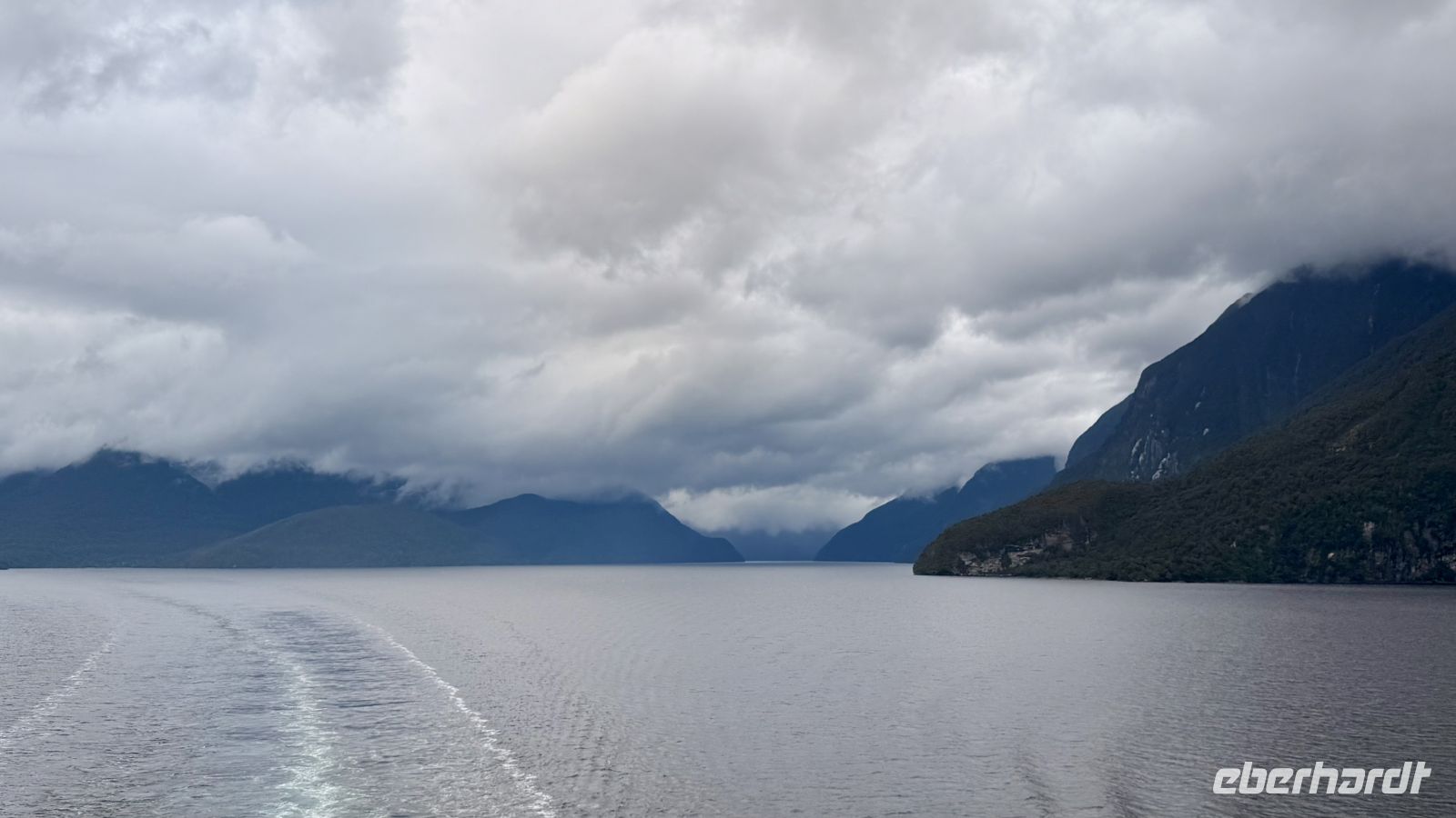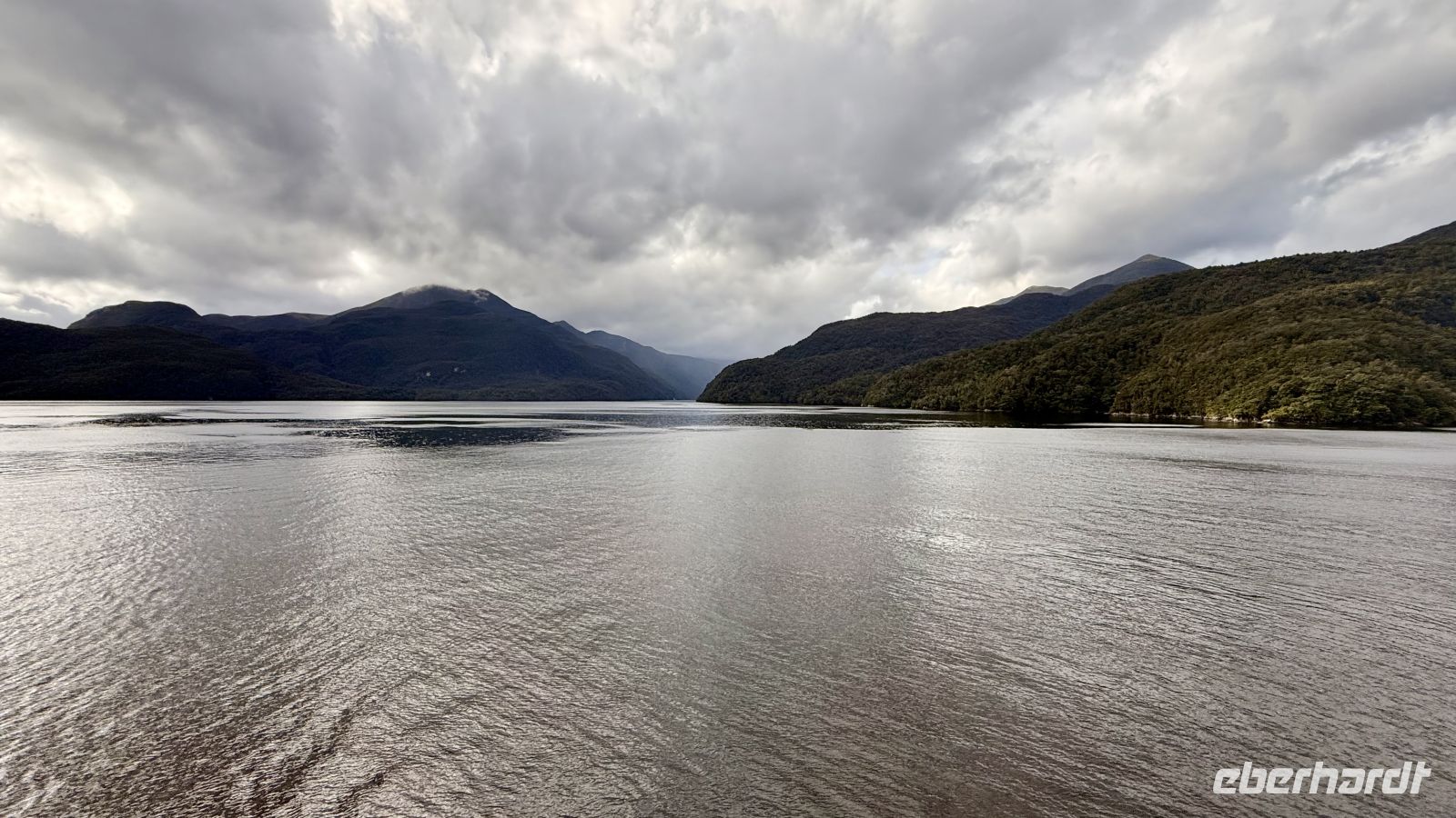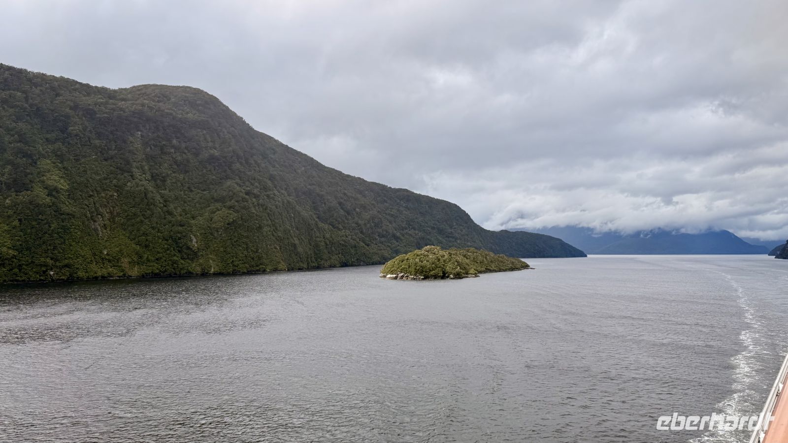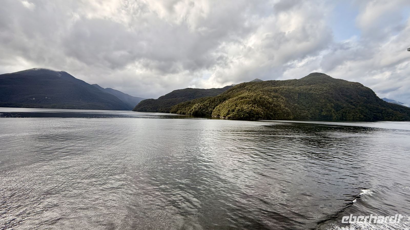 Danach passierten wir den Dusky Sound, einen der größten Fjorde im Fiordland-Nationalpark. Er besteht aus einem weit verzweigten Netzwerk von Wasserarmen und Inseln und war bereits für den Entdecker James Cook ein wichtiger Ankerplatz. Die Region ist besonders wild und unberührt und gilt als eines der ursprünglichsten Gebiete Neuseelands.