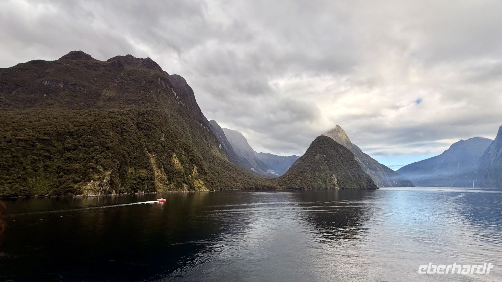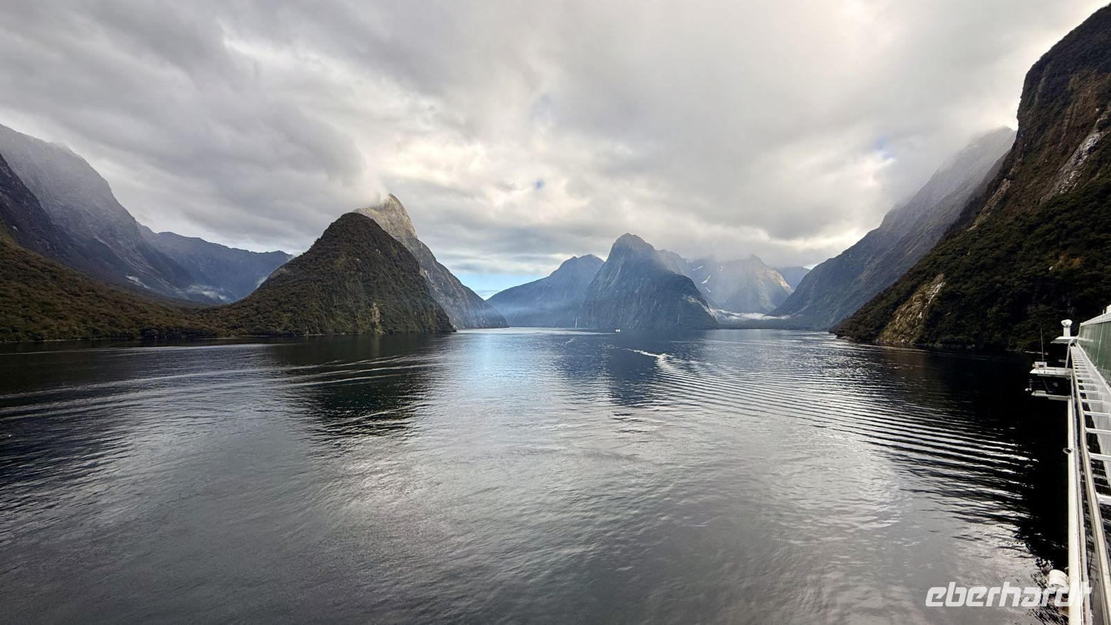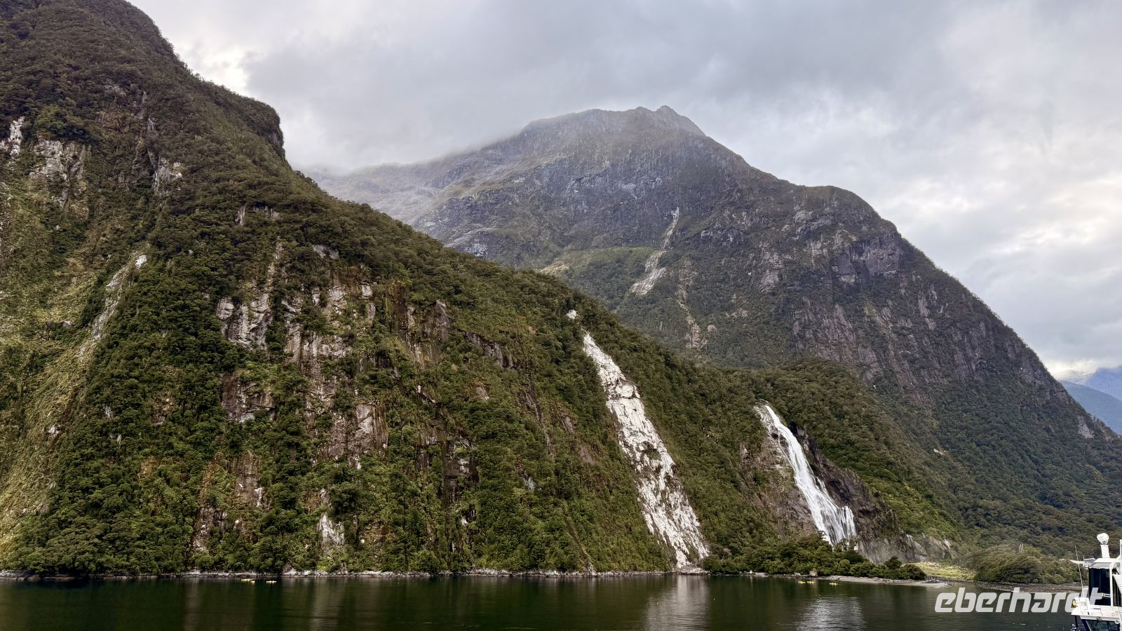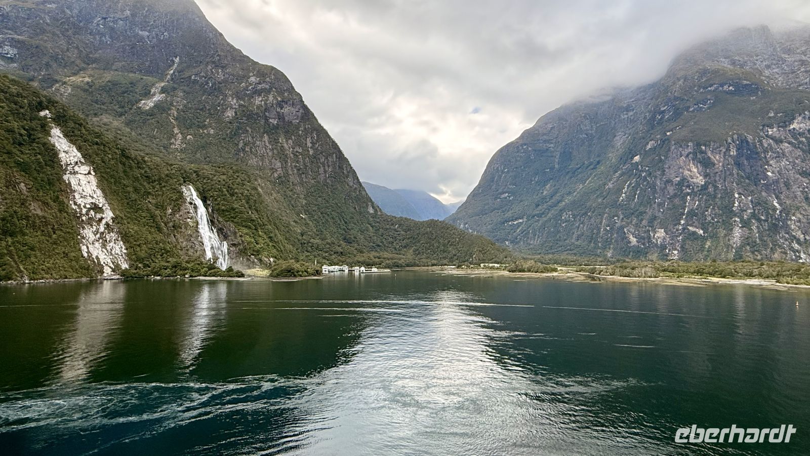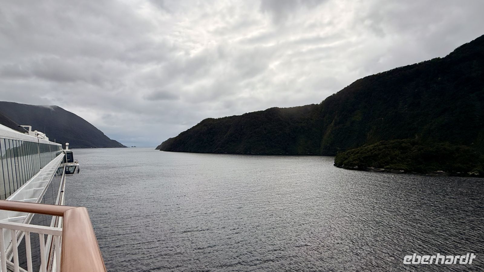 Heute war zwar auch noch einmal ein Seetag, doch es gab den ganzen Tag über viel zu sehen, denn wir durchquerten den Fiordland-Nationalpark in Neuseeland. Mit über 12.500 km² ist er der größte Nationalpark des Landes und Teil des UNESCO-Weltnaturerbes „Te Wāhipounamu“. Die beeindruckende Landschaft wurde über Millionen von Jahren durch Gletscher geformt und ist geprägt von tief eingeschnittenen Fjorden, dichten Regenwäldern und steilen Bergketten.