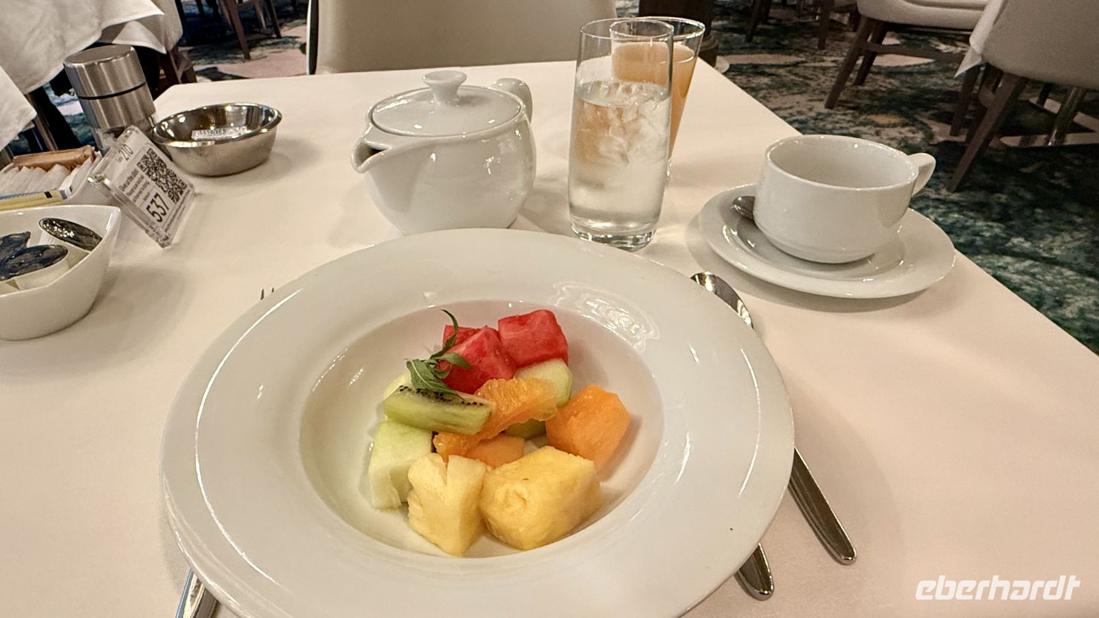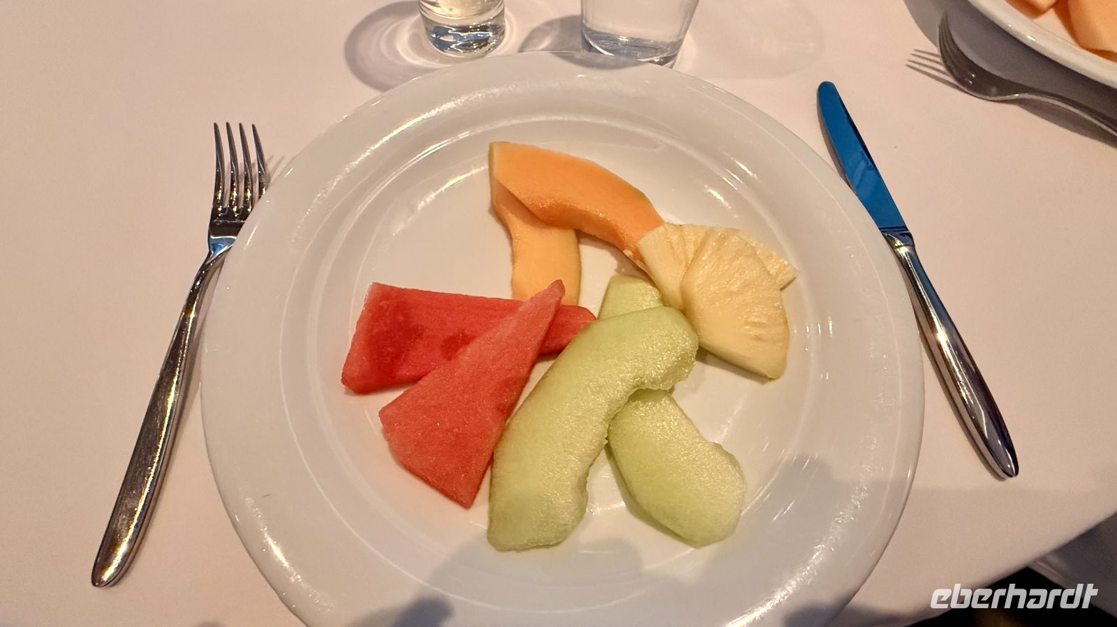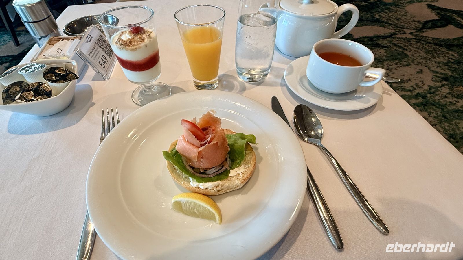 Der Morgen begann entspannt mit einem reichhaltigen Frühstück: frische Brötchen, Croissants, Obst, warme Eierspeisen, Pancakes, Müsli und Kaffeespezialitäten ließen keine Wünsche offen. Die Sonne glitzerte auf dem Meer, während viele Gäste die Decks zum Bummeln oder einfach zum Entspannen nutzten.
