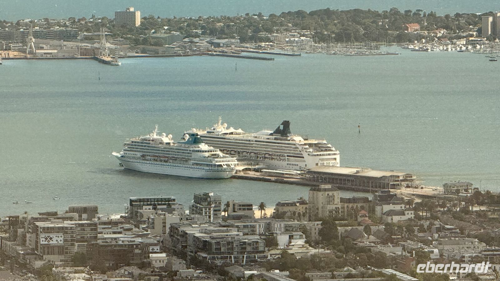 An diesem Tag hatten wir, bevor wir auf unser „fahrendes Hotel“ gingen, noch etwas freie Zeit. Ich zeigte den Gästen, die Lust hatten, noch Sydney aus der Vogelperspektive auf dem Sydney Tower.