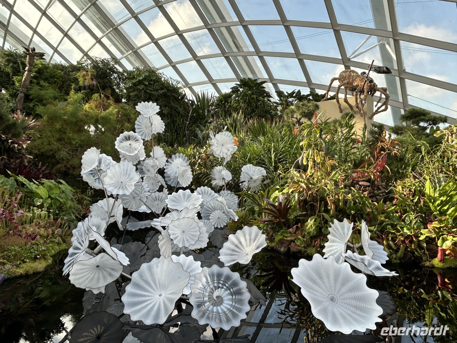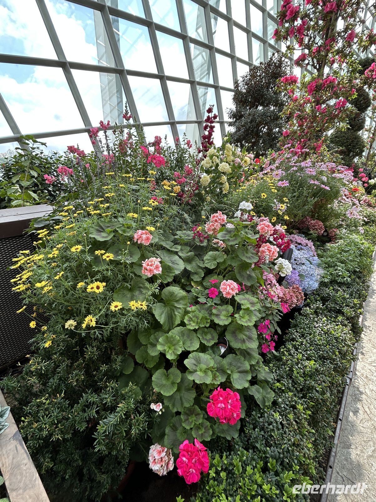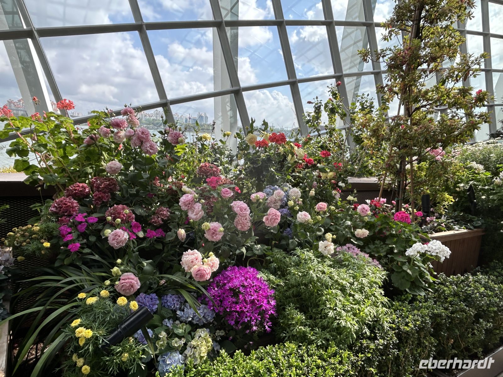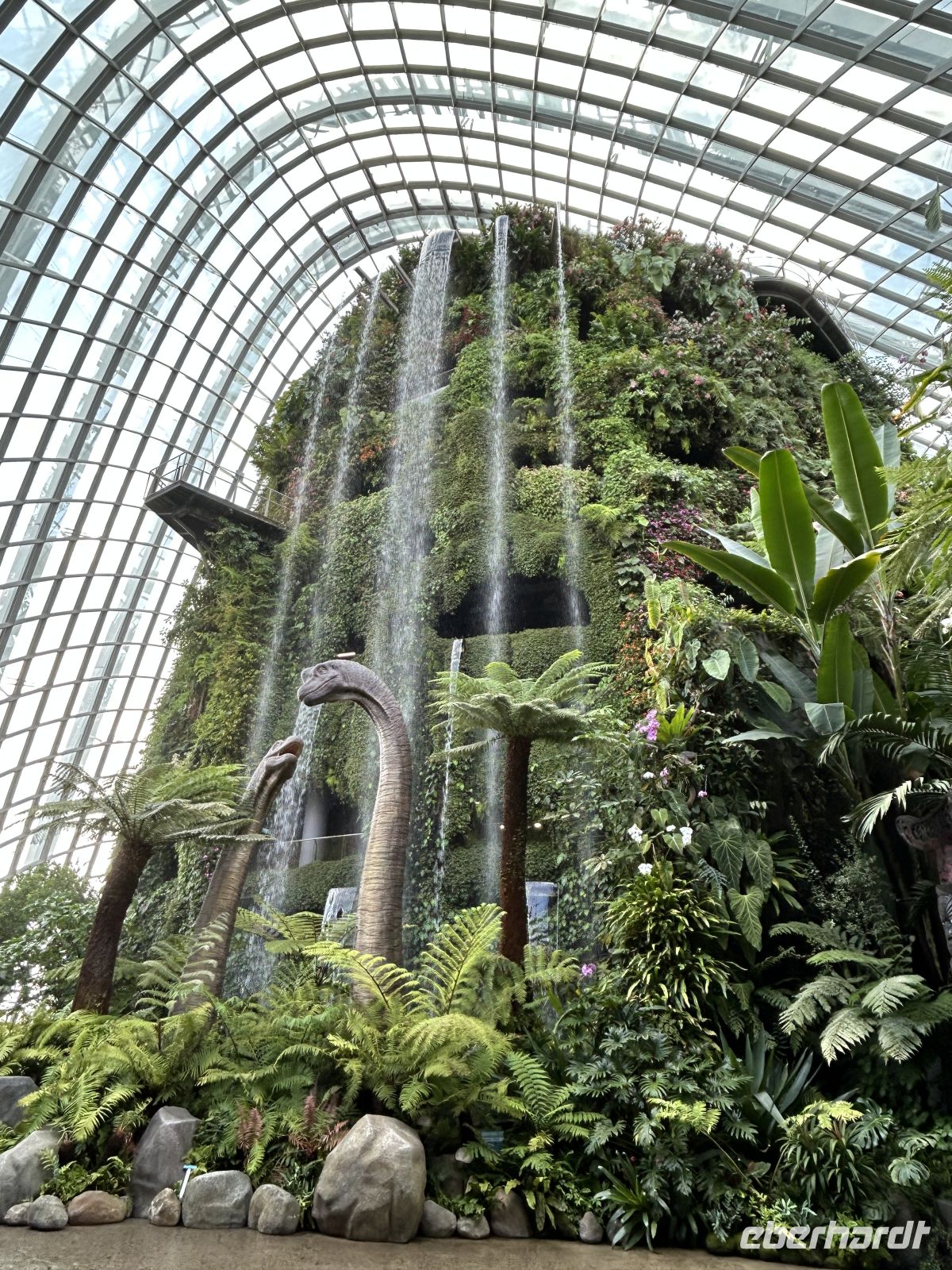 Guten Morgen aus Singapur. Nach einer doch erholsamen Nacht starten wir den ganz entspannt mit einem guten Frühstück in den Tag. Den Vormittag haben wir zur freien Verfügung. Mit dem größten Teil der Gruppe machen wir uns wieder auf zu den Gardens by the Bay ,diesmal schauen wir uns die riesigen Gewächshäuser an zum einen den Cloud Forest, wo derzeit eine Sonderausstellung von Jurassic Park gezeigt wird. Hauptattraktion ist hier jedoch der Indoor-Wasserfall und die einzigartige Pflanzenwelt die sich auf einem 7-stöckigen Pfad entlang schlängelt. Der Flower Dome, wie der Name schon sagt ist ein großes Gewächshaus mit Pflanzen und Blumen aus ganzer Welt. Auch hier ist derzeit eine Sonderausstellung mit dem Thema „Sakura“ sprich, die japanische Kirschblüte. Es ist sagenhaft! Zurück im Hotel packen wir unsere Sachen und begeben uns mit unserem Reiseleiter Achim auf Erkundungstour durch Singapur. Erster Ziel ist die Aussichtsplattform auf dem bekannten Marina Bay Sands Hotel. Mit dem Fahrstuhl fahren wir schnell wie der Wind in die 56. Etage des Hotels und haben eine wahnsinnige Tolle Aussicht auf das riesige Finanzviertel Singapurs, einen Teil der Formel 1 Rennstrecke und sogar bis nach Malaysia konnten wir schauen. Man kann sagen was man möchte, Singapur ist einfach schlichtweg beeindruckend. Weiter geht es zum, Buddha Tooth Relic Temple der und mit einem traditionellen buddhistischen Gebet
