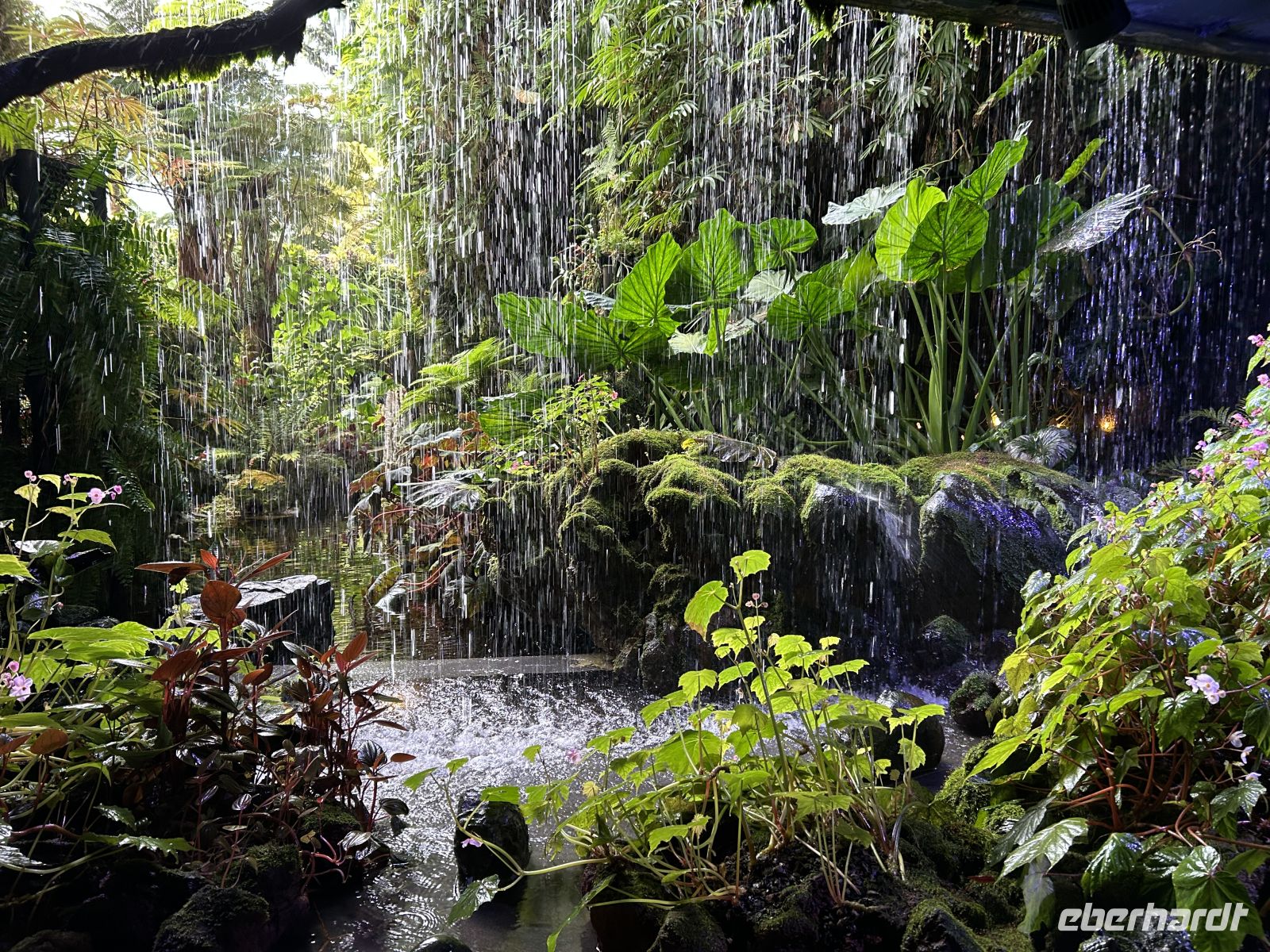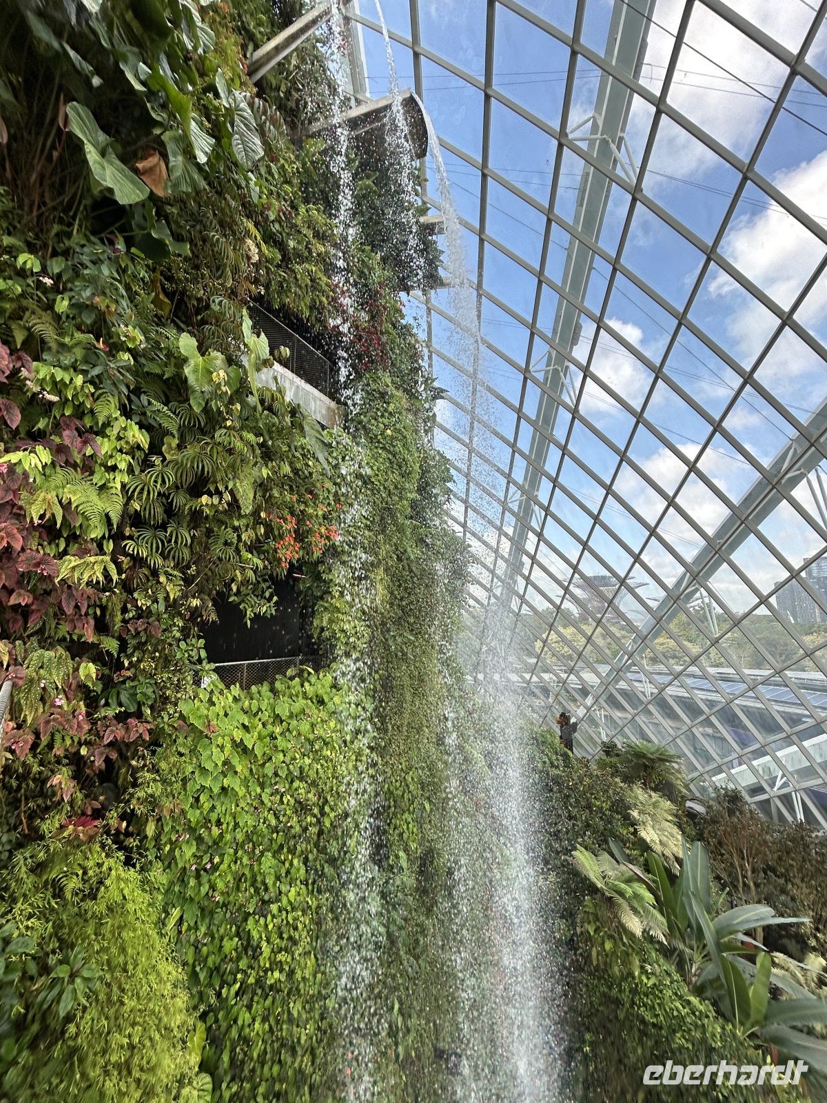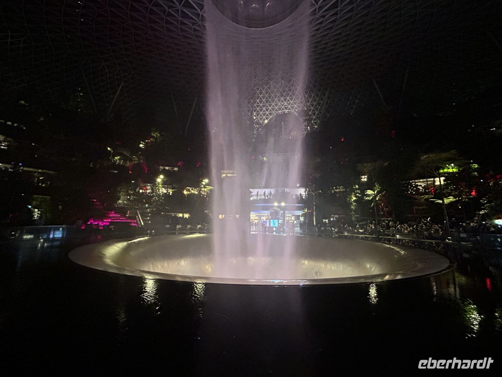 gegrüßt. Nächster Stopp ist das arabische Viertel und zu guter letzt schauen wir uns den berühmten Orchideengarten mit all seiner Vielfalt und Pflanzenreichtum an. Ganz überwältigt von der eindrucksreichen Stadt machen wir uns auf de Weg zum Flughafen,wo wir unsere Reise fortsetzen zu unserem eigentlichen Hauptziel. Der Tag war gespickt mit einer Attraktion nach der anderen aber ein Highlight steht noch wie, der berühmte Wasserfall im Flughafen Changi. Den müssen wir uns natürlich auch noch anschauen. Mit dem Skytrain fahren wir innerhalb von 2 Minuten von Terminal 3 zum Terminal 1 wo wir schon bereits aus der Ferne das Rauschen vom Wasserfall vernehmen. Was soll man sagen außer: sagenhaft! Wir passieren die Sicherheitskontrolle, nehmen unsere Sitze im Flieger ein und lassen uns durch die Nacht nach Auckland. chauffieren.