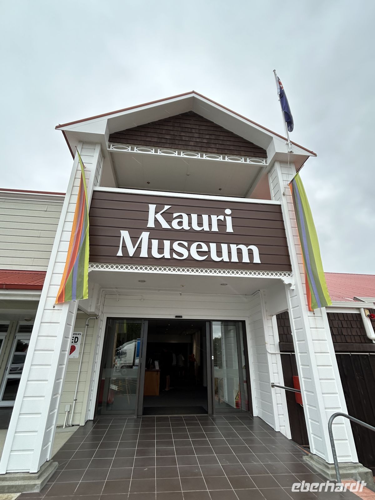 Das erste Ziel haben wir erreicht, das Kauri Museum in Matakohe in der neuseeländischen Region Northland. Es widmet sich dem Kauri-Baum und dem von ihm stammenden fossilen Kauri-Harz sowie der Pionierzeit Neuseelands.