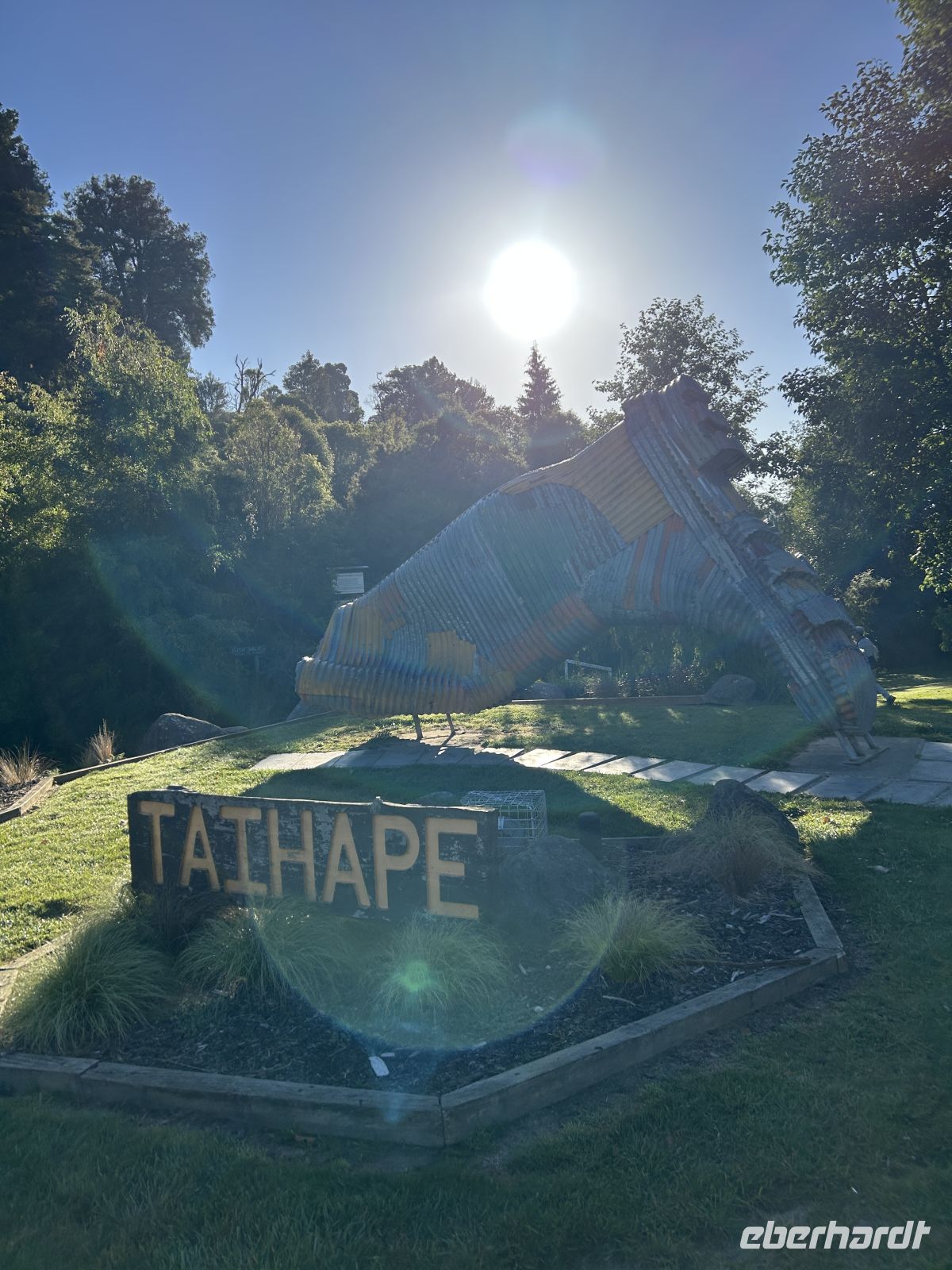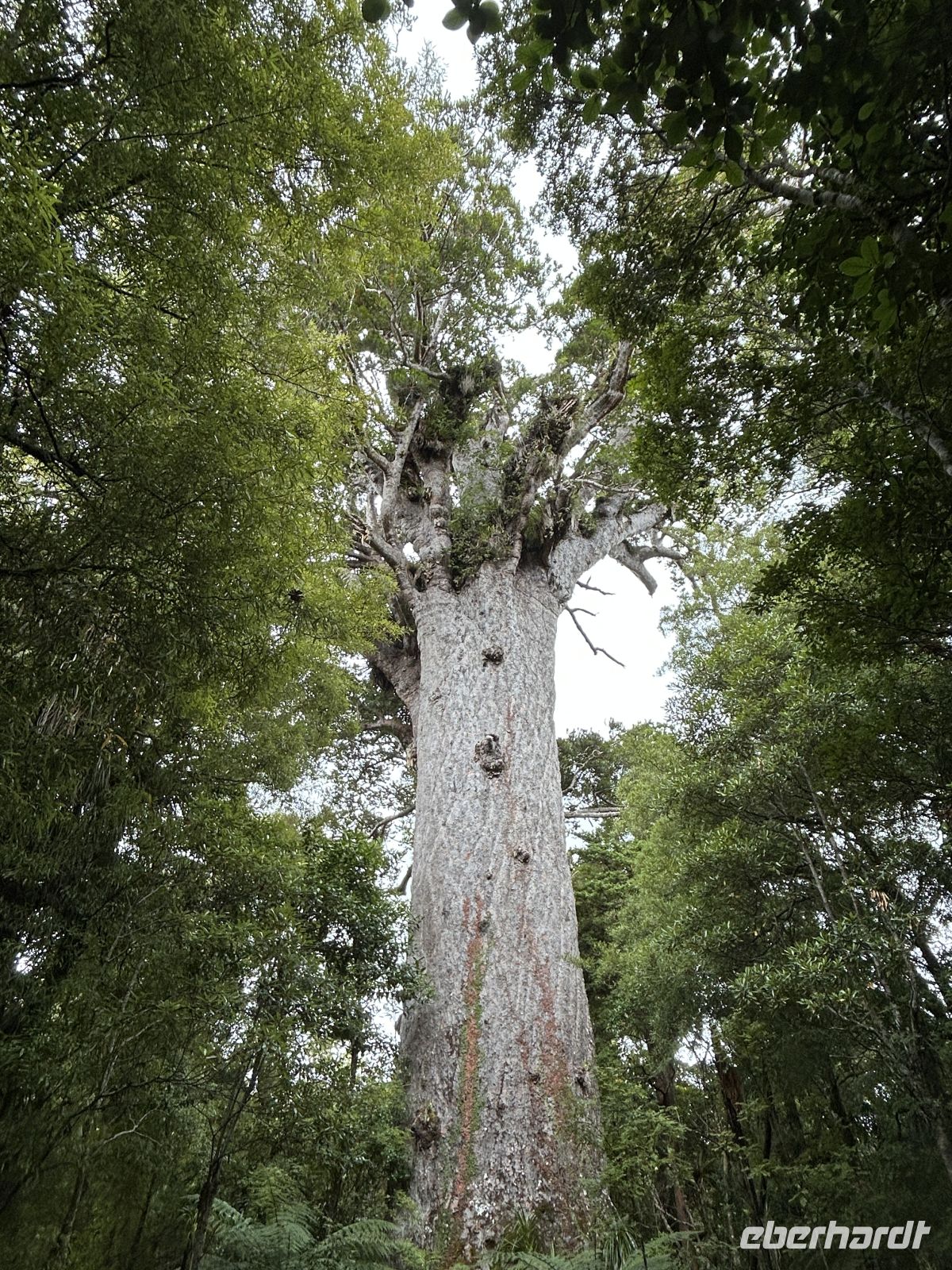 Gleich zu Beginn überzeugt uns das Kauri Museum mit einem Querschnitt der weltweit größten Kauri - Platte der Welt. Sagenhafte 22,5 Meter ist diese lang. Kaum zu glauben aber wahr. Das Holz selbst hat eine braun-rötliche Färbung. Bei geschliffenem und behandeltem Holz kann die Oberfläche abhängig vom Lichteinfall teilweise goldfarben schimmern. Früher wurde das Holz vorwiegend zum Bootsbau verwendet. Heutzutage wird es vor allem zum Möbelbau genutzt. Kauri-Bäume sind für die Maori sowohl ökologisch und spirituell seht bedeutsam. Ihre Gesundheit gilt als Zeichen für das Wohlergehen des Waldes (Maorisprache: Ngahere ) und der Menschen. In diesem Sinne machen wir uns über eine sehr kurvenreiche Straße zum Tane Mahota, dem größten Kauribaum der Welt. Am Eingang des Tane Mahuta Nationalparks müssen wir alle zunächst unsere Schuhe desinfizieren, um den Artenschutz nicht zu gefährden. Auf einem Holzsteg werden wir zu DEM Kauri Baum schlechthin geführt. Auf einmal ist alles ruhig und wir kommen aus dem Staunen nicht mehr raus. Da steht er, ein riesiger Koloss von Baum mit sagenhaften 51,2 Meter Höhe und gigantischen 13,77 Meter Umfang. Aus unserer Perspektive ist es gar nicht so einfach den Wipfel des Baumes zu erspähen. Selbst die Sonne muss sich Ihren Weg bahnen, um durch die üppig gewachsene Baumkrone zu kommen. Sprachlos führen wir unsere Weiterfahrt fort. Ein besonderes Highlight während der Fahrt ist der Stopp am Pakia Hill Aussichtspunkt. Bei strahlendem Sonnenschein erhaschen wir einen atemberaubenden Panaoramablick auf die Tasmanische See. Durch das strahlende Sonnenlicht erscheint die See in einem wundervollen türkisen Blau. Ein Postkartenmotiv schlecht hin.