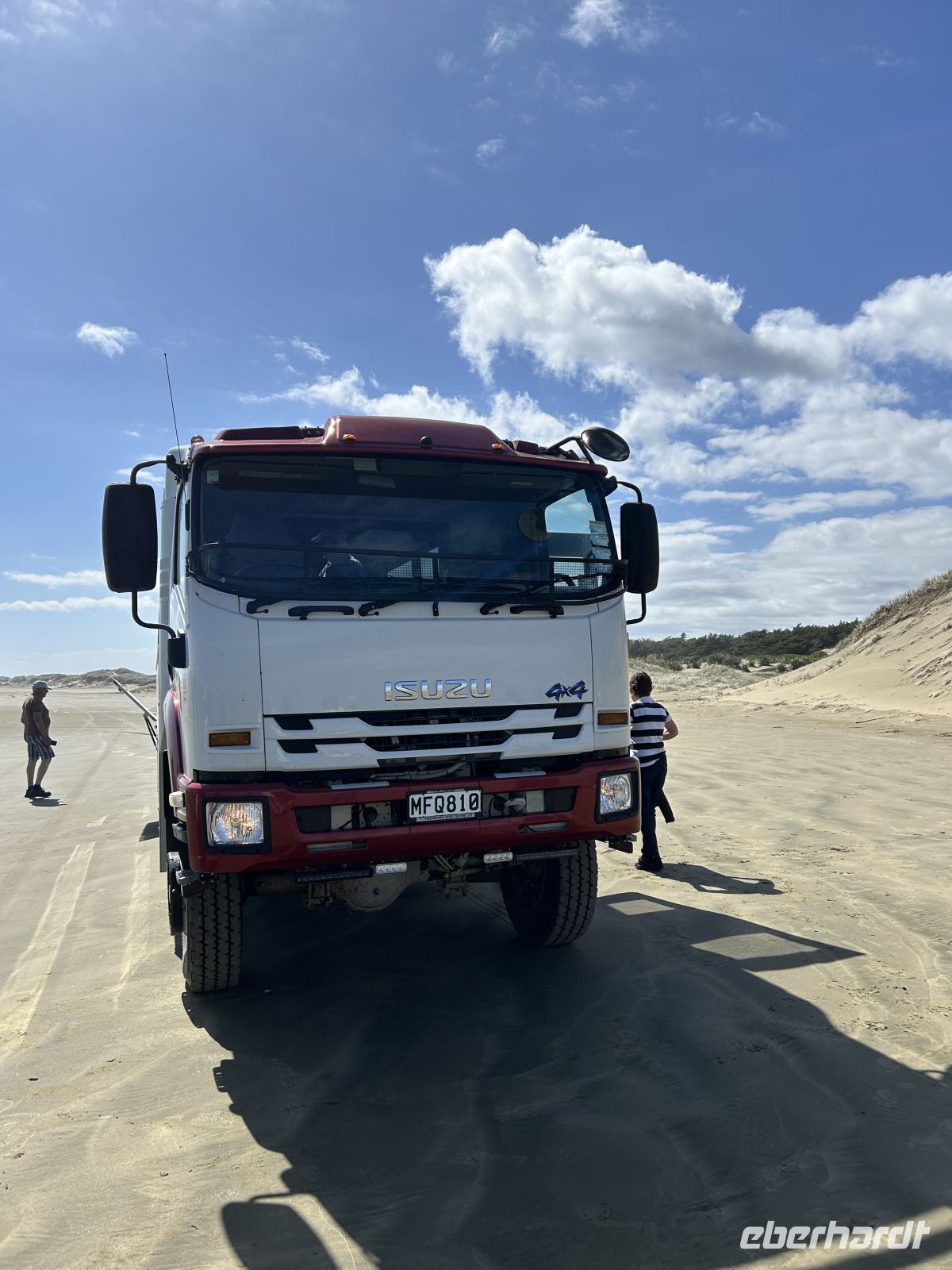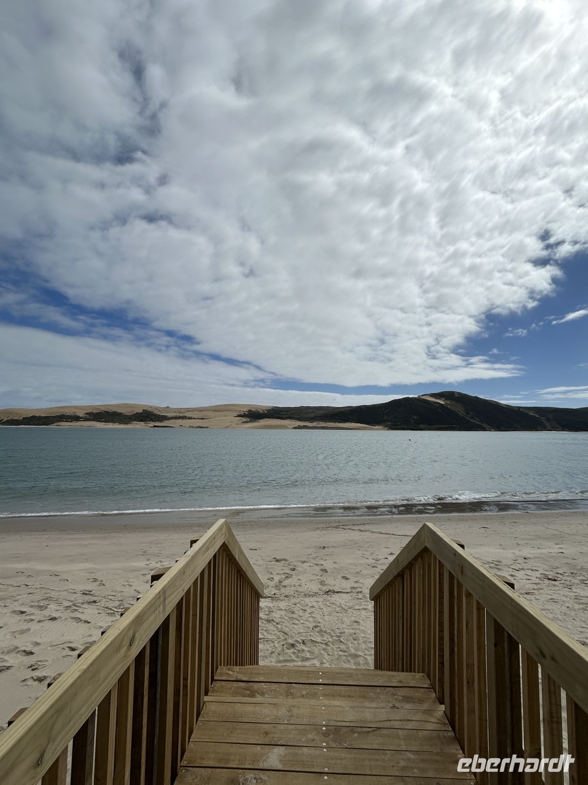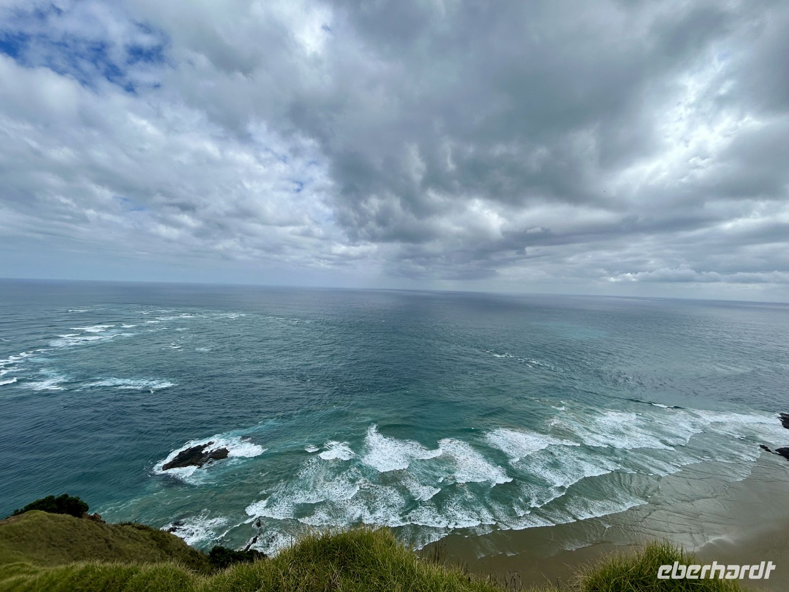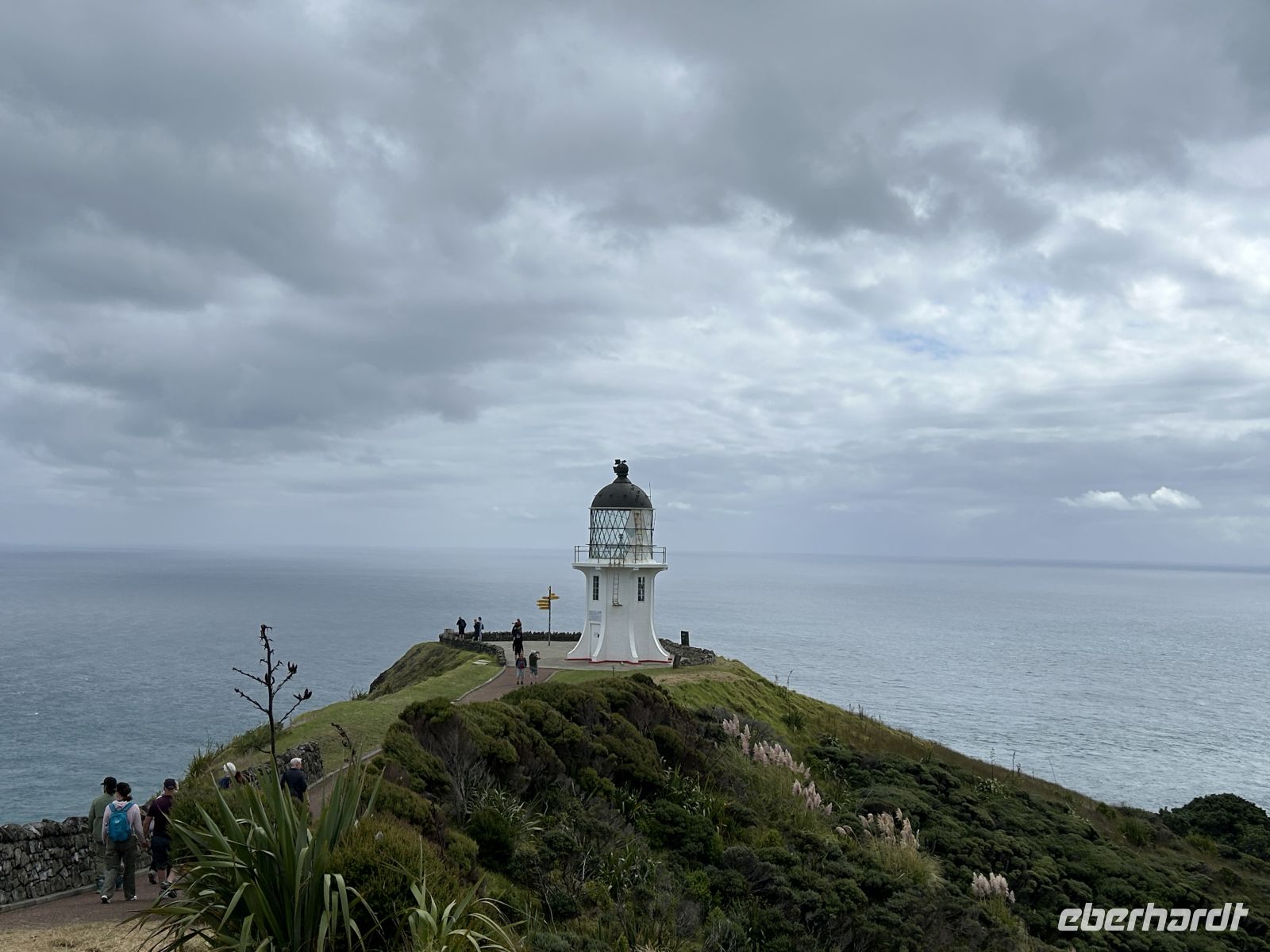 Wir haben für heute einen Ganztagesausflug zum berühmten Cape Reinga geplant. Unser heutiger Driverguide George sammelt uns pünktlich vor unserer Unterkunft ein. Schließlich fahren wir ungefähr 250 Kilometer hinauf in den Norden der Nordinsel um das heutige Highlight das Cape Reinga zu besichtigen. Während der langen Fahrt unterhält uns George mit unterhaltsamen Anekdoten und allerlei Informationen zu Land und Leute. Einen kleinen Stopp legen wir in einem Café ein, um uns die Beine zu vertreten und um den Bus zu tauschen, da wir mit dem jetzigen nicht auf dem Ninty Mile Beach fahren können. Nachdem alle Passagiere wieder angeschnallt im Bus sitzen, setzen wir uns Fahrt bei Sonnenschein und ein paar Wölkchen zum Cape Reinga fort. Gemeinsam spazieren wir den Pfad zu dem Hauptziel des Tages. Das Cape Reinga ist die nordwestlichste Spitze der Aupouri-Halbinsel, am nördlichen Ende der Nordinsel Neuseelands. In der Maori Sprache bedeutet „Te Rerenga Wairua“ der abstoßende Ort der Geister. „Reinga“ ist das Maori-Wort für Unterwelt. Dem Glauben der Maori nach ist dies der Ort, wo sich die Geister der Verstorbenen in die Unterwelt eintreten. Am Wahrzeichen, dem Leuchtturm angekommen genießen wir die herrliche Luft und die einmalige Aussicht wie das Tasmanische Meer mit dem Pazifik zusammenstößt. Ein wahres Farbenspiel was sich uns hier bietet. Nach unserer Mittagspause fahren wir zu dem Ninty Mile Beach und genießen die zarte Meeresbrise die uns ins Gesicht wedelt. Ein toller Abschluss des heutigen Ausflugs. Den Abend verbringen wir am Pier bei Charlottes und lassen den langen Tag gemeinsam ausklingen.