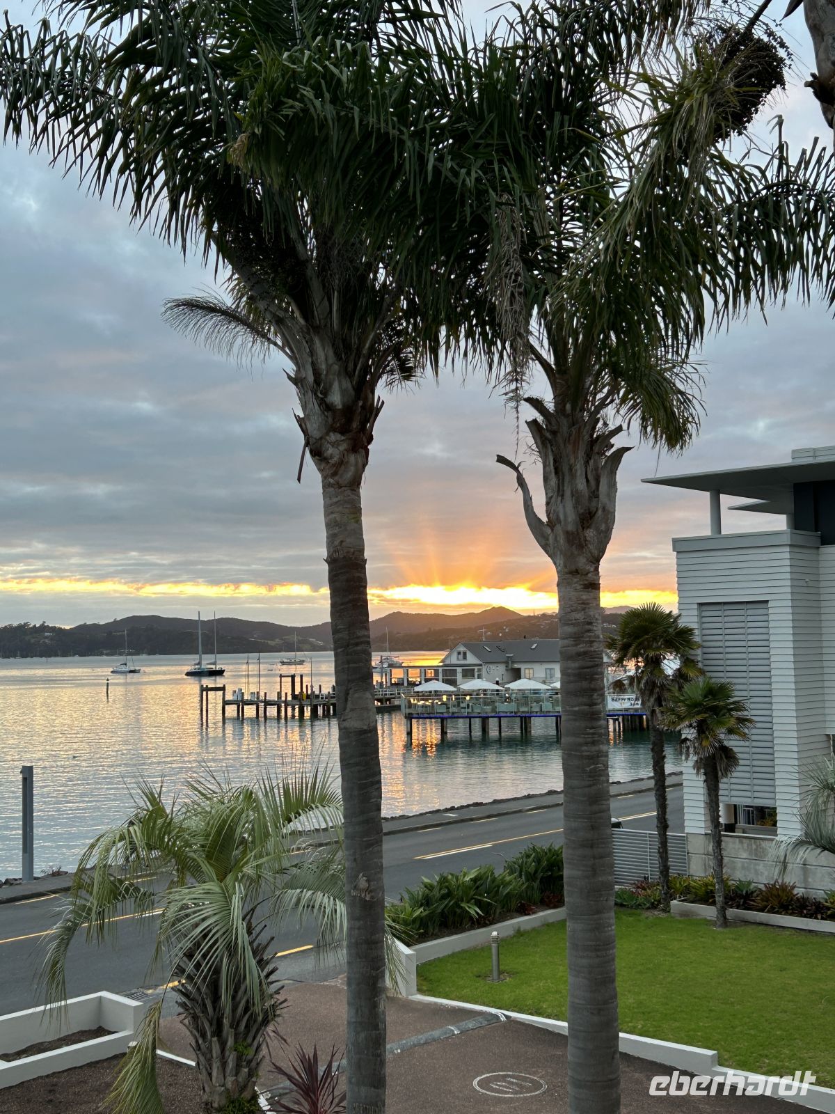 Weiter geht unsere lange Fahrt und schließlich kommen wir in dem beschaulichen Küstenörtchen Paihia an. Einen kurzen Zwischenstopp legen wir noch an Haruru Wasserfällen und knipsen was das Zeug hält. Wir beziehen unsere Zimmer und nutzen die freie Zeit für eine kleine Erkundungstour den kleinen Ort. Den Abend lassen wir gemeinsam als Gruppe ausklingen.