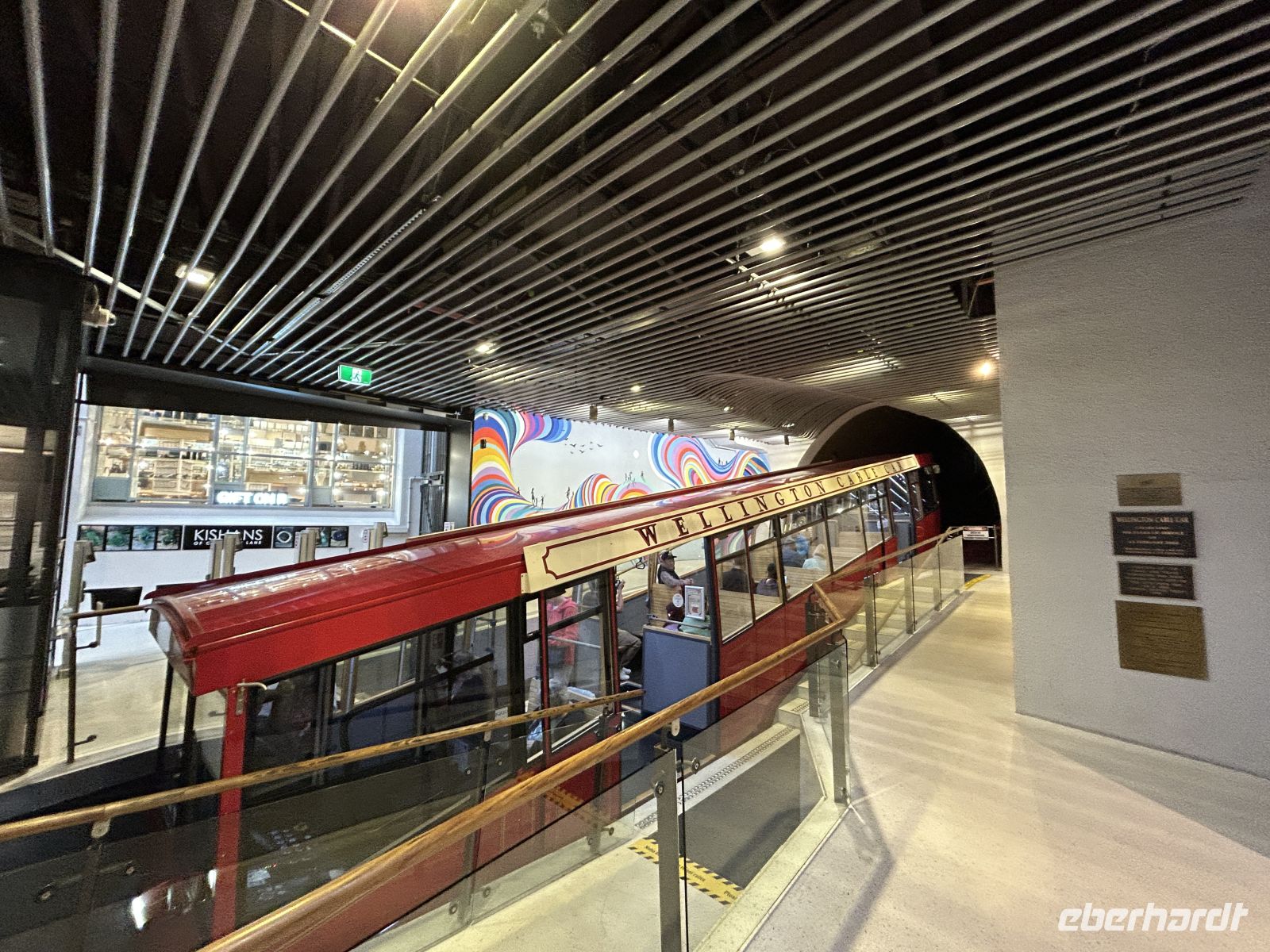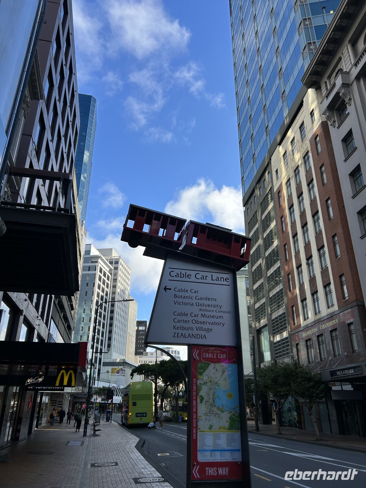 Wellington begrüßt uns heute an unserem Freizeittag mit einem Wolkenbehangenem Himmel. Laut Wetterbericht, soll es aber noch aufklaren. Den Tag nutzen wir um ein paar Stündchen Schlaf der vergangenen Tag nachzuholen. Nach einem ausgiebigen Frühstück verabreden wir uns im 09:00 Uhr in der Lobby um einen Spaziergang durch die Stadt zu wagen. Als erstes zieht es uns zu der Wellington Cable Car, dem Wahrzeichen der Stadt. Die Standseilbahn ist eine meterspurige Bahn und verbindet über eine Strecke von 610 Metern den 120 Meter höher gelegenen Stadteil Kellburn mit der Hauptgeschäftsstraße Lambton Quay.