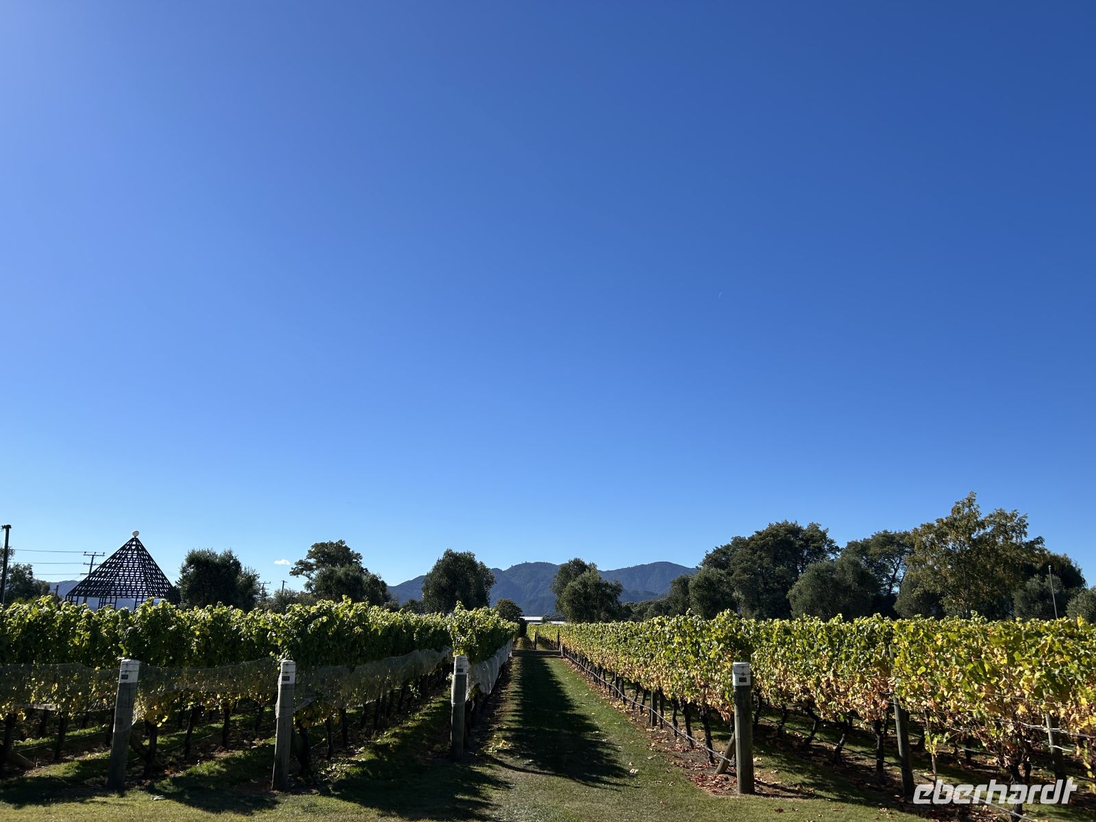 Bereits vor dem Frühstück verstauen wir unsere Koffer im Bus damit wir ganz in Ruhe zum Frühstück können. Gut gestärkt machen wir uns auf zum Fähranleger der Interislandferry. Dieses gigantische Gefährt chauffiert uns innerhalb 3 1/2 Stunden in das kleine Hafenstädtchen Picton. Die Fahrt verläuft ruhig, dank der Spiegelglatten See und so können wir die traumhafte Aussicht auf die Fjordlandschaft genießen. Sogar ein paar Delfine begleiten uns währenddessen wir über das Meer gleiten. In Picton angekommen fahren wir zunächst zum Fahrradverleih zu „Wine Tours by Bike“ Einige aus der Gruppe dürfen per Fahrrad durch die Weinregion fahren und natürlich auch ein paar Weine verkosten. Das Wetter ist auf heute wieder auf unserer Seite, denn bei Sonnenschein radelt es sich noch besser. Geführt werden wir durch Fahrradguide Greg der uns zunächst zu dem Weingut Framingham begleitet. Hier dürfen wir 5 erlesene Weine probieren über Pinot Gris, klassichen Riesling und Chardonnay ist alles dabei was das Herz begehrt. Nach einer Stunde holt uns Guide Greg ab und wir fahren die riesigen Weinanbaugebiete die Malborough zu bieten hat. Es ist ein beeindruckendes Bild was sich uns bietet.. Weinreben und im Hintergrund ein riesiges Gebirge und dazu blauer Himmel. Ein Postkartenmotiv schlechthin. Unseren nächsten Halt machen wir bei Julie und Howard im Weingut Gibson Bridge. Seit über 15 Jahren sind die beiden schon im Geschäft und sind hauptsächlich für den Anbau von Pinot Gris bekannt. Ein besonderes Merkmal deren Weine ist, dass die Weine keinen Zucker zugesetzt bekommen. Man hat hier wirklich nur den Geschmack der reinen Früchte und das schmeckt man auch ganz klar raus. Wir dürfen 7 Weine probieren und sind hellauf begeistert. Klarer, fruchtiger Geschmack umschmeichelt unsere Münder. Nach de Verkostung machen wir uns wieder auf zum Fahrradverleih und stoßen zu dem Rest der Gruppe und unserer Reisleiterin Gisela dazu. Gemeinsam machen wir uns auf zu unserer heutigen Unterkunft. Den Abend verbringen wir gemeinsame im Smugglers Pub der nur 2 Minuten vom Hotel entfernt ist.
