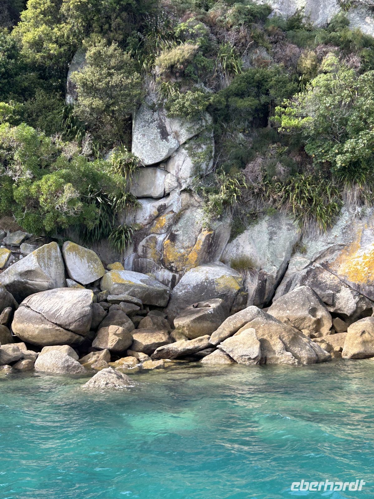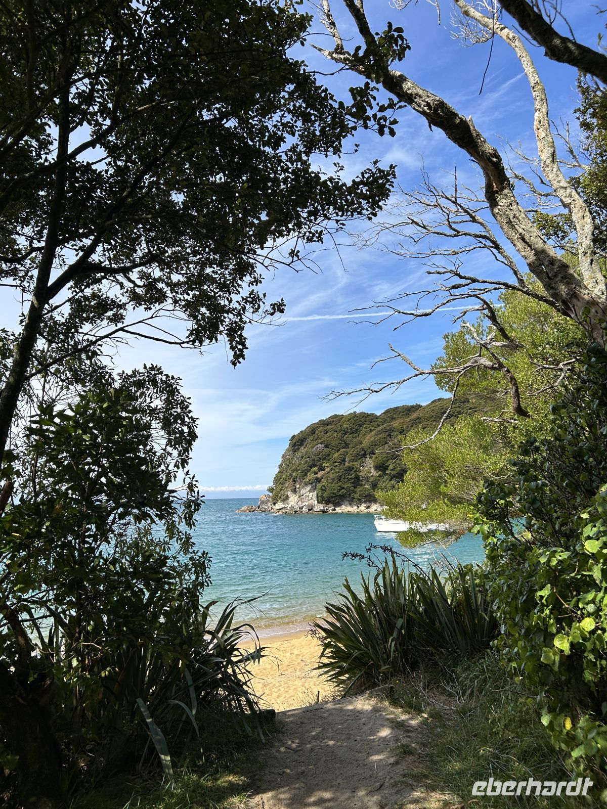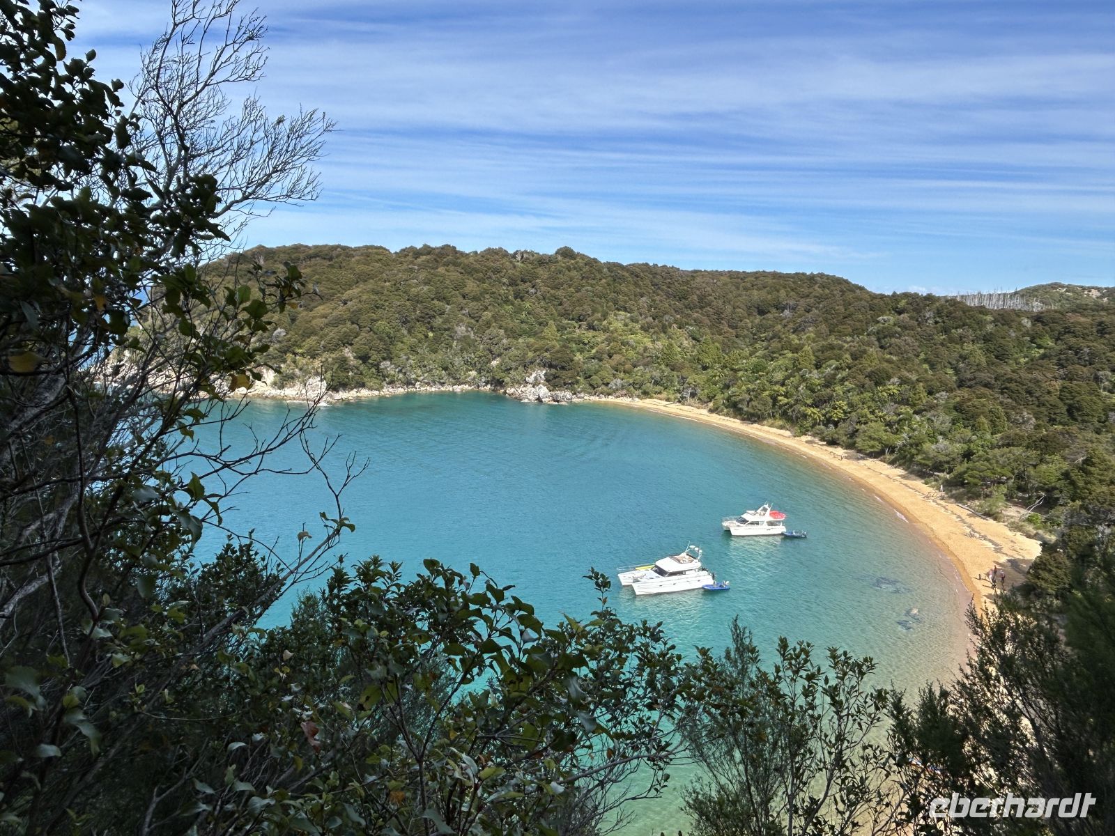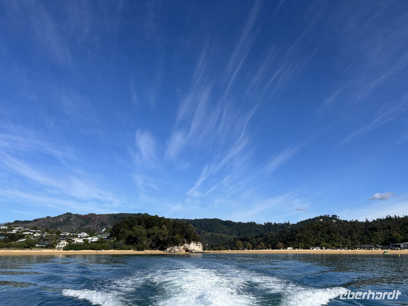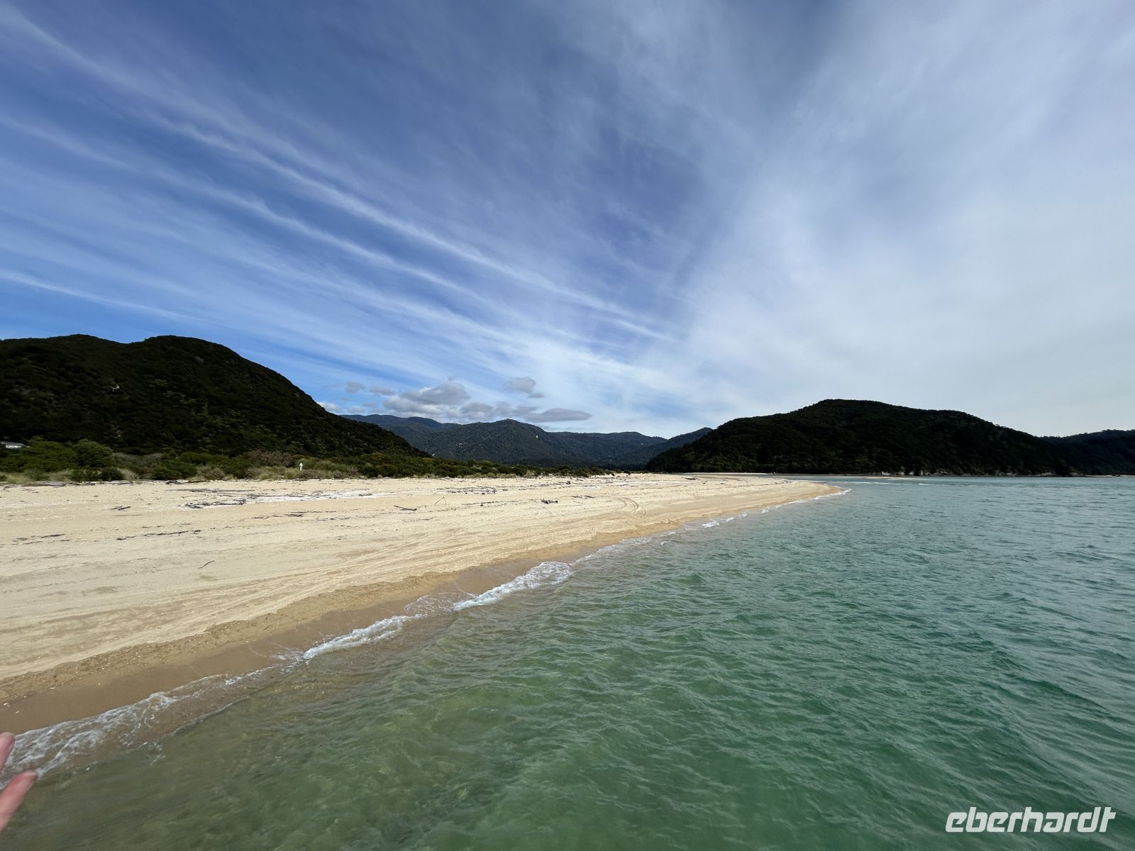 Man sagt so schön, man war nie richtig in Neuseeland, wenn man nicht im Abel Tasman Nationalpark war. Genau das haben wir heute vor. Unsere Reiseleiterin Gisela chauffiert uns nach Kaiteriteri dem Tor zum Abel Tasman Nationalpark. Mit dem Katatmaran „Vista“ begeben wir uns auf Erkundungstour entlang der endlosen Küstenlandschaft mit üppig grünen Wäldern und strahlenblauen Meer. Zunächst fahren wir von Kaireriteri einmal komplett rauf bis nach Totaranui um einen Eindruck über die beeindruckende Größe des Nationalparks zubekommen. Auf dem Weg zurück steigen wir in Anchorage aus um uns auf einen kleinen Wanderung die Füße zu vertreten. Gemeinsam mit unserem Nationalpark Guide Lexi machen wir uns auf zu dem schönsten Aussichtsplattformen die der Küstenweg zu bieten hat. Besonders hervor sticht der der goldglänzende Sandstrand. Der seine Farbe durch oxidierenden Granit erreicht hat. Die Farbplatte die der Nationalpark zu bietet hat ist einzigartig. Tiefgrüne Wälder, türkisblaues Meer und der einzigartige gelbe Sandstrand laden ein noch weiter zu wandern. Insgesamt 4 Kilometer legen wir zurück bevor wir wieder auf den Katamaran steigen der und zurück nach Kaiteritero bringt. Während der Fahrt wird einem wieder einmal bewusst wie schön die Welt sein kann und das wir uns aktuell tatsächlich in Neuseeland befinden. Den Abend lassen wir bei köstlichen Essen und netten Gesprächen ausklingen.