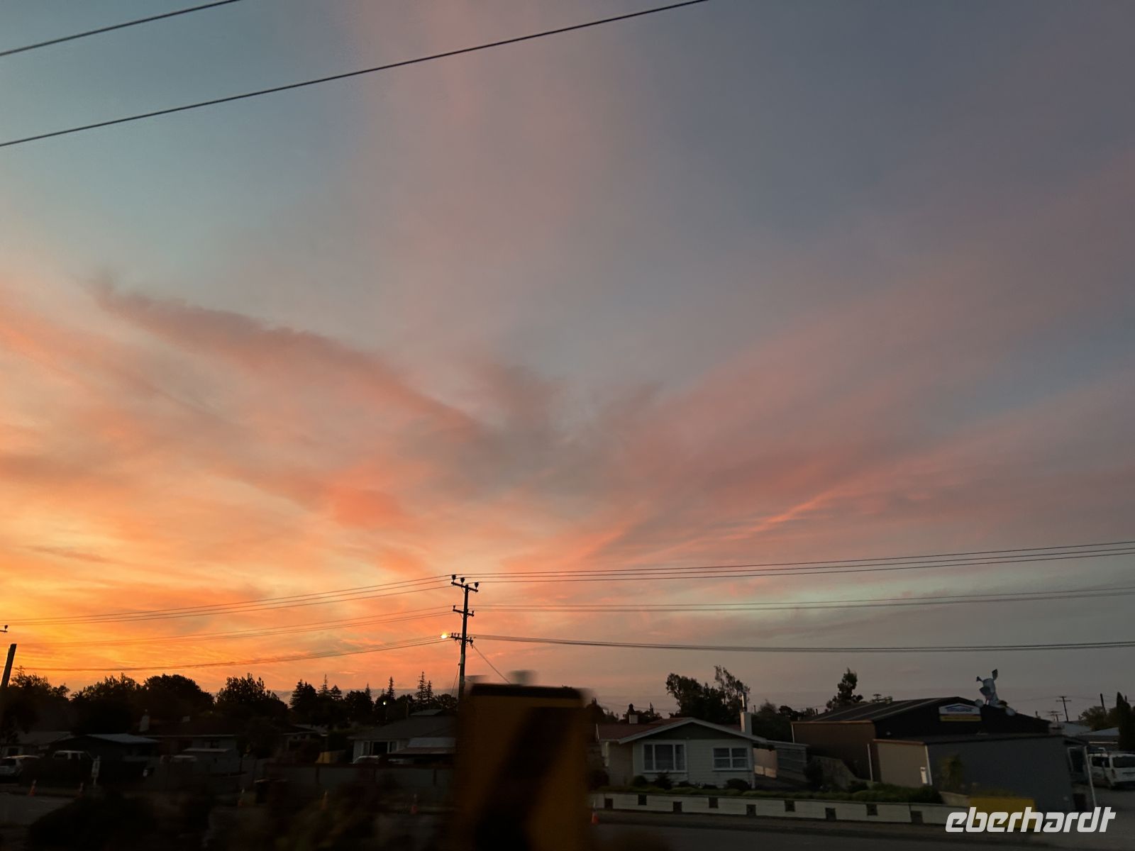 Das reichhaltige Frühstücksbuffet wird heute besonders schön umrahmt, nämlich durch einen wundervollen Sonnenaufgang.