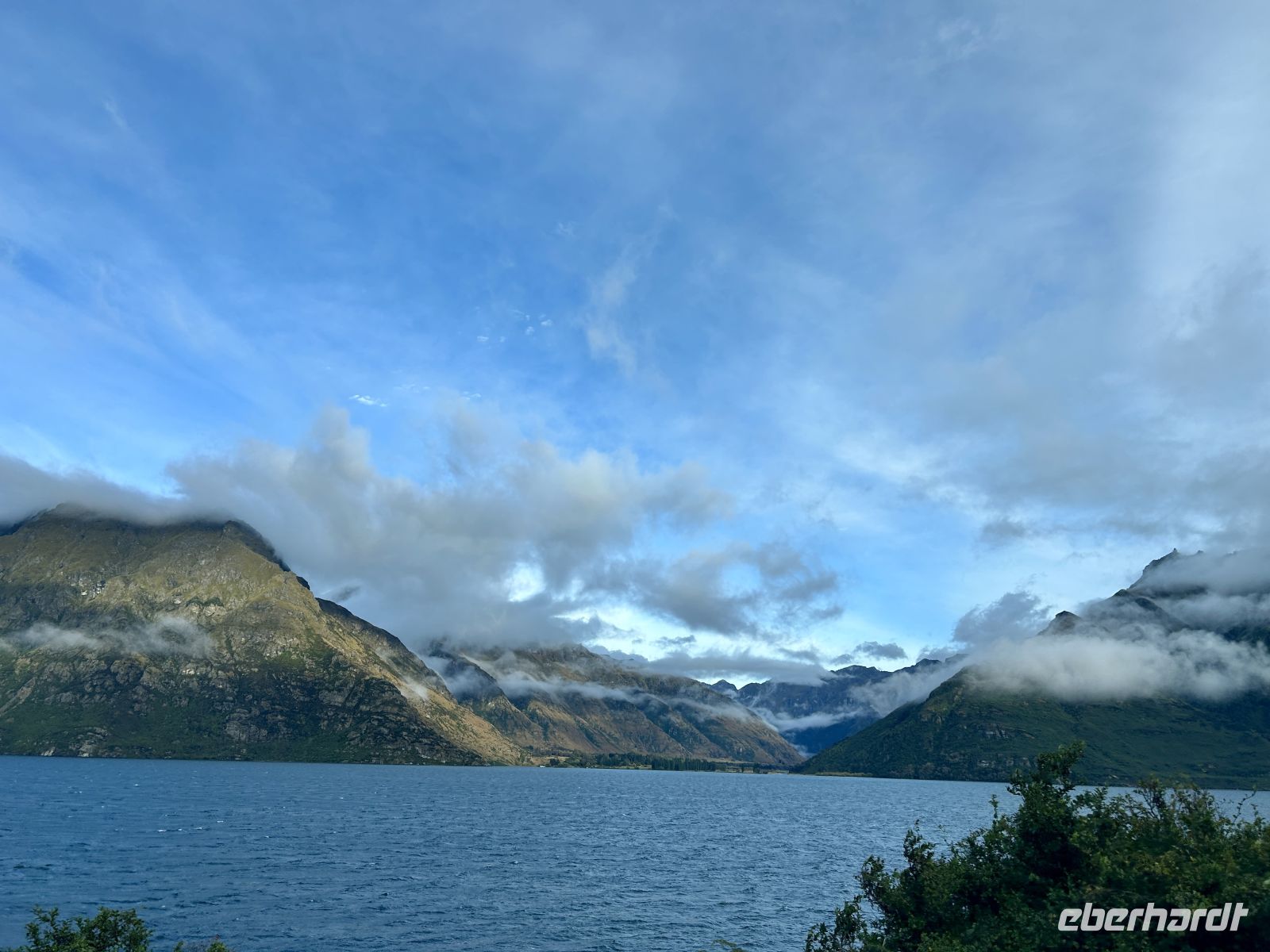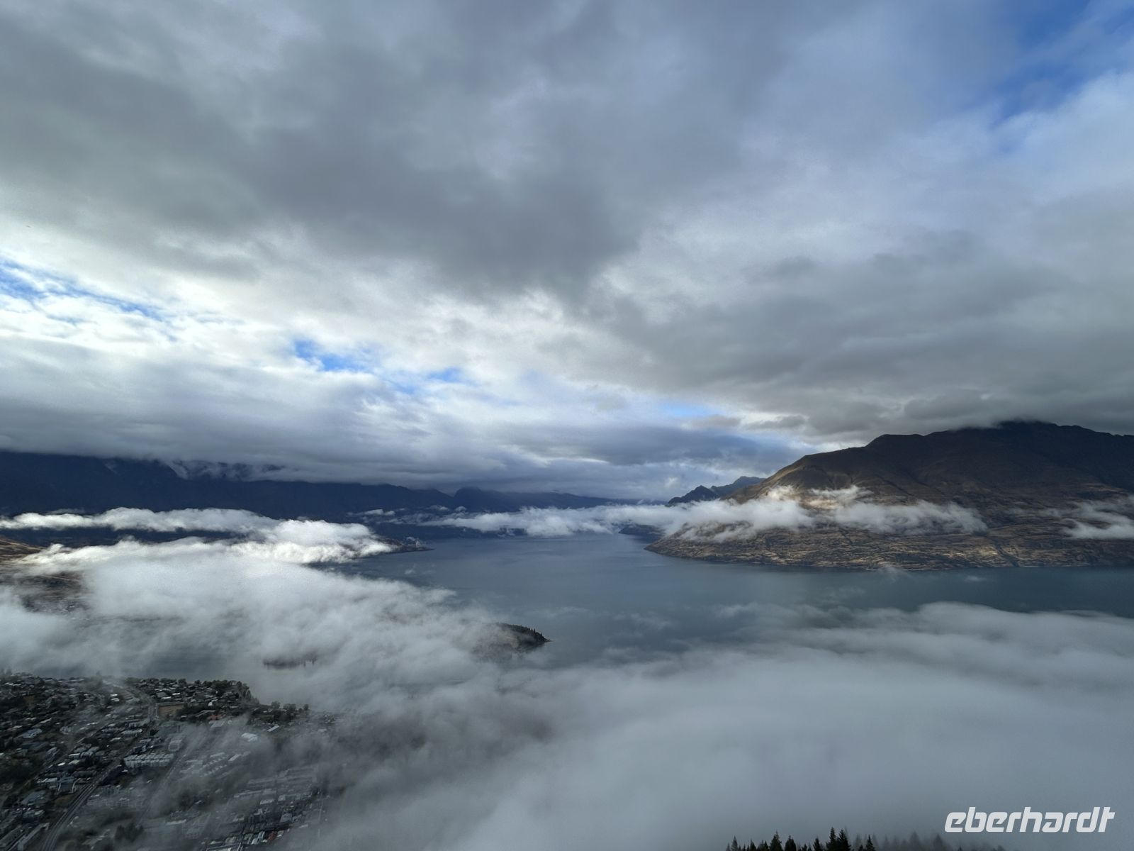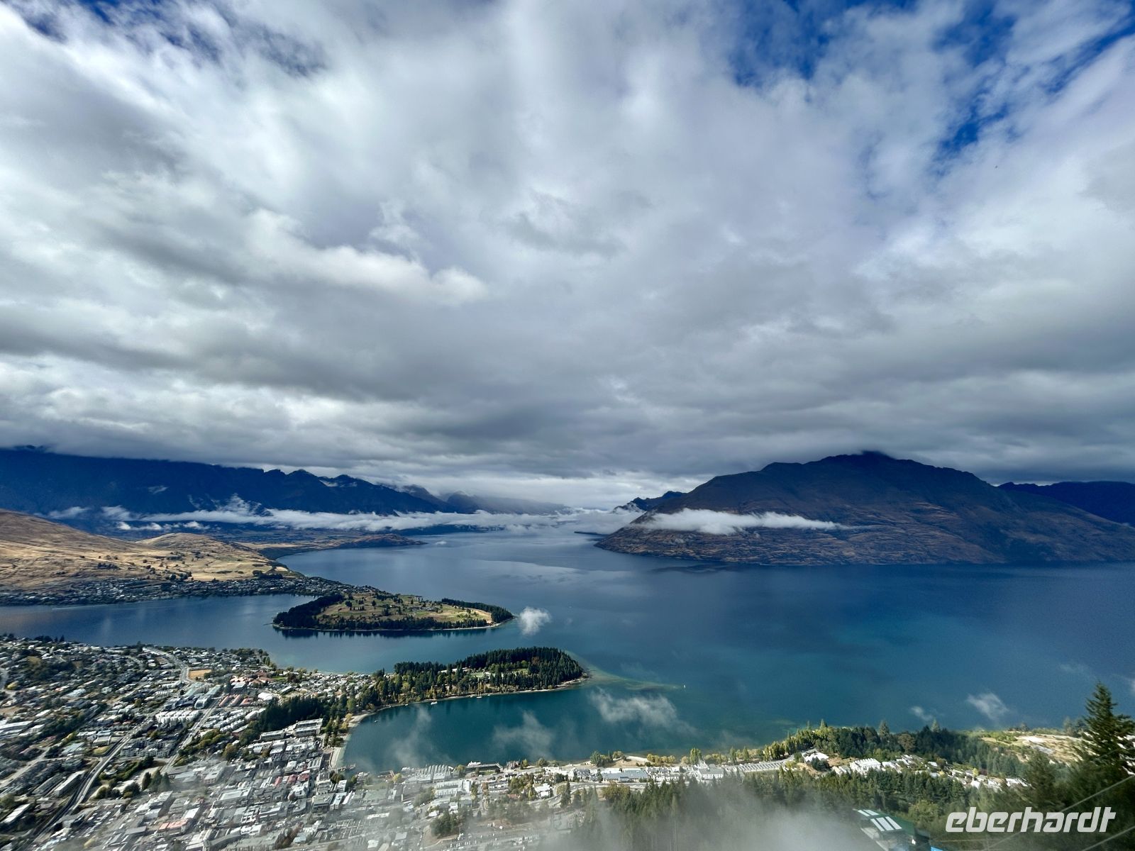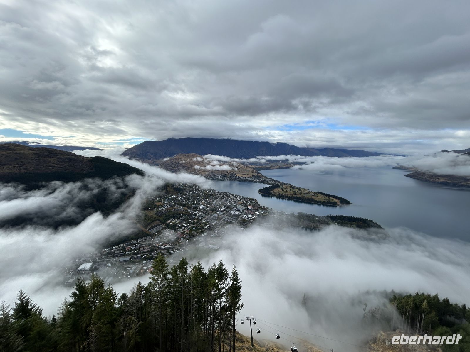 Queenstown begrüßt uns mit ein paar Wölkchen am Himmel aber milden Temperaturen. Ideal um die Stadt auf eigene Faust zu erkunden, denn heute ist Freizeit angesagt. Mit einem Teil der Gruppe fahren wir mit der Gondel hinauf zur Aussichtsplattform und genießen den einzigartigen Blick auf die Stadt. Im Lake Wakatipu spiegelt sich herrlich die Morgensonne und die Wolken ziehen mystisch ihre Kreise. Wieder unten angekommen geht jeder seiner Wege.