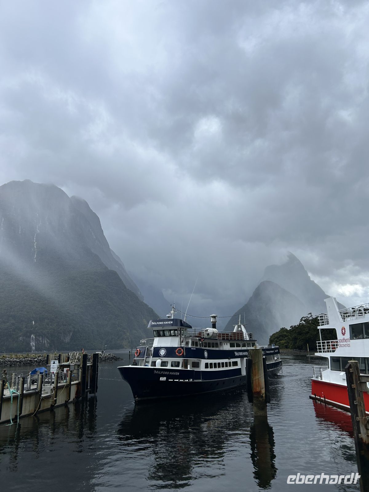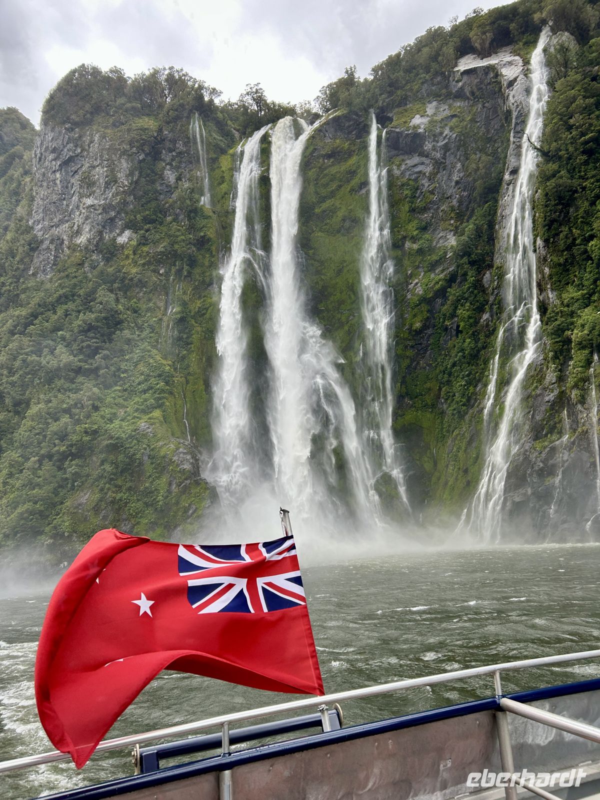 Am Nachmittag besteigen wir die Mildord Haven und begeben uns auf eine 2- stündige Erkundungstour zu Wasser. In unserem Fall kann man sagen, dass wir Glück hatten das es Vormittag so stark geregnet hat, denn nun sind die zahlreichen Wasserfälle gut gefüllt und strömen kraftvoll in den Milford Sound. Man weiß gar nicht so Recht, wo man zu erst hinschauen soll die Landschaft ist einfach einmalig. Den Abend verbringt jeder wie er gerne mag. Einige aus der Gruppe haben am späten Abend noch ein kleines Highlight vor sich. Sie fahren nämlich in eine Höhle mit einem unterirdischen Wasserfall wo auch gleichzeitig ganz viele Glühwürmchen zu sehen sind.