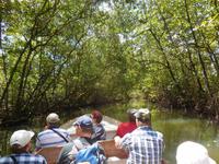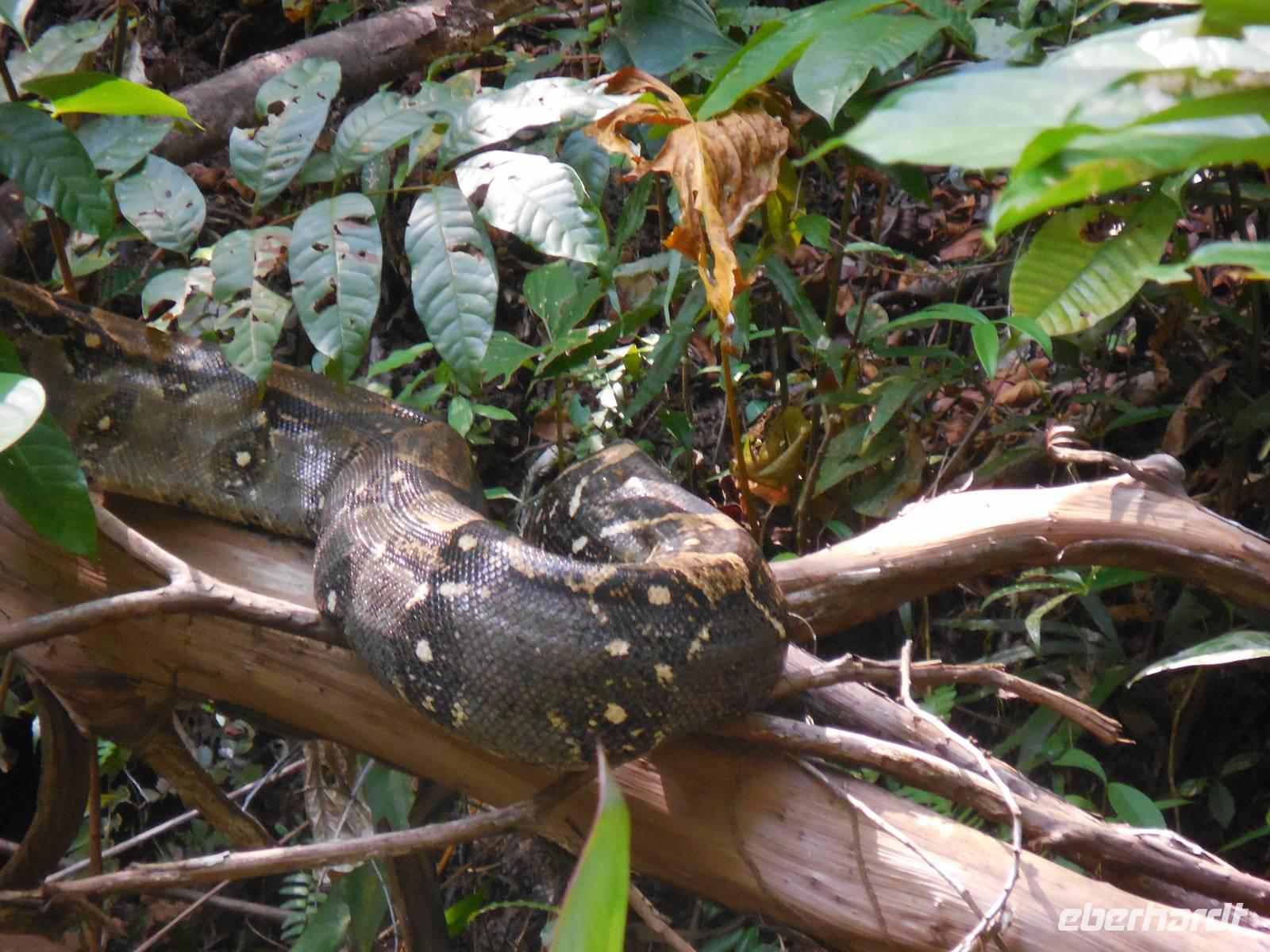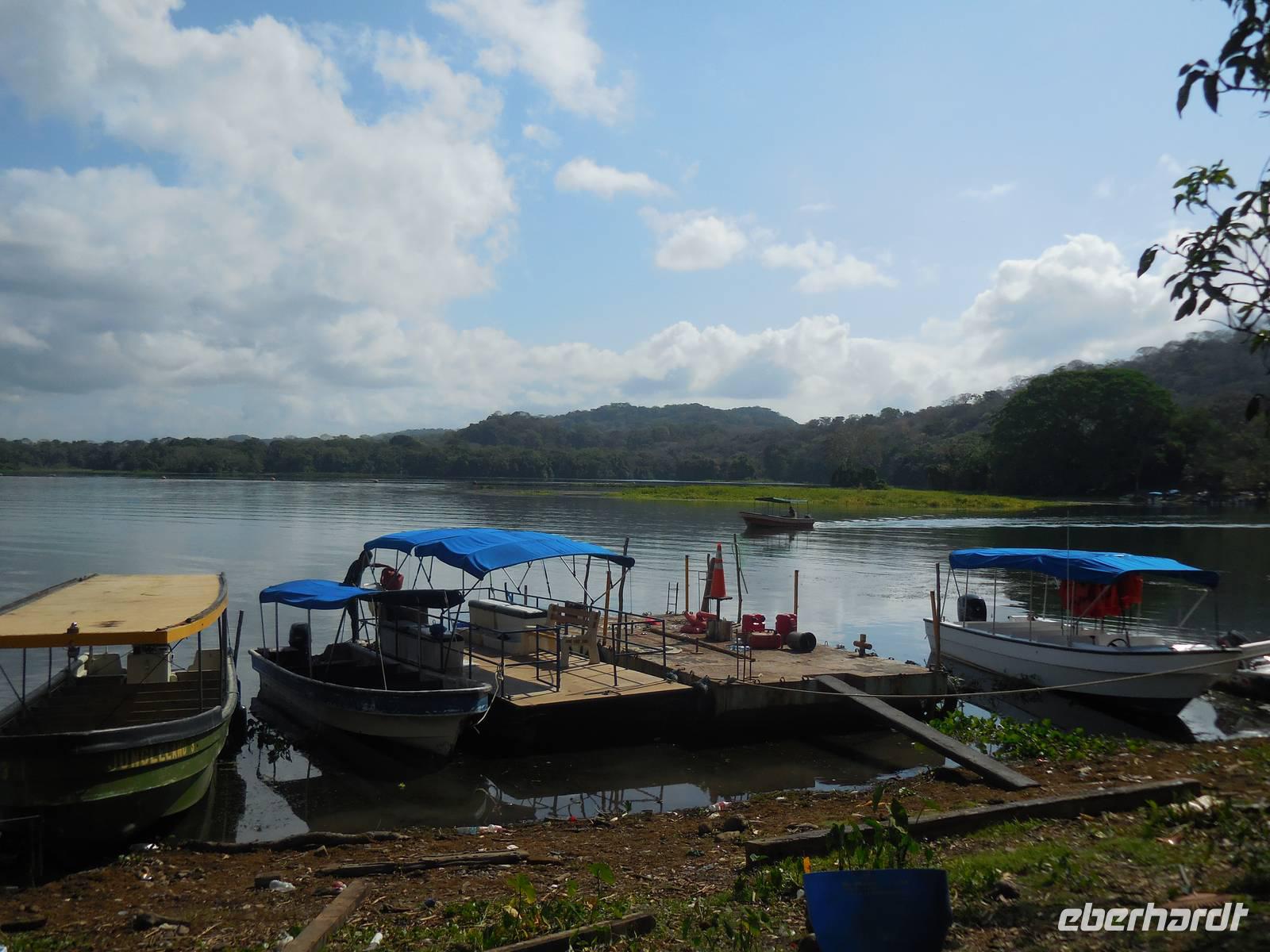 Unterwegs sahen wir verschiedene Bäume, die es bei uns nicht gibt. So zum Beispiel einen Dickbaum (barrigon Wood?) auf dem sogar Brüllaffen zu sehen waren. In Gamboa stiegen wir in ein Schnellboot um, welches uns in die Gefilde des Kanalwassers brachte. Unter einer Brücke hindurch und wir waren mitten auf dem Panama-Kanal. Kurze Zeit später bogen wir aber wieder rechts ab und wir befanden uns mitten in der ursprünglichen Natur und hörten eine Vielzahl an Tieren wie zum Beispiel Brüllaffen und Kapuzineraffen. Aber wir sahen auch Schneereiher und ein Krokodil. All diese Tiere leben hier unmittelbar am Kanal. Das Boot brachte uns anschließend in den Soberaja Nationalpark, wo wir zur Mittagszeit an einem Hausboot ankamen. Hier speisten wir zu Mittag und haben die einzigartige Natur in aller Ruhe genießen können. Zwei unserer Gruppenmitglieder versuchten sich in der Zeit an einer Kanufahrt - weit kamen sie jedoch nicht :). Wieder in Gamboa angekommen fuhren wir mit dem Bus an den Pedro Miguel Schleusen vorbei und am Mirafloressee. Kurz nach 16 Uhr waren wir zurück im Hotel.