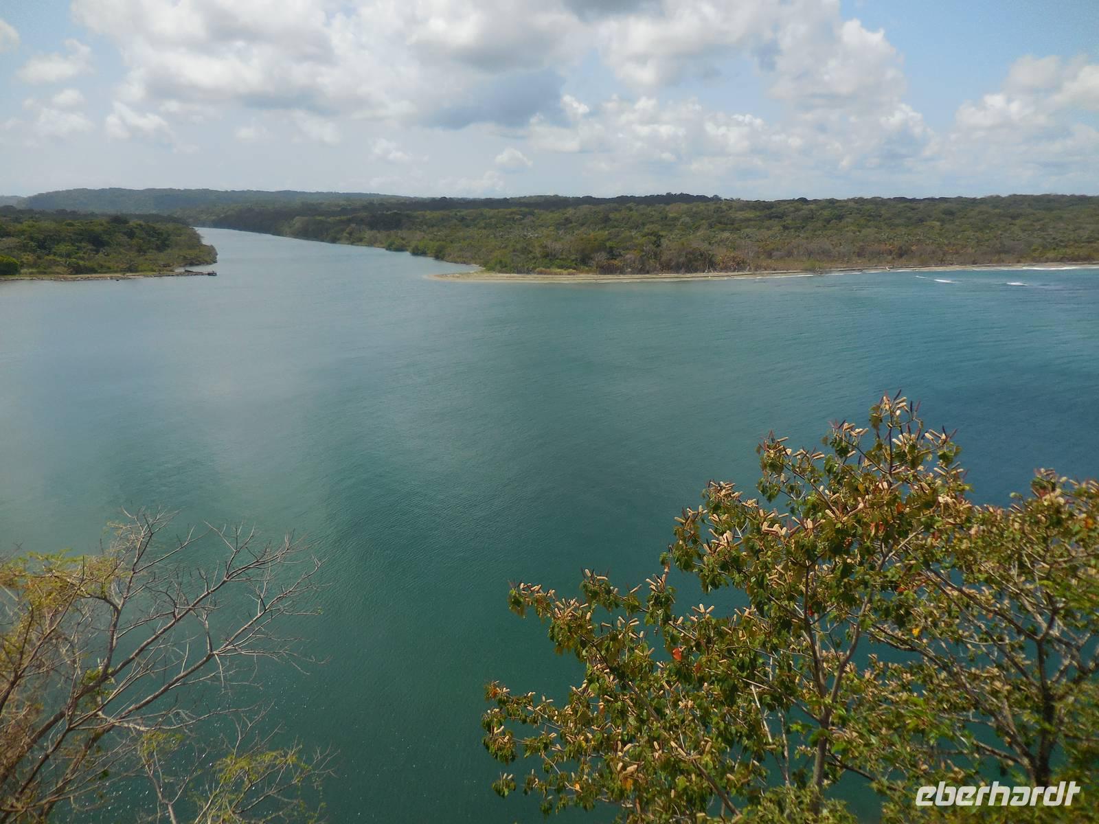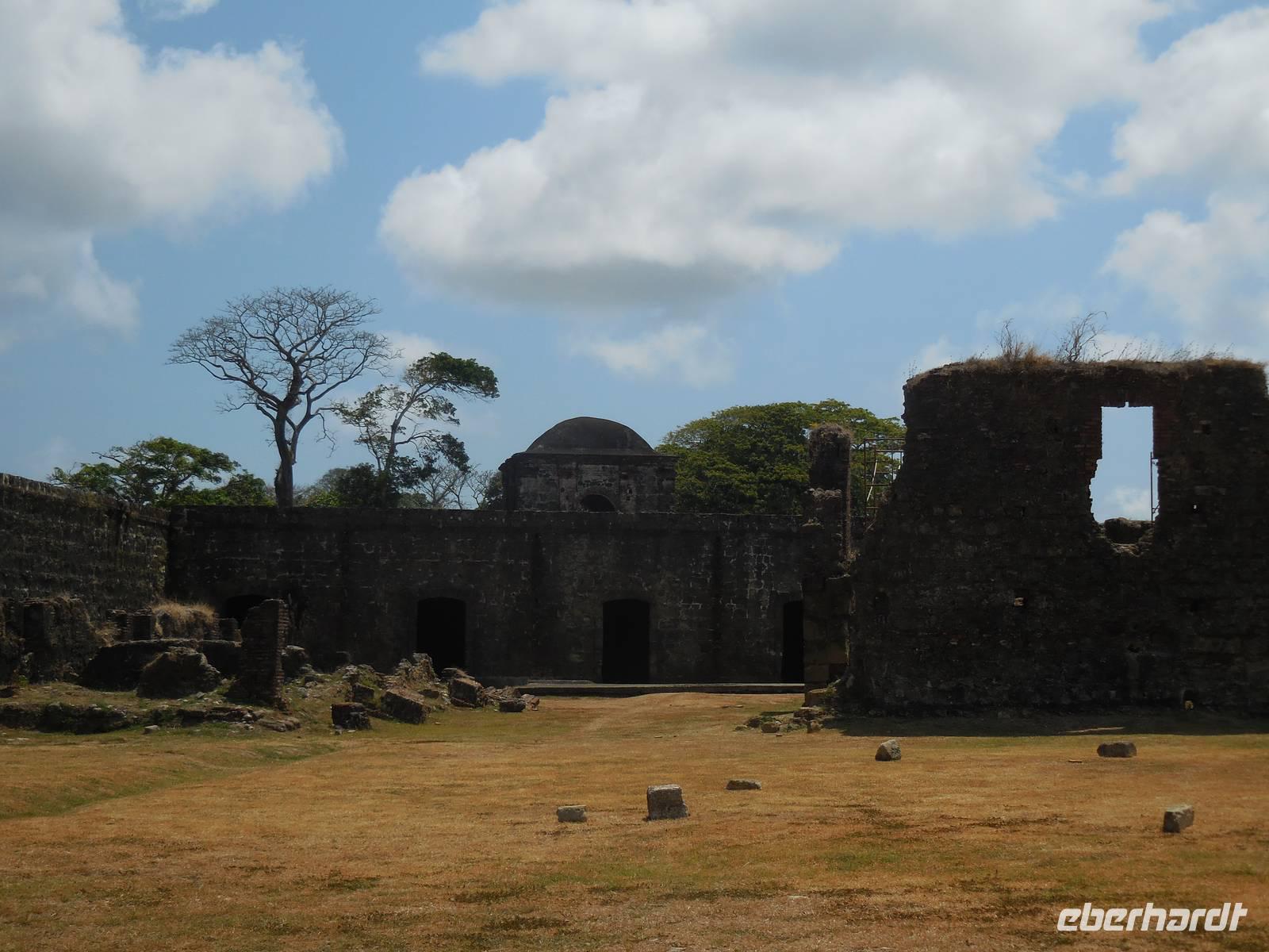Heute hieß es mal wieder früh aufstehen, denn wir mussten pünktlich am Bahnhof sein. 7:15 Uhr fuhr unser Panoramazug ab. Wir wurden freundlich begrüßt und sobald es losging gab es frischen Kaffee für jeden serviert. Die Zugfahrt von Panama-City bis Colon dauerte ca. 70 Minuten (ohne Pause) und das erste was wir von Colon sahen war das größte Gefängnis des Landes. Unser Bus war bereits schon da und erwartete uns, um uns weiter zum Fort Sherman (heute Marinestützpunkt der Amerikaner) zu bringen. Der Weg dahin war ziemlich grün und bewaldet, so dass wir auch hier Affen und sogar eine große Boa Constrictor sehen und beobachten konnten. An der Festung angekommen, sahen wir riesige Bäume mit langen Nestern wo die Oropendulas nisten. Mit Felipe machten wir einen Rundgang durch das wunderschön gelegene Areal am Chagre Fluss. Bis ins 17. Jahrhundert war dieses Fort in Betrieb, ehe es vom Landweg aus überwältigt wurde. Unser heutiges Mittagessen nahmen wir in der Shelter Marina ein, wo ein schöner Yachthafen liegt. Anschließend fuhren wir zurück in die Landeshauptstadt.