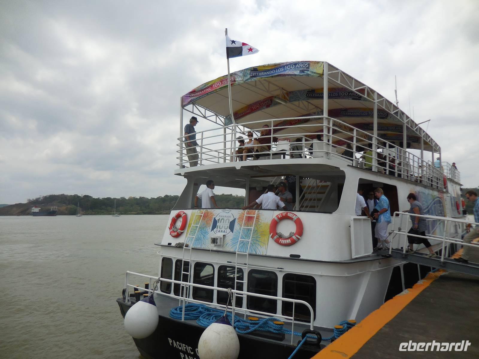 Der Bus brachte uns heute Morgen zunächst zur Flamingo-Insel und wir stiegen hier in einen anderen Bus um, der uns nach Gamboa brachte. Die Ausflugsschiffe lagen heut ausnahmsweise auf der anderen Seite des Kanals. Wir stiegen also nach etlichen Wartemomenten auf das Schiff "Pacific Queen" um und los ging die Passage gegen 11:45 Uhr durch den Panamakanal. Auf dem Schiff gab es kosten- und alkoholfreie Getränke und ein Mittagessen für jeden. Die Fahrt war sehr hübsch und vom Wasser aus hat man wieder ganz andere Eindrücke vom Kanal als vom Land aus. 16:30 Uhr erreichten wir wieder die Stadt, wo wir von Bord gingen.