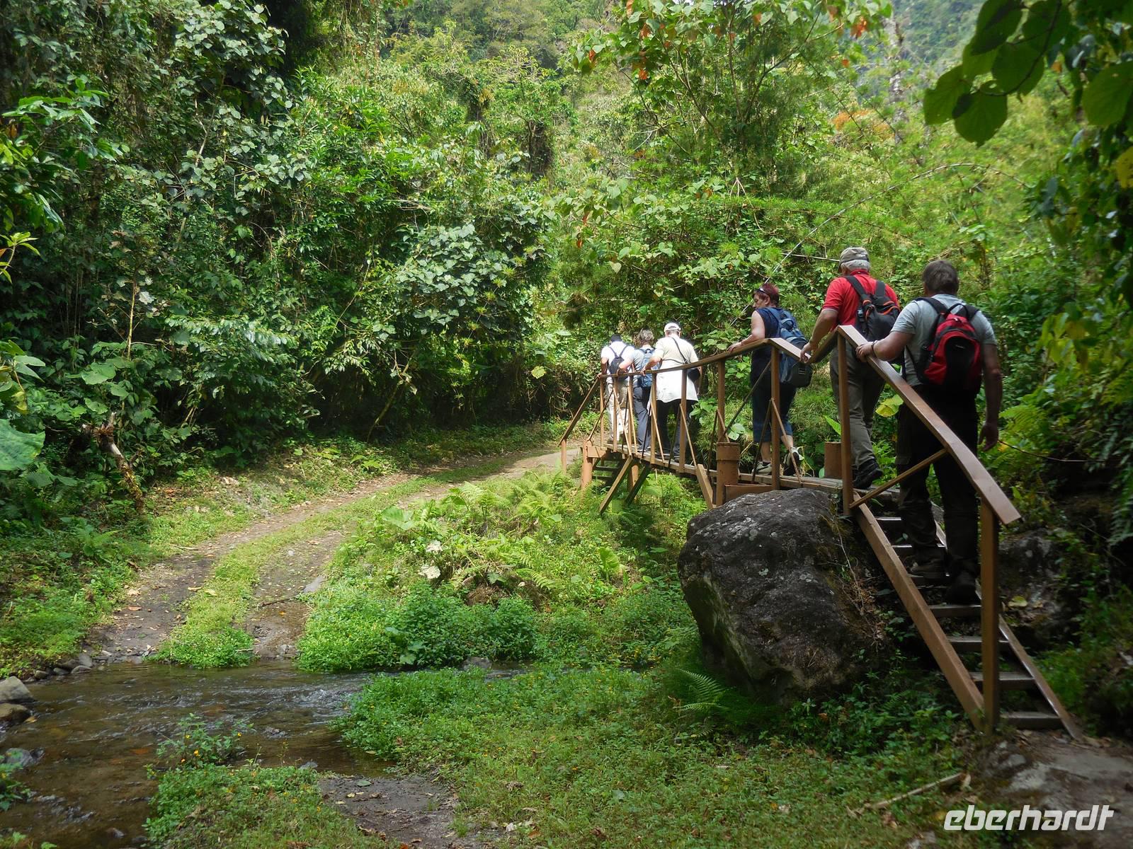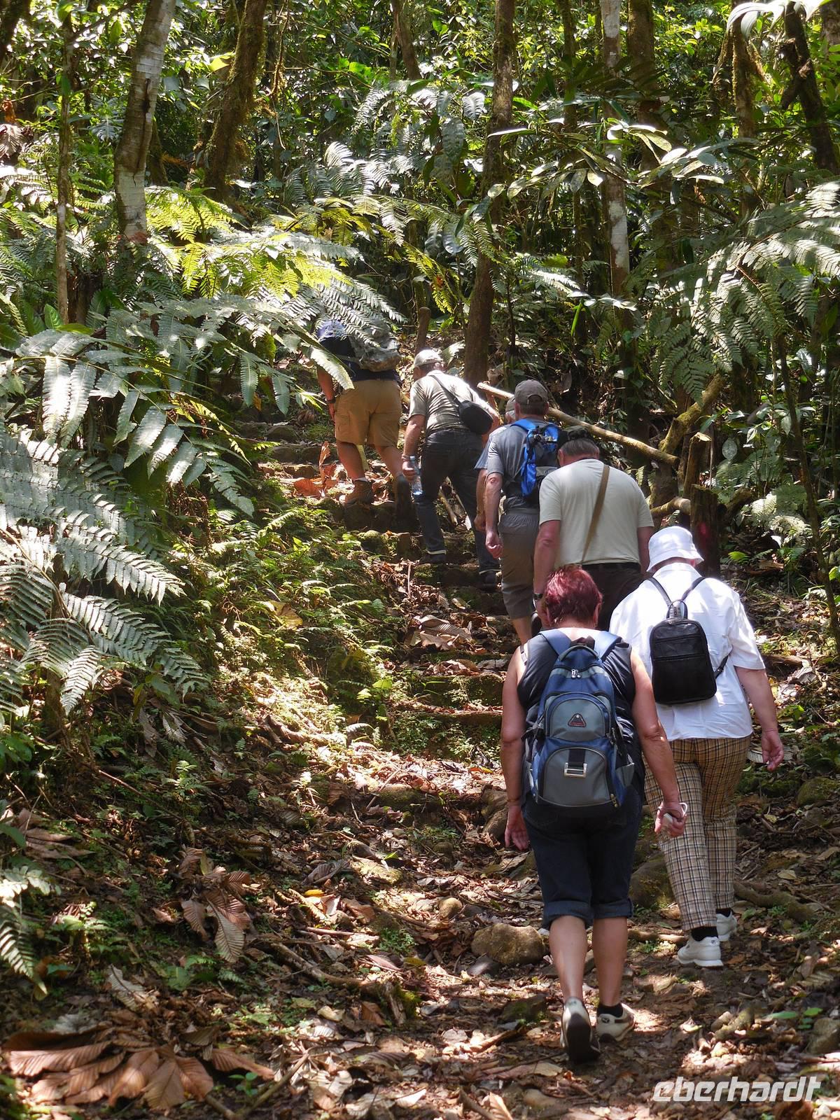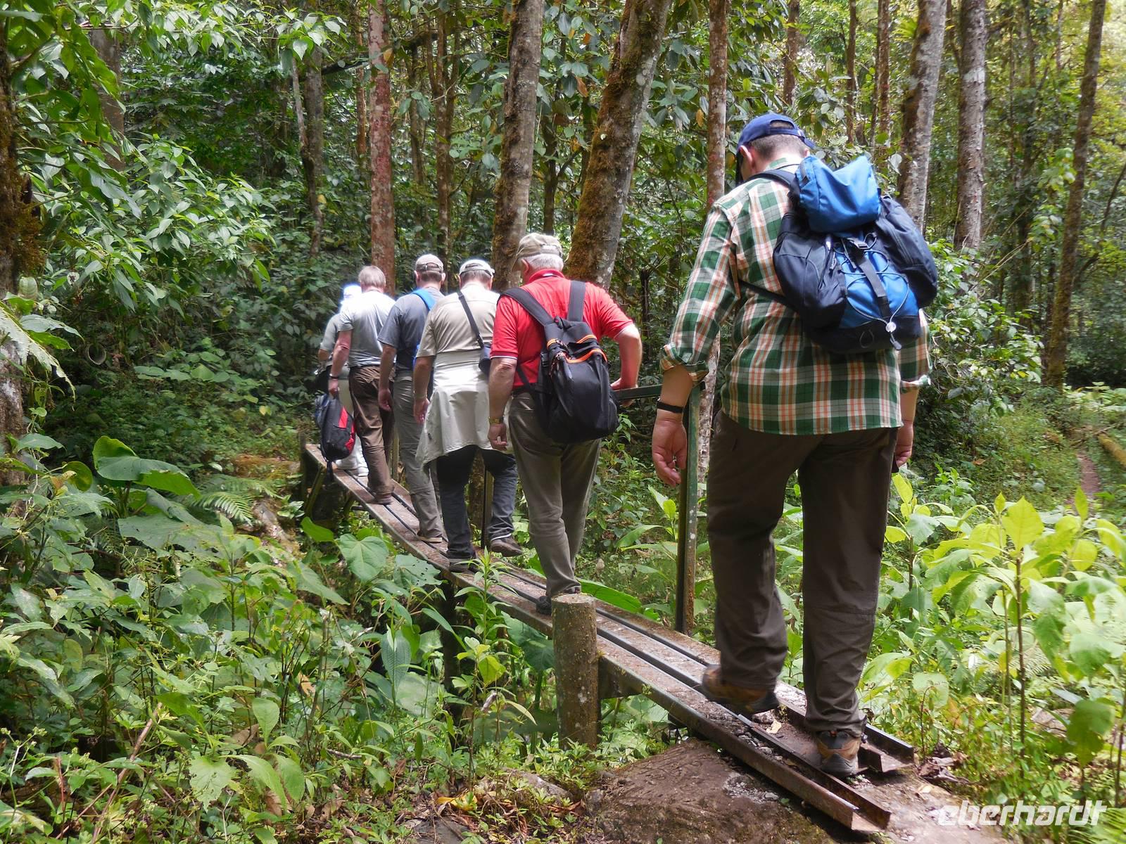 Kurz vor 9 Uhr morgens fuhren wir mit einem örtlichen Bus und Plinius, einem örtlichen Botaniker, zum Ausgangspunkt unserer heutigen Wanderung. Nach etwa 30 min. Fahrtzeit stiegen wir aus und befinden uns auf etwa 1.600 Meter Höhe. Der Weg führt uns etwas bergauf bis ca. 1.800 Meter zu einem Wasserfall. Unterwegs erklärt uns Plinius etliche Pflanzen und Tiere, die wir zu Gesicht bekommen. Wir waren etwa 3 Stunden unterwegs und haben sogar Quetzale gesehen - das sind tolle farbenfrohe Vögel. Im Anschluss brachte uns Plinius ins Ortszentrum von Boquete und nahmen unser Mittagessen in einem lokalen Restaurant ein. Nachdem wir uns satt gegessen haben, starteten wir einen Rundgang mit Gustavo durch den Ort und gehen zur Post, auf den Markt und zur Apotheke. Dann genossen wir eine Stunde Freizeit, wo einige den Besuch des aktuellen Orchideengartens in Angriff nahmen. Die Männer unserer Gruppe waren am Abend noch in der lokalen Brauerei und danach zum Abendessen.