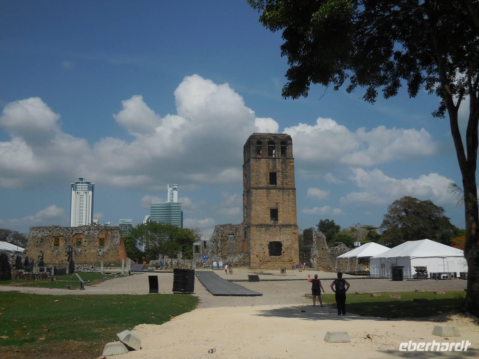 Der halbe Tag stand uns noch zur freien Verfügung, sodass wir uns alle gemeinsam ein paar Taxen riefen und in die Altstadt fuhren. Wir bummelten gemütlich durch die Gassen und erkundeten ein paar Souvenirläden. Mittags waren wir zurück und kehrten erneut beim Italiener ein, um noch ein paar Bier zu trinken und leckere Suppe vor dem Heimflug zu schlürfen. Toni holte uns dann ab und brachte uns noch in den alten Teil von Panama. Wir schauten uns kurz im Museum um und gingen dann die alte Hauptstraße entlang bis zum Kirchturm. Da es sehr heiß war, hatte kaum noch einer Lust auf die Besteigung und so fuhren wir zum Flughafen und verabschiedeten uns von Panama.