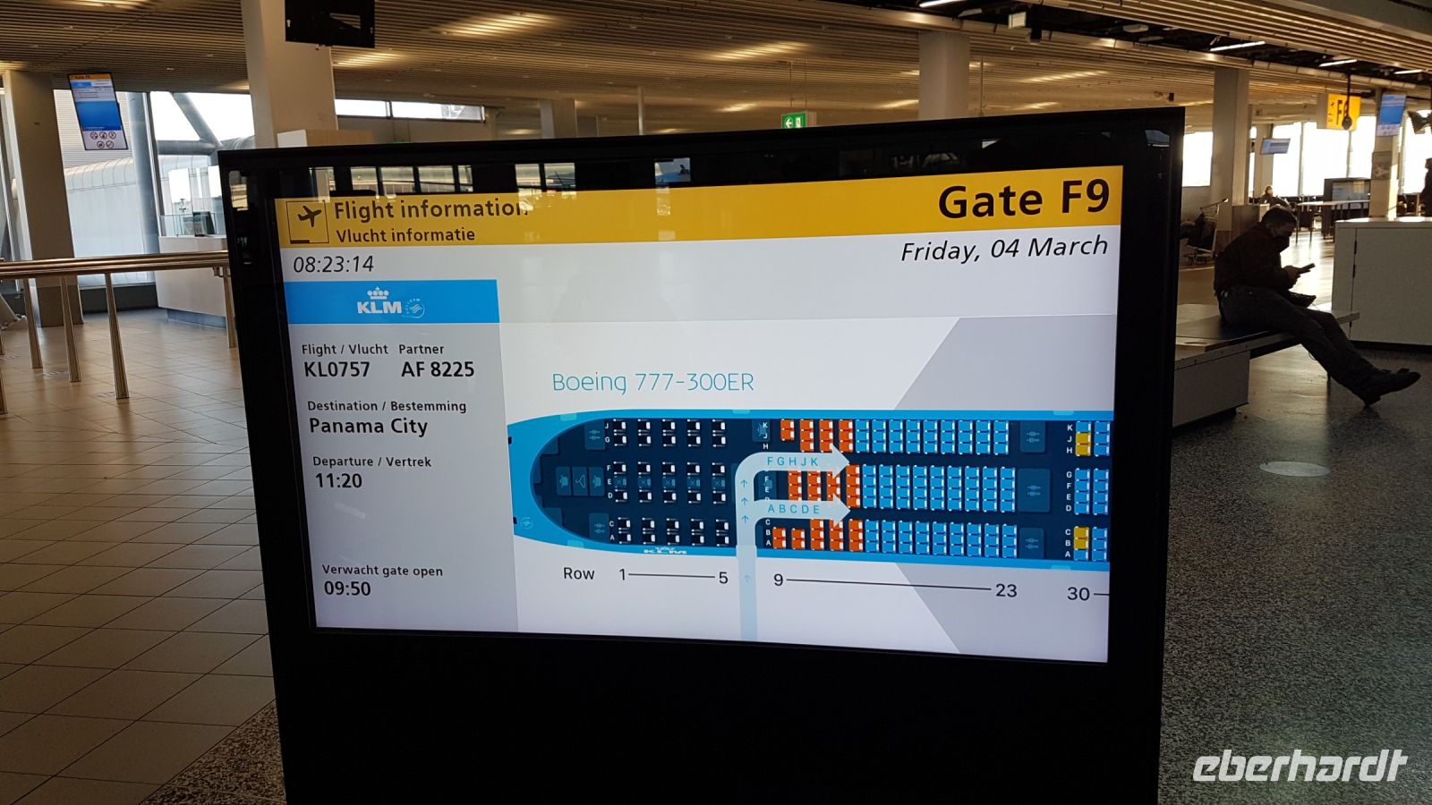 Nach kurzer Fahrt erreichten wir sehr pünktlich den Flughafen. Wir konnten einchecken und alle Formalitäten ohne Probleme erledigen, so dass wir bald in unserem Flugzeug der KLM saßen. Unser Flug von Panama Stadt nach Amsterdam startete pünktlich um 18:45 Uhr.