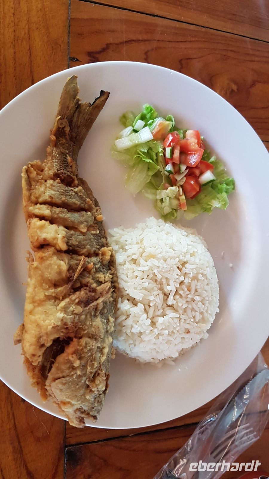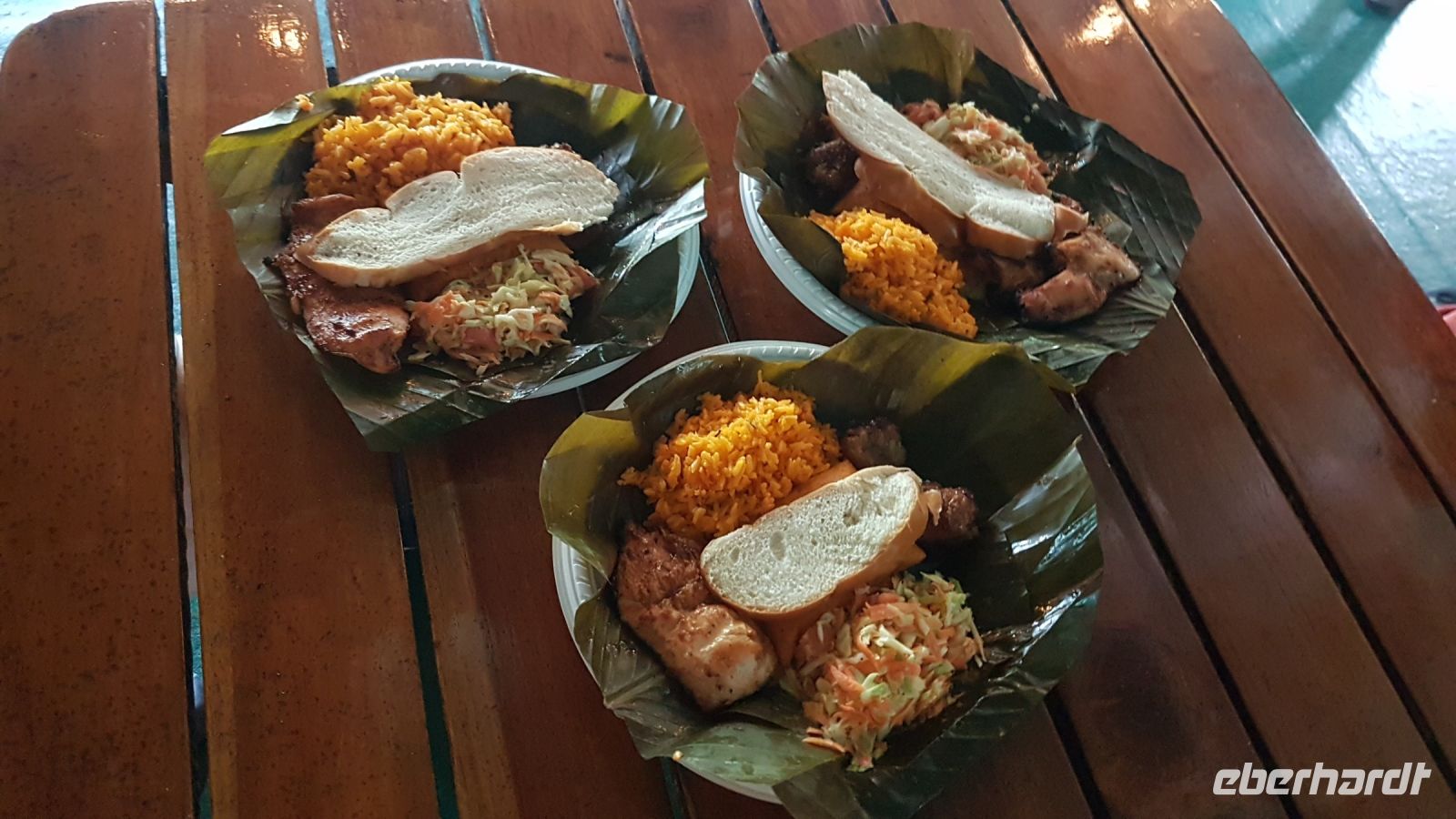 Neben der Wanderung gab es ausreichend Gelegenheit zu baden oder zu schnorcheln. Für einen Snack und gekühlte Getränke war ebenfalls gesorgt. Nach einigen erholsamen und erlebnisreichen Stunden fuhren wir mit den Booten zurück nach Pedasi, wo wir uns in einem kleinen Lokal ein landestypisches Mittagessen schmecken ließen. Danach fuhren wir in unser Hotel zurück, der verbliebene Nachmittag und der Abend standen uns zur freien Verfügung. Wir schwammen im Pool, wanderten am Strand entlang oder ruhten auf einer der Liegen aus. Am Abend trafen sich einige Gäste wieder zum gemeinsamen Essen, das hier auf der Terrasse des Hotels serviert wird.